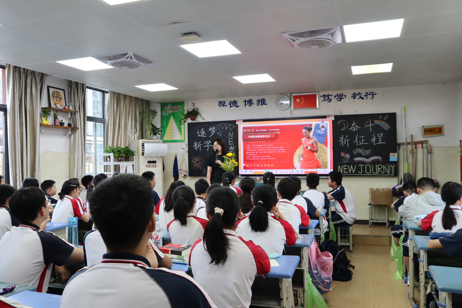 随后,班主任老师以开学第一课为引,借奥运健儿的拼搏精神,向学生传递了“发现光芒,靠近光芒,成为光芒,散发光芒”的励志理念,殷切的期望如同温暖的阳光,照亮了学生的心田。