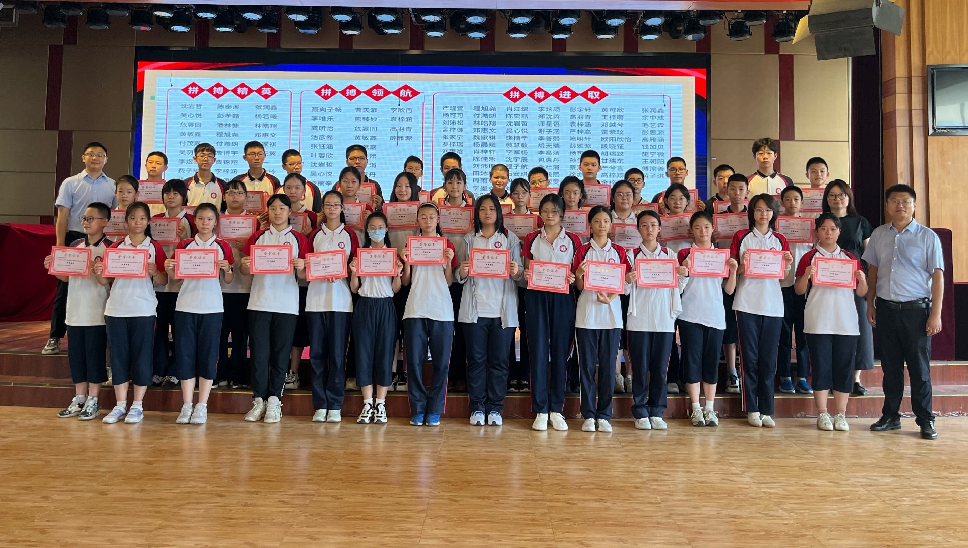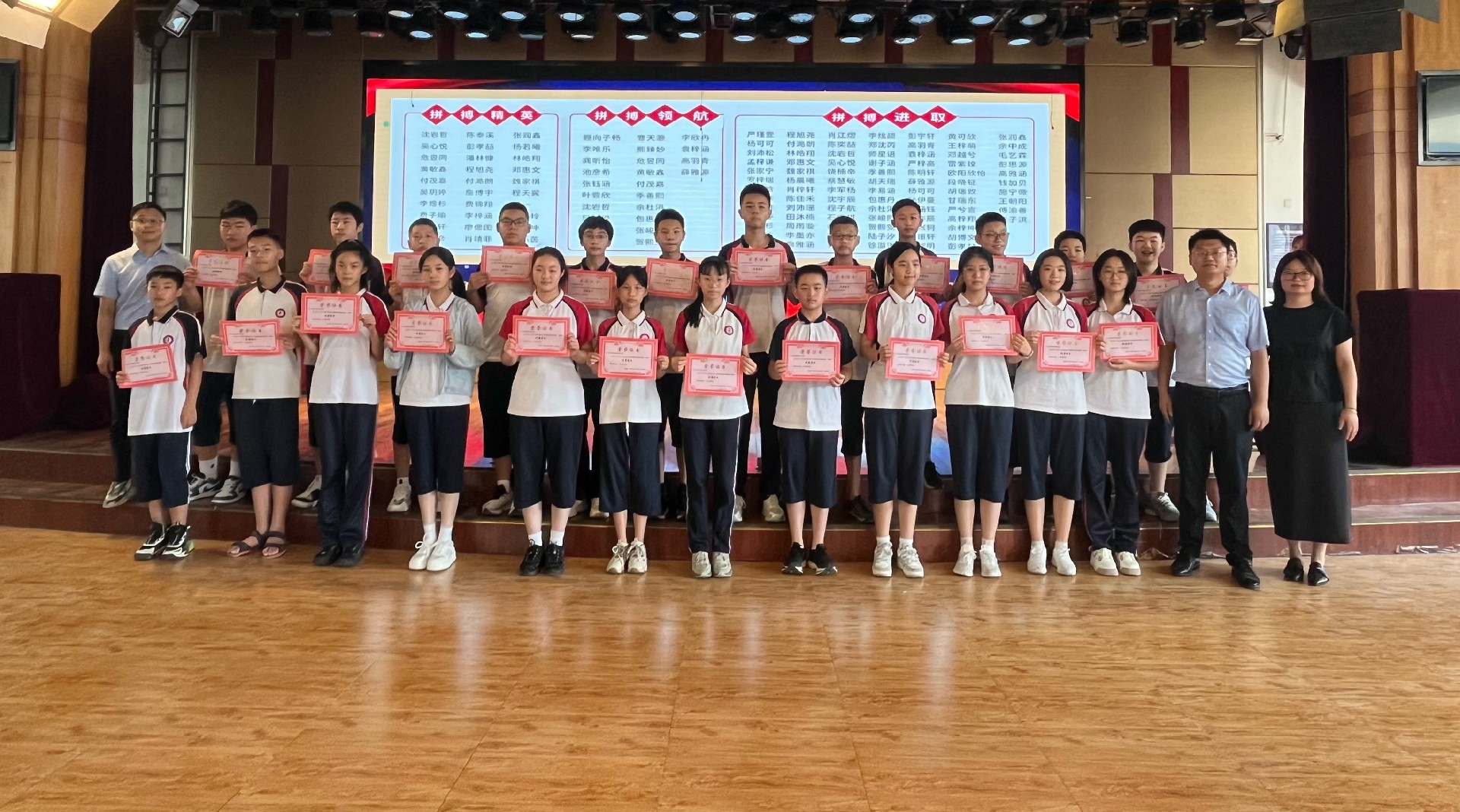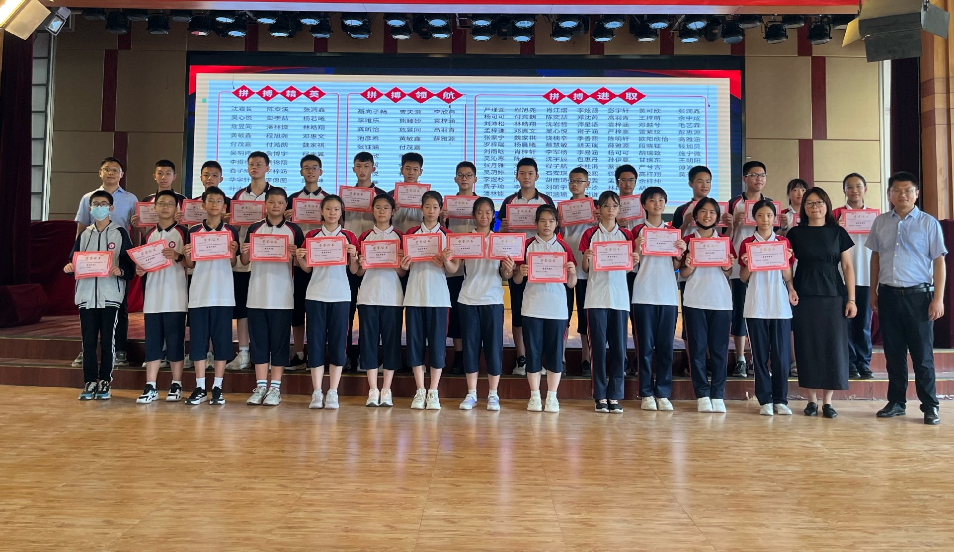 9时50分,厚德楼二楼演播厅内,八年级新学期表彰动员大会隆重举行。通过现场直播与班级同步观看的形式,全体师生共同见证了新学期的蓬勃朝气。彭主任以一段精心剪辑的视频作为“开学礼”,带领大家回顾了过去一年的点点滴滴,师生情、同窗谊在温馨的氛围中愈发浓厚,成长的足迹清晰可见。
