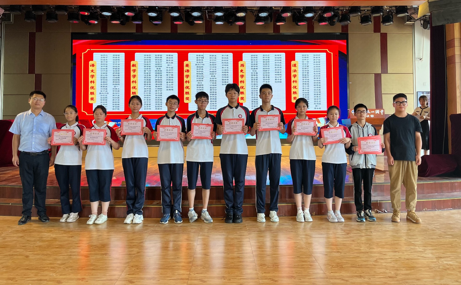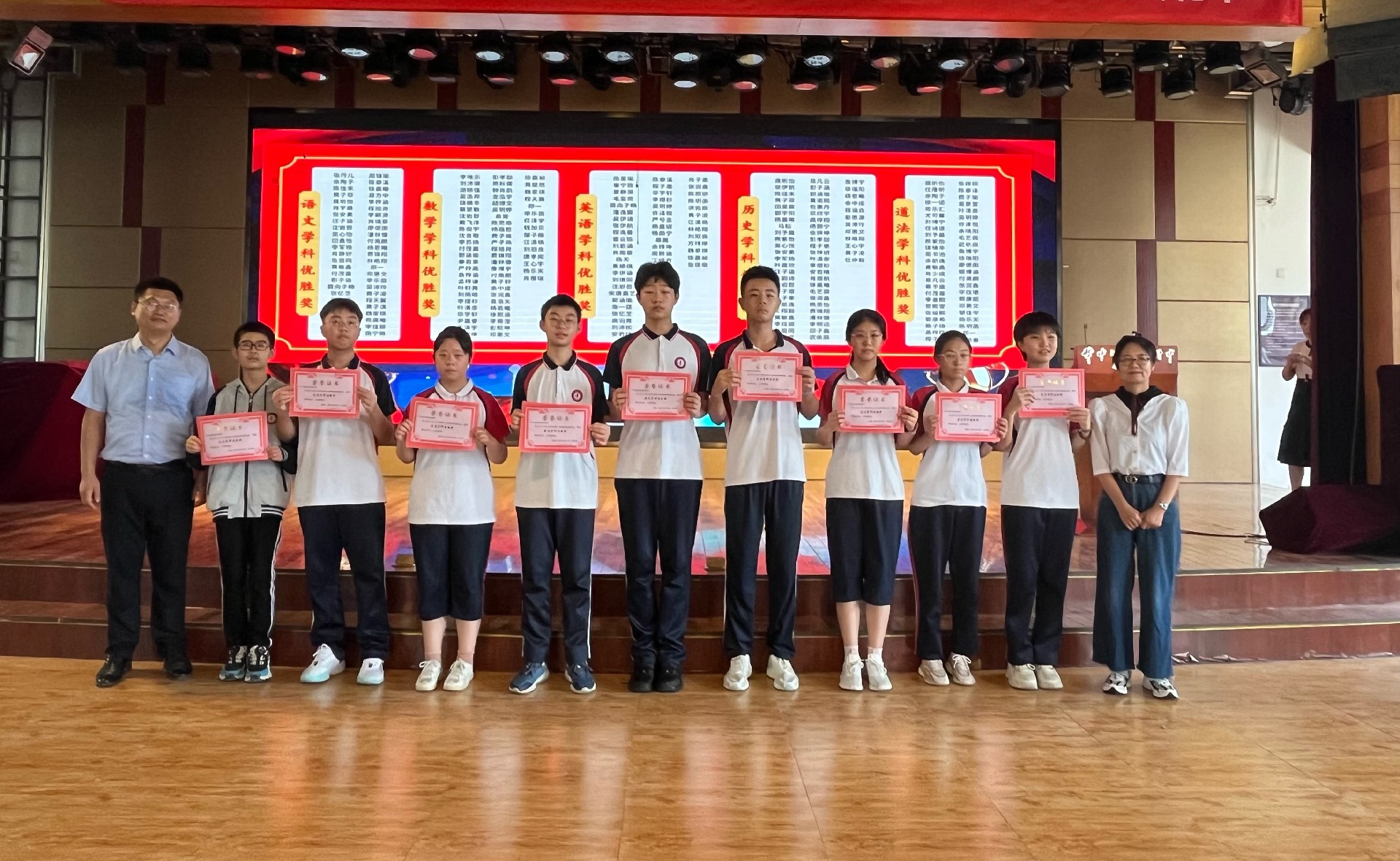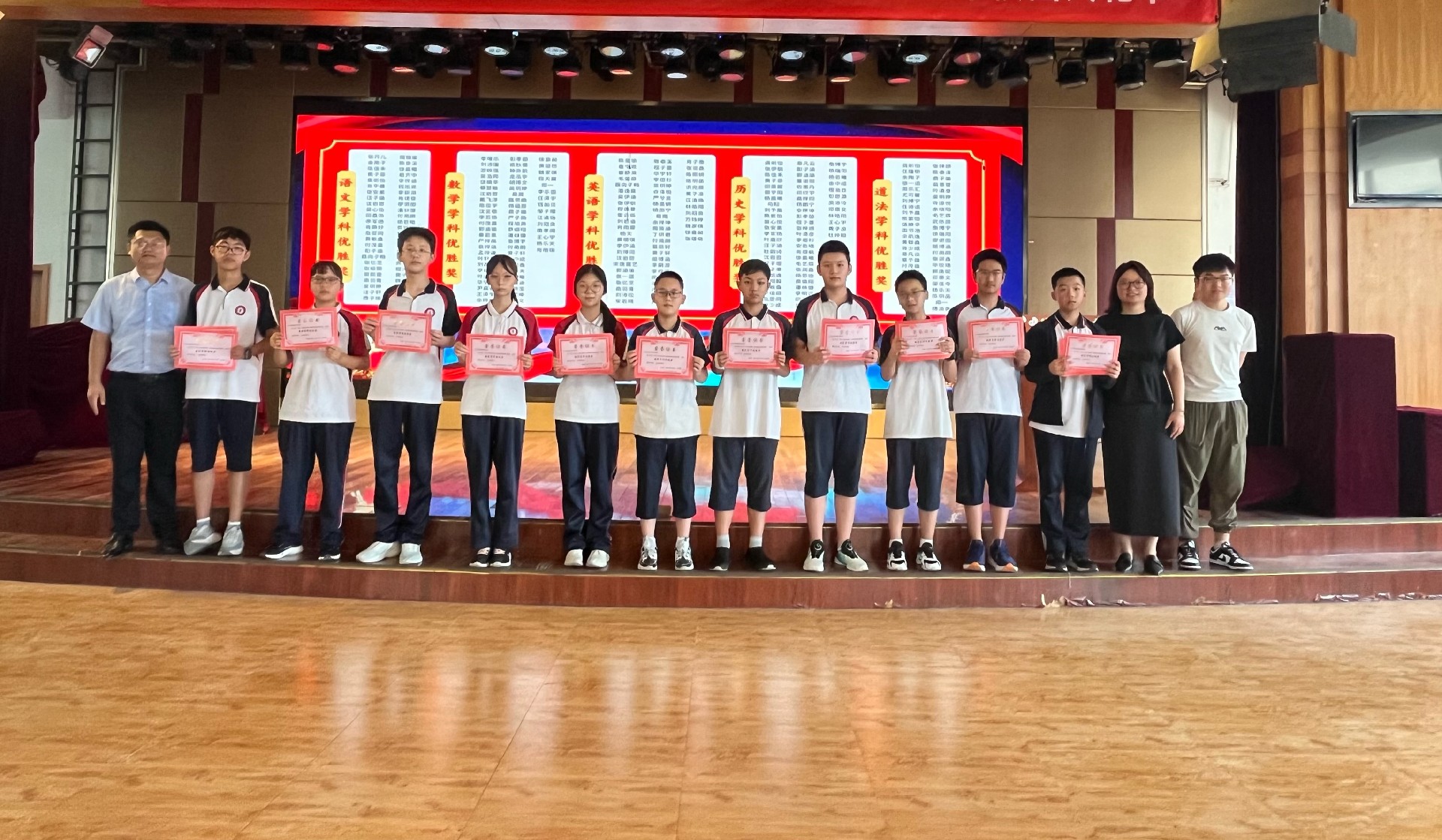 9时50分,厚德楼二楼演播厅内,八年级新学期表彰动员大会隆重举行。通过现场直播与班级同步观看的形式,全体师生共同见证了新学期的蓬勃朝气。彭主任以一段精心剪辑的视频作为“开学礼”,带领大家回顾了过去一年的点点滴滴,师生情、同窗谊在温馨的氛围中愈发浓厚,成长的足迹清晰可见。