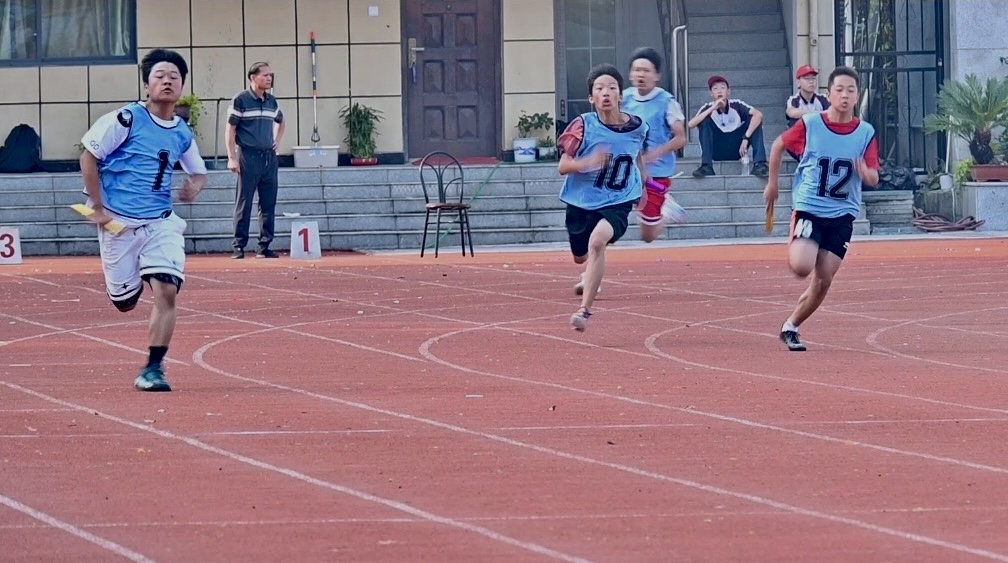 男子4×100米接力赛中,五个班级同样以惊人的速度刷新了记录,他们如同五匹奔腾的骏马,在赛道上驰骋,用速度书写着青春的辉煌。