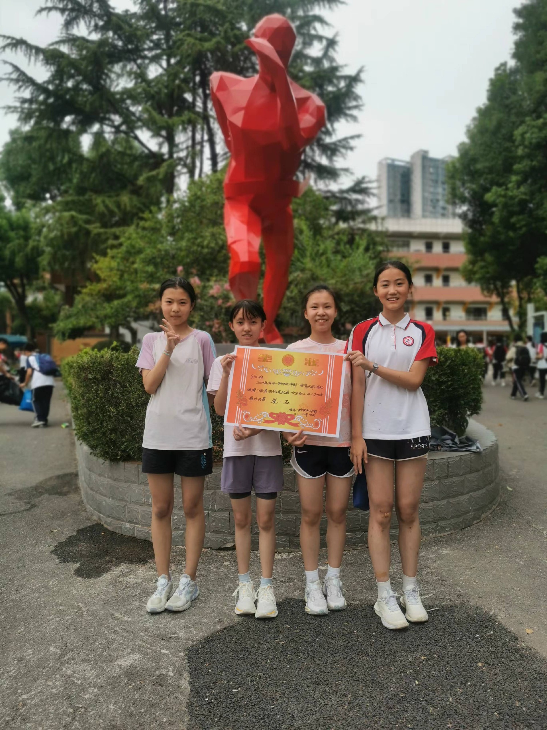 女子赛场上,同样星光熠熠。女子4×300米接力赛中,814班的姑娘们以坚韧不拔的毅力,打破了这一项目的校运会记录,她们如同四朵绽放的玫瑰,用汗水和泪水浇灌着胜利的果实。