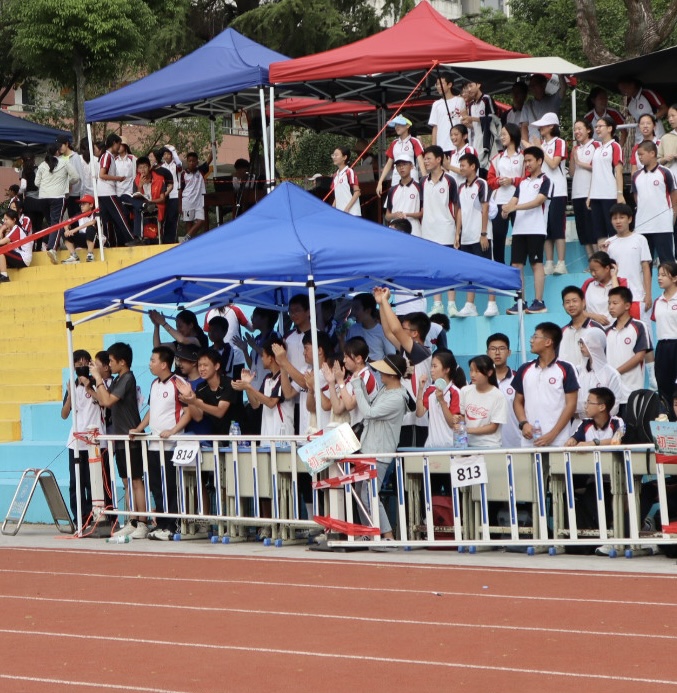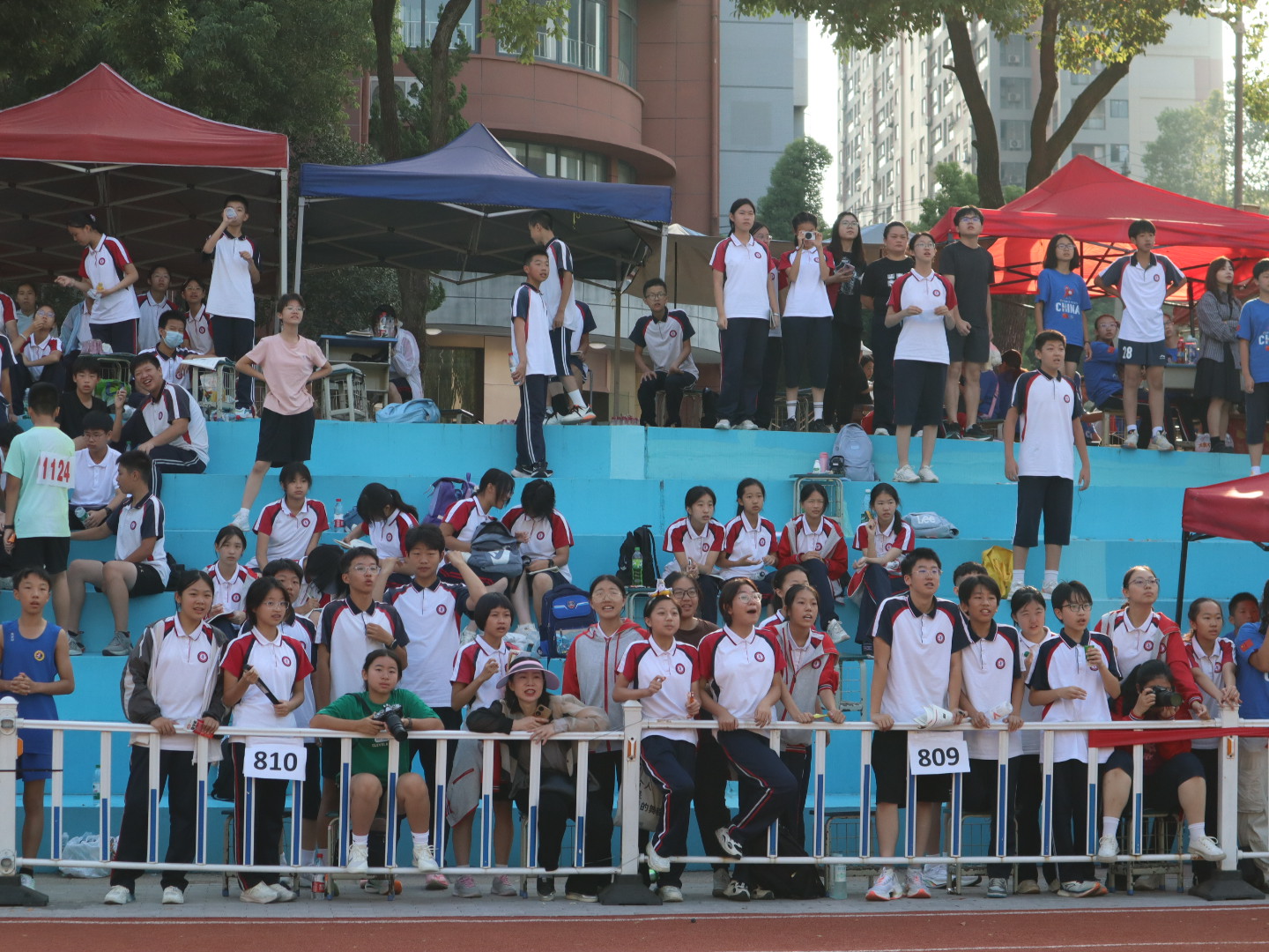 看台上的同学们同样热情高涨,他们挥舞着旗帜,呐喊着口号,为赛场上的选手们加油助威。这份支持与鼓励,如同温暖的阳光般照耀着选手们的心灵,让他们感受到了集体的温暖与力量。