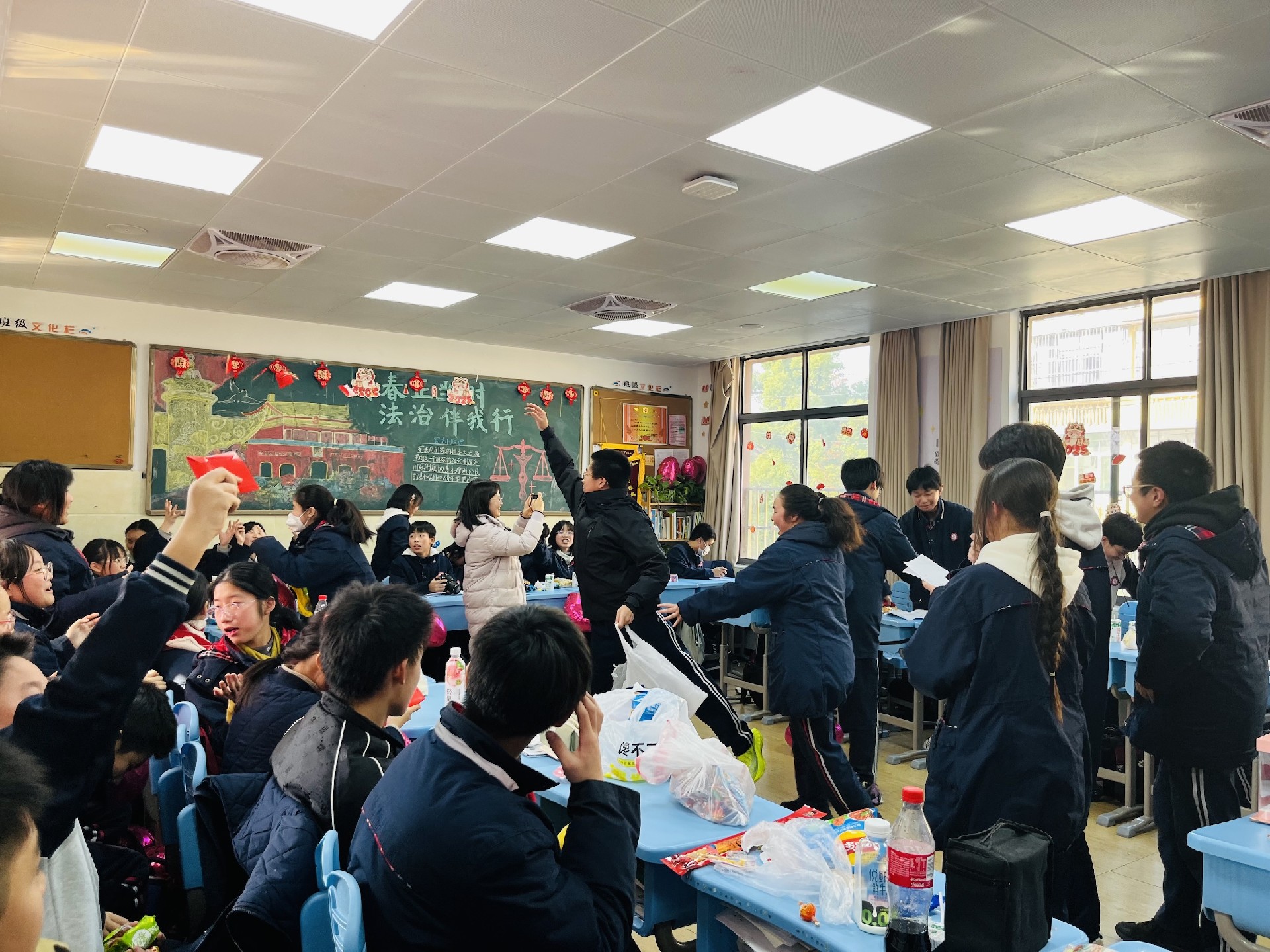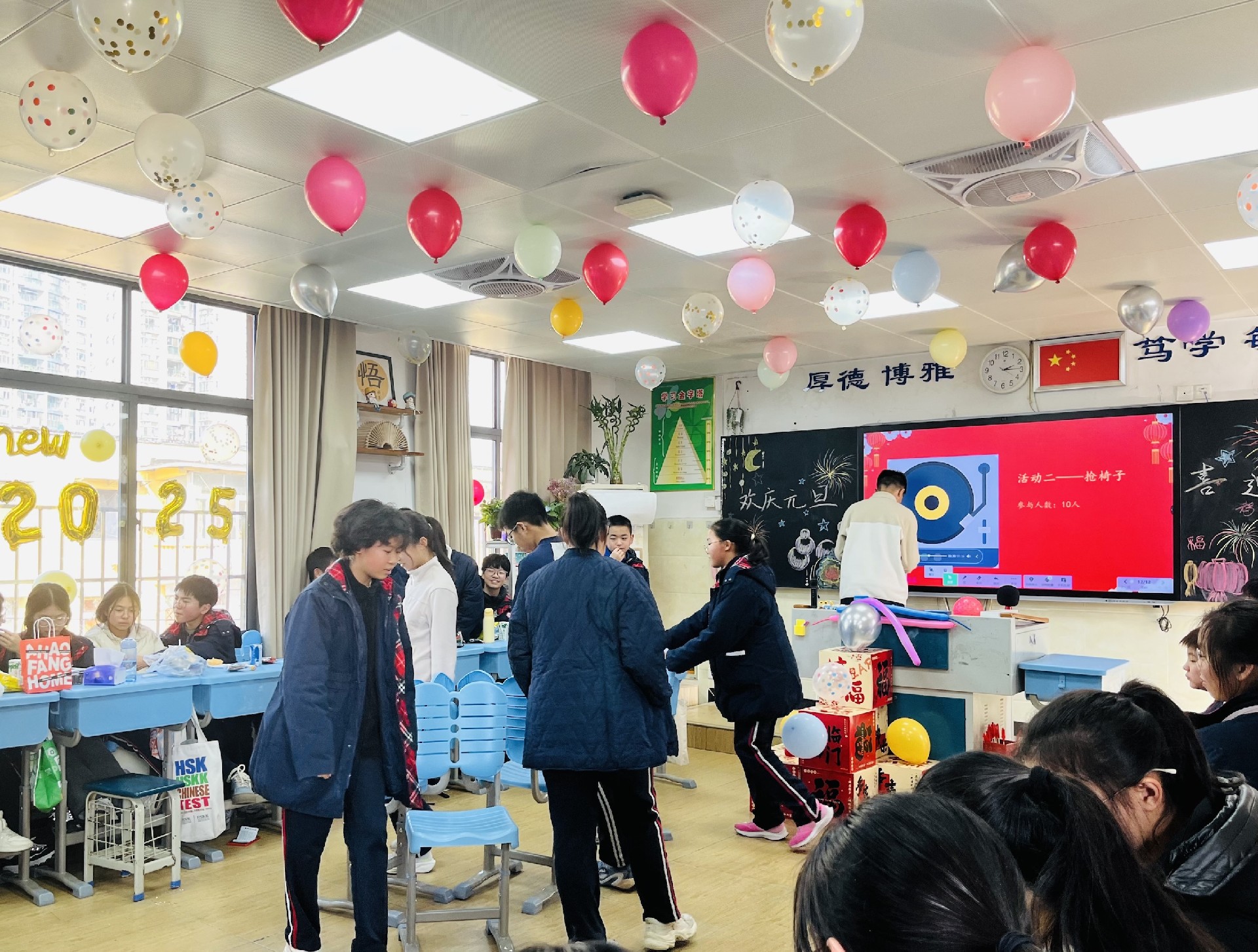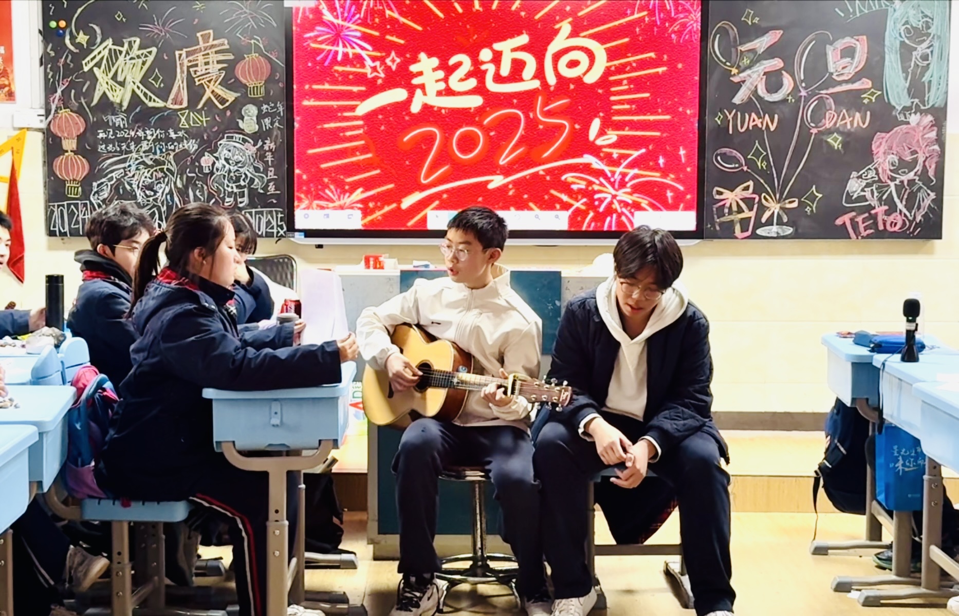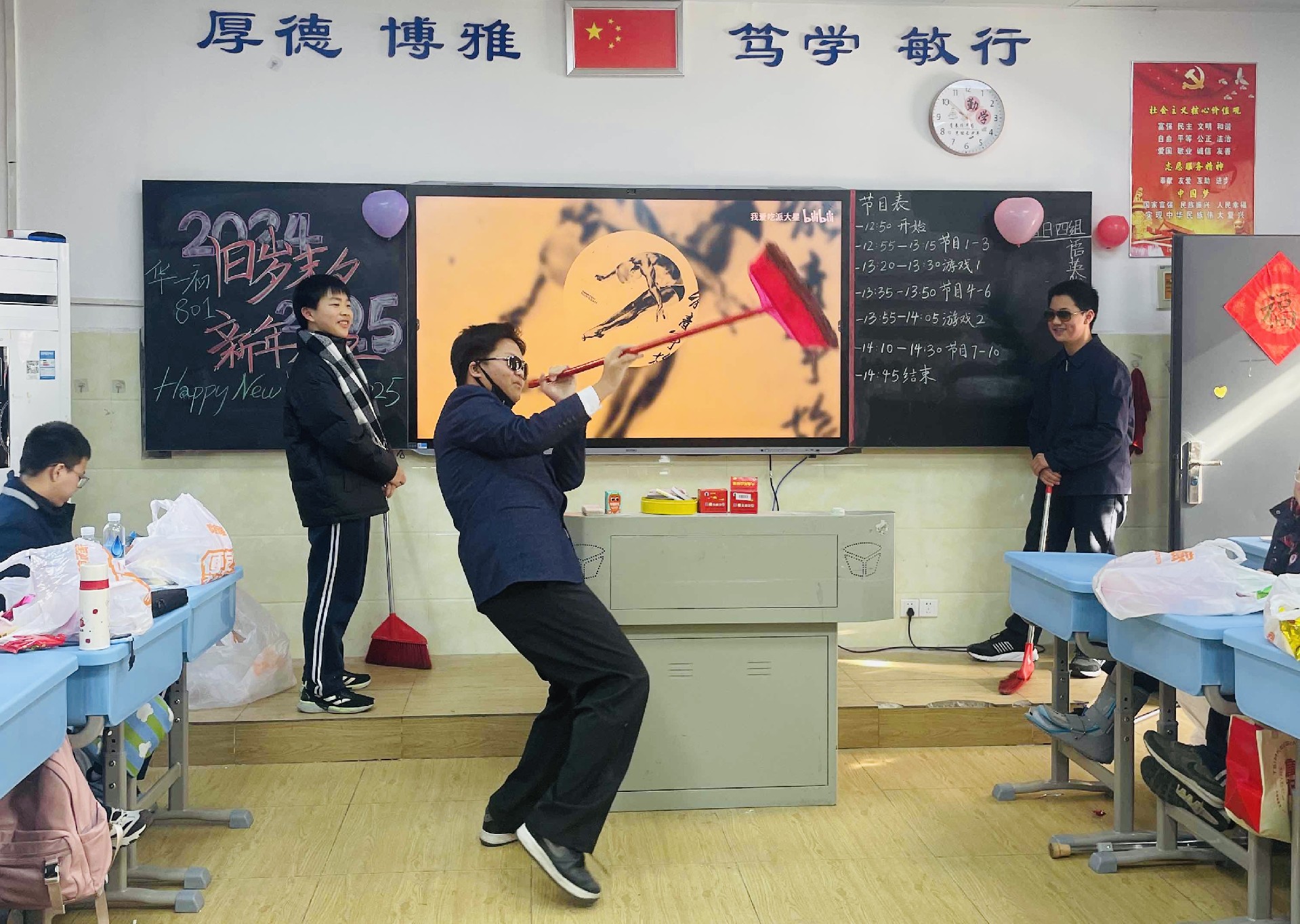 12月31日下午,随着阳光温柔地洒满校园,八年级的各个班级纷纷拉开元旦联欢活动的序幕。教室内外,彩带飘扬,气球轻舞,每一处细节都洋溢着节日的喜悦与温馨。同学们精心准备的才艺表演轮番上阵,从动感的舞蹈到悠扬的琴声,从深情的歌声到幽默的小品,每一个节目都凝聚着同学们的智慧与汗水,展现着青春的风采与活力。
