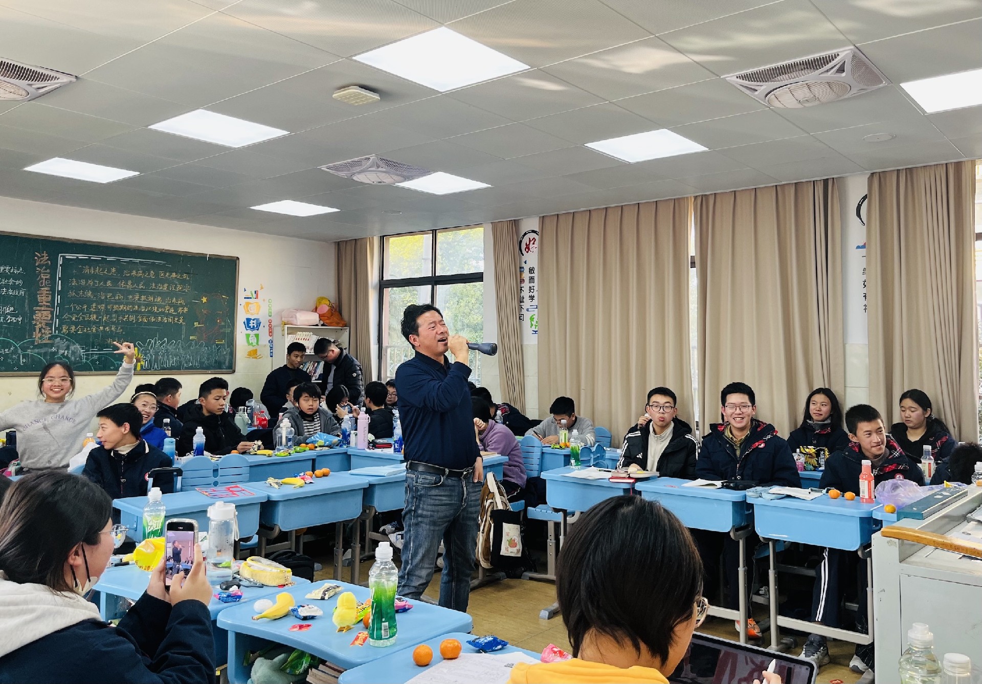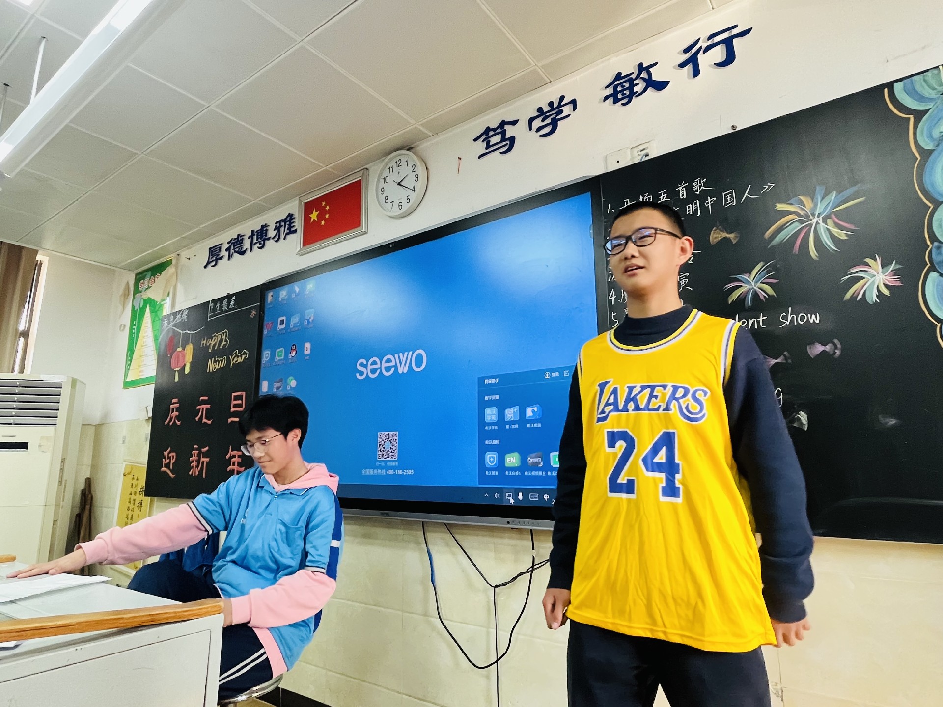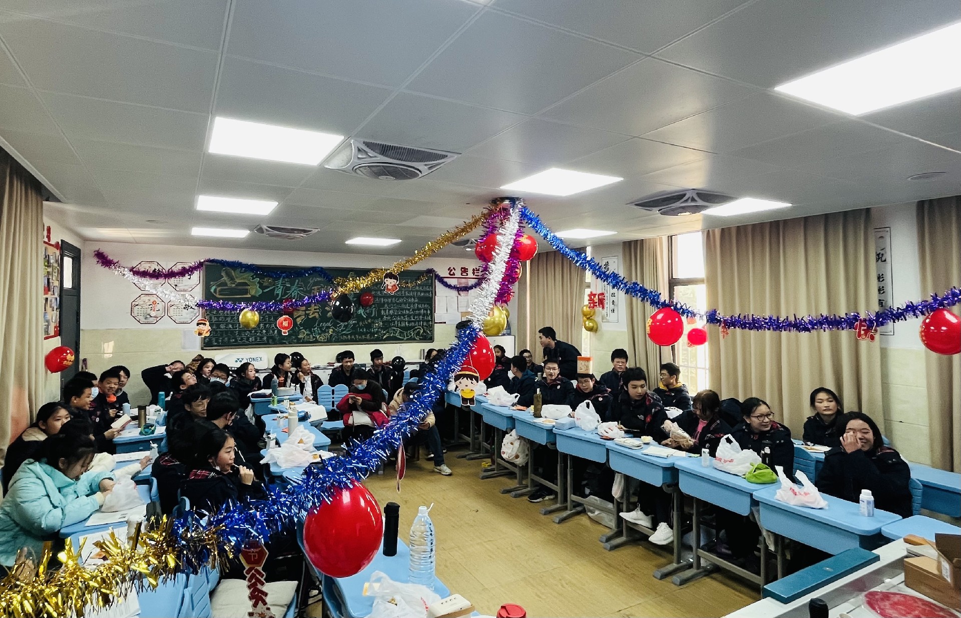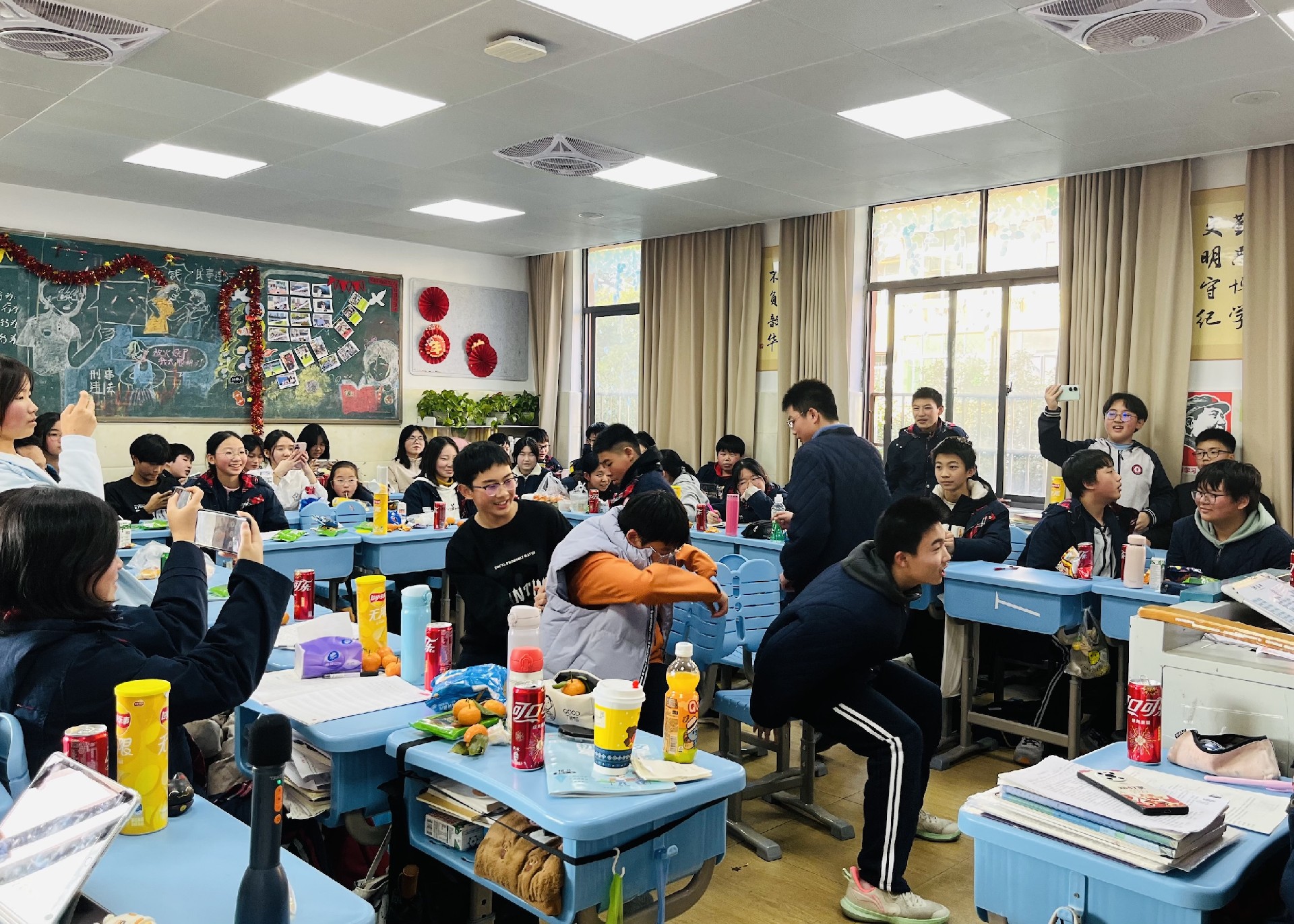 12月31日下午,随着阳光温柔地洒满校园,八年级的各个班级纷纷拉开元旦联欢活动的序幕。教室内外,彩带飘扬,气球轻舞,每一处细节都洋溢着节日的喜悦与温馨。同学们精心准备的才艺表演轮番上阵,从动感的舞蹈到悠扬的琴声,从深情的歌声到幽默的小品,每一个节目都凝聚着同学们的智慧与汗水,展现着青春的风采与活力。