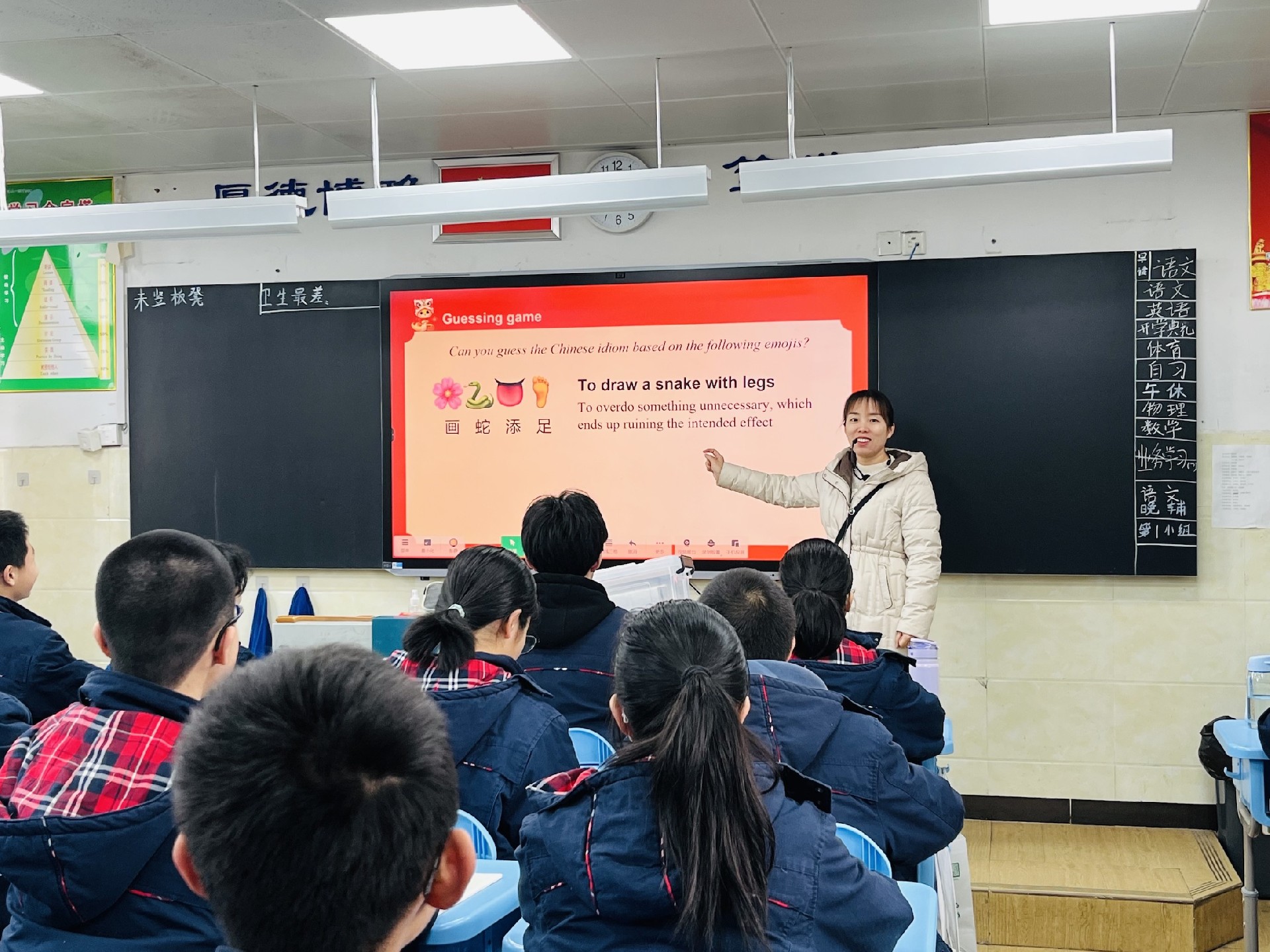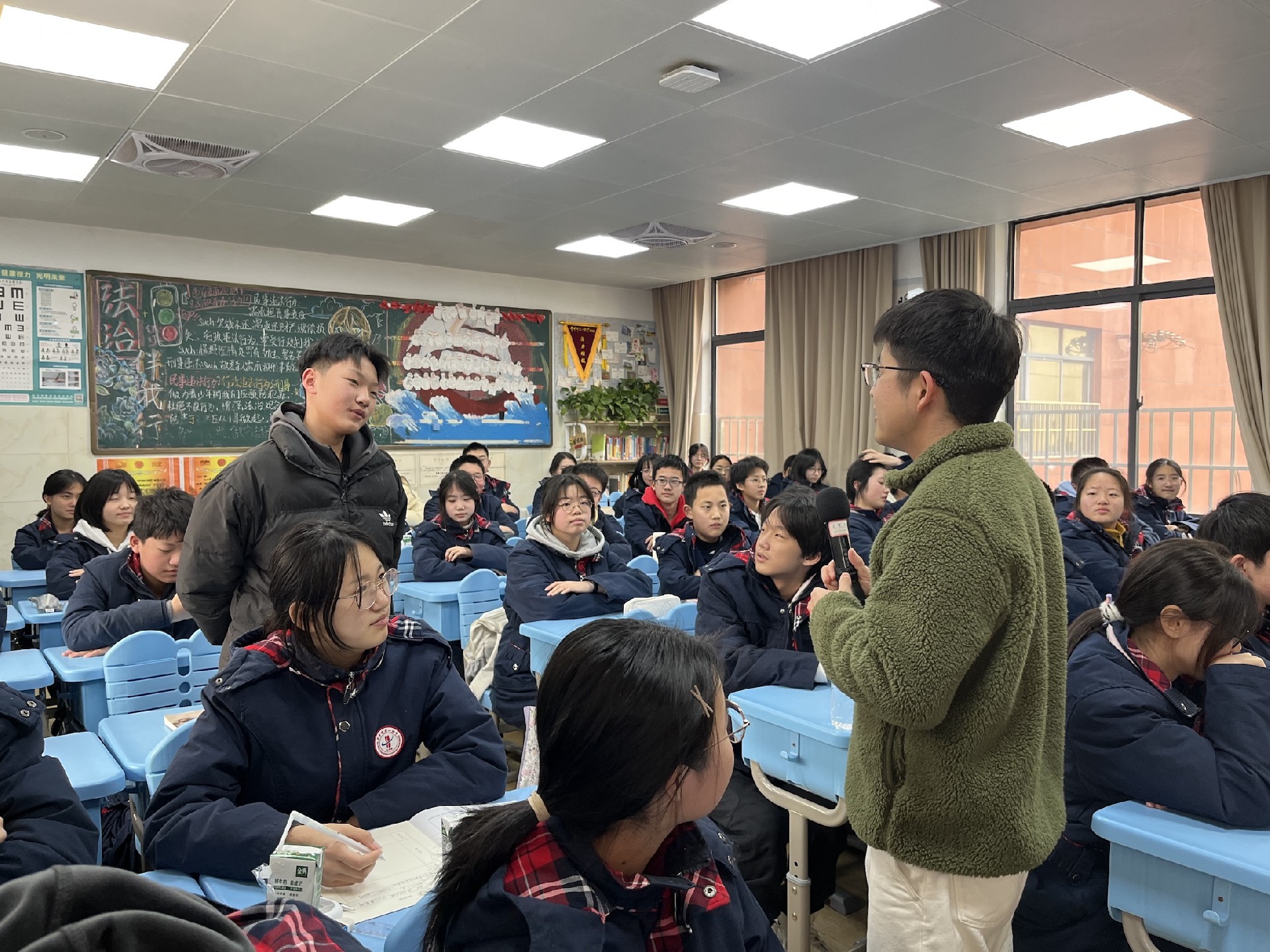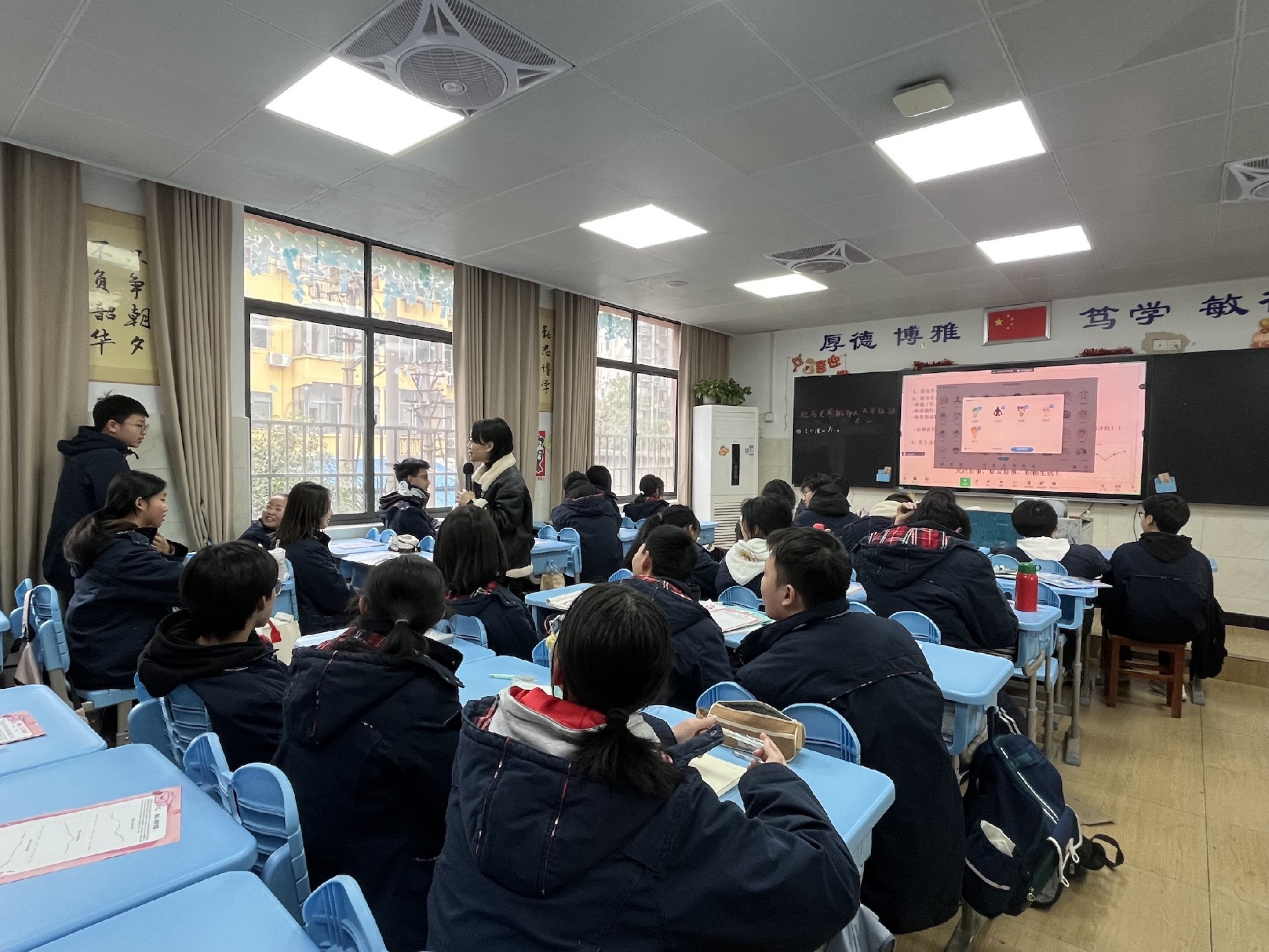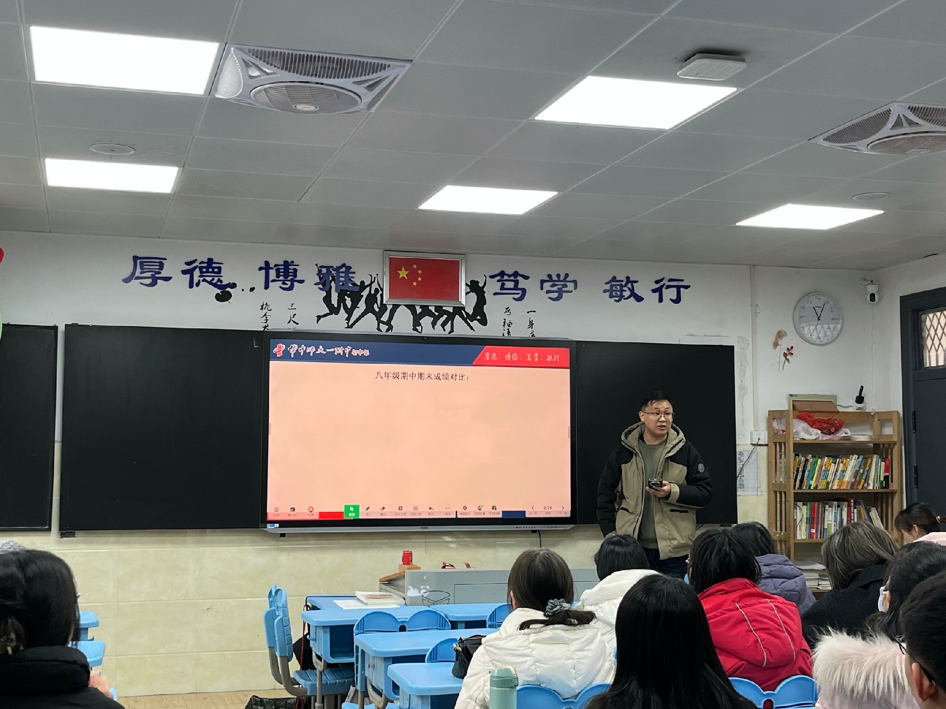 教室是梦想生长的沃土。家长与学子执帚并肩,将方寸天地装点成知识的殿堂。窗明几净处,有竖立整齐的桌椅静待墨香;一笔一画间,有暖心的新年寄语悄然生长。当清晨第一缕阳光拂过崭新的年级宣传板,每个角落都在诉说教育的温度。