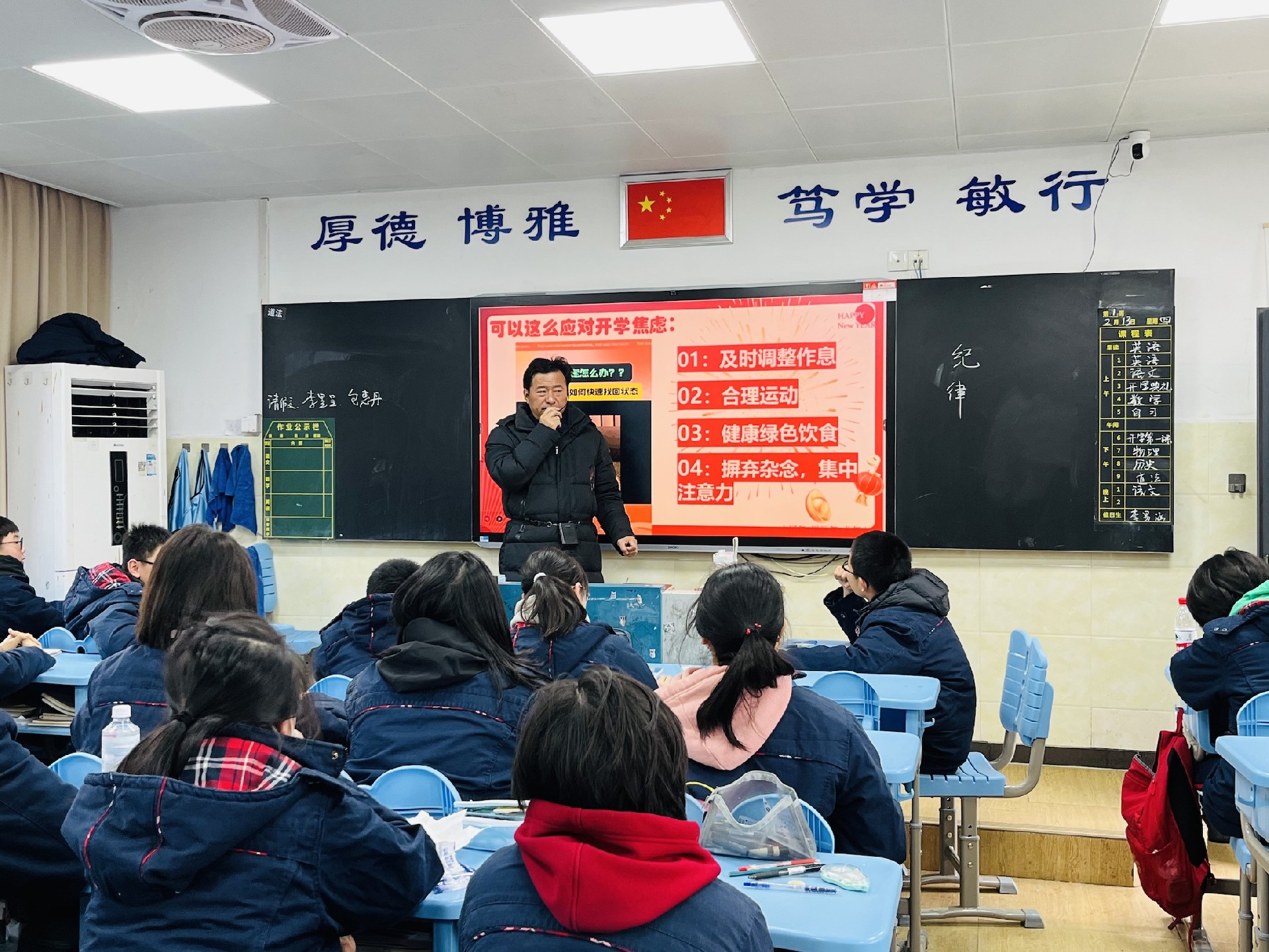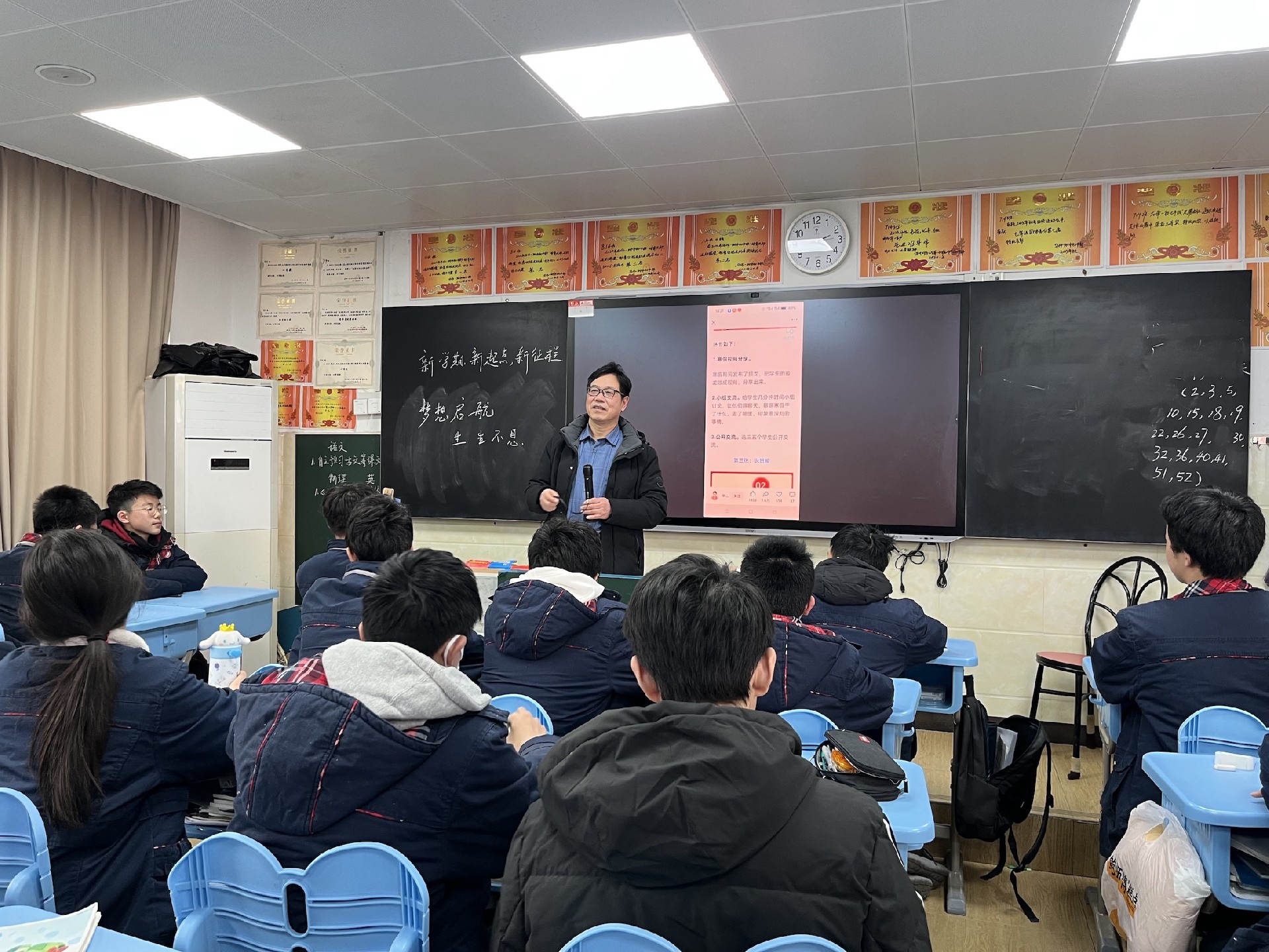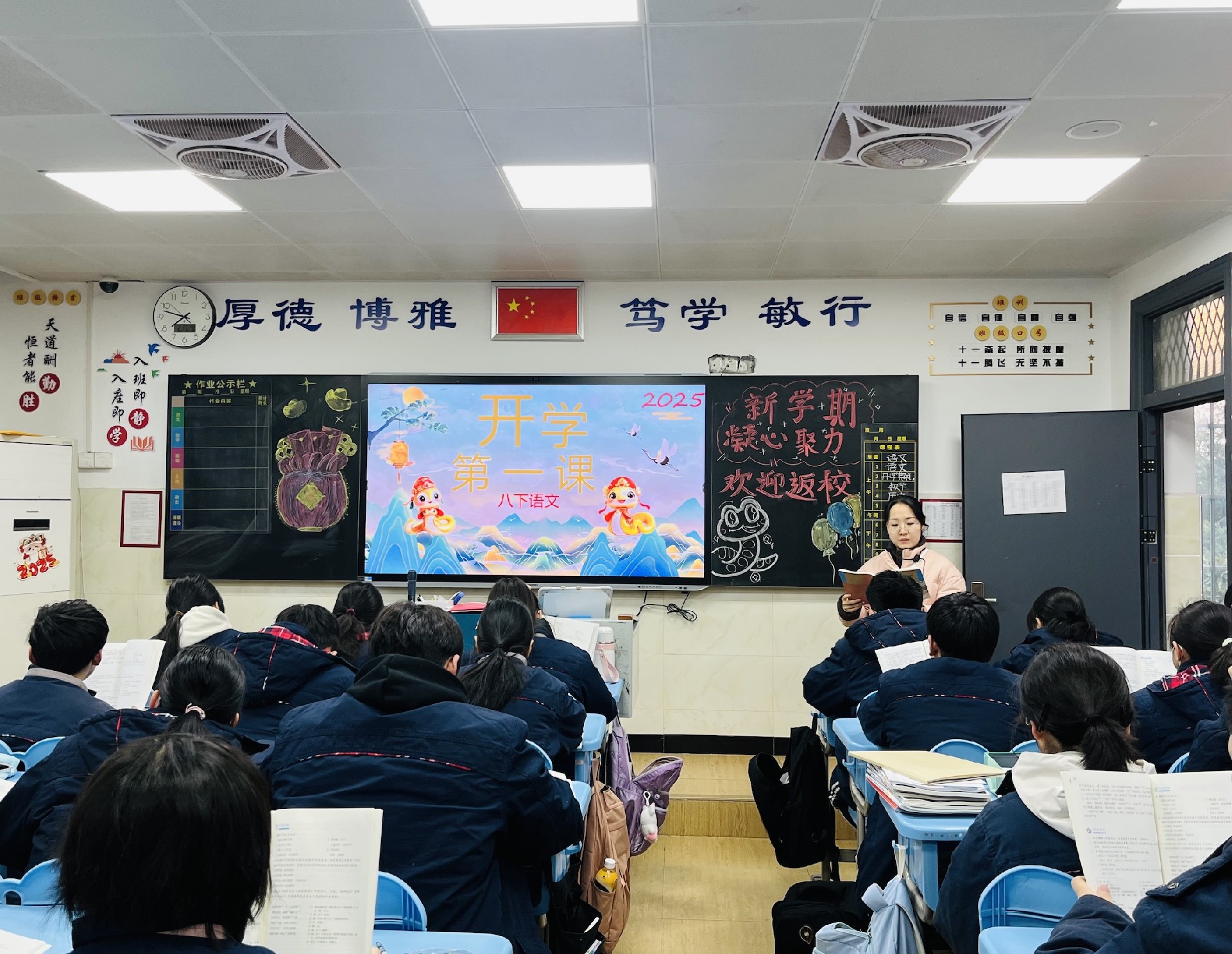 2月13日的开学典礼上,江校长的新学期寄语如春风拂面。"为梦想全力以赴、让青春焕发光芒"的鼓舞,恰似破晓的晨钟,激荡着少年们的心房。八年级学子挺直的脊梁,已写满对未来的承诺。
