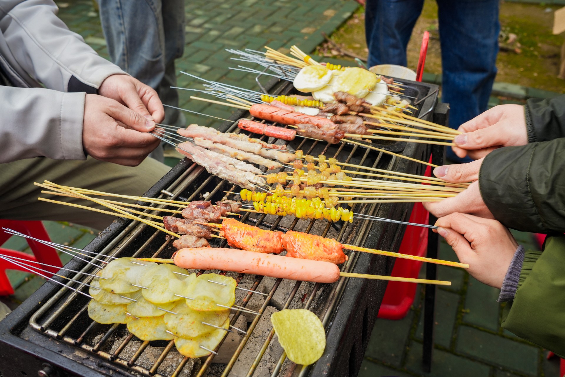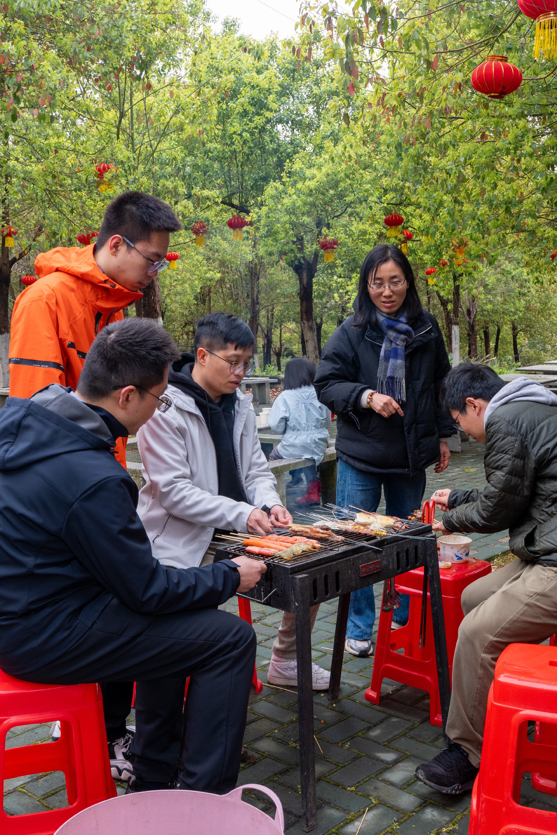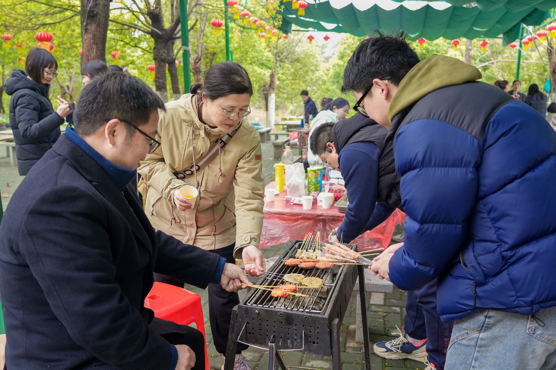 午餐环节,老师们积极发挥动手能力,架起碳炉,升起袅袅烟火,老师们将食材放置炭火之上进行烤制,刷油紧接着翻面和撒料,在老师们默契的配合之下,一串串食物开始滋滋冒油并散发出香气,令人垂涎三尺。