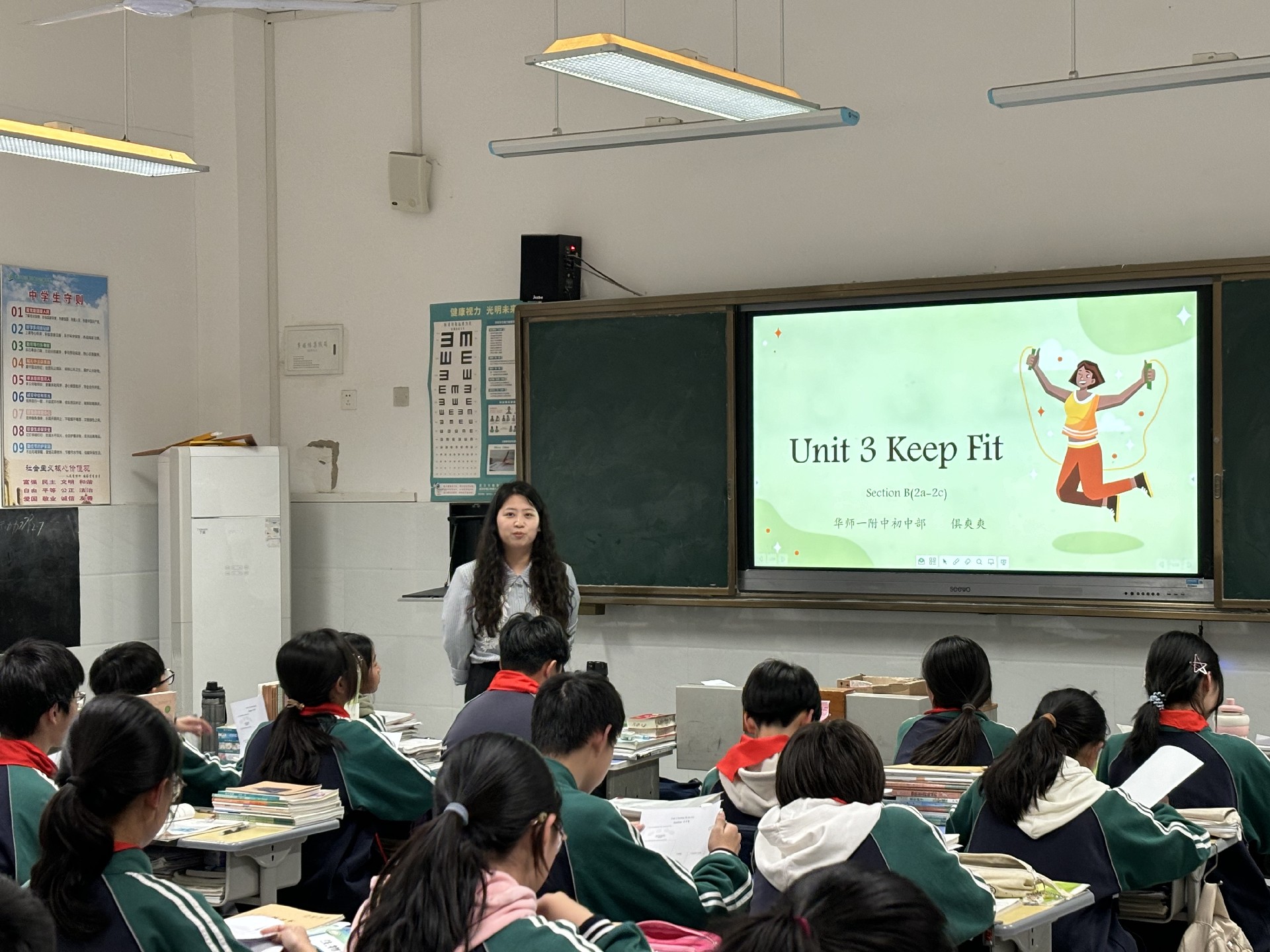 在金口初级中学,我校青年英语教师俱爽爽老师为七年级学生呈现了一堂以“健康生活”为主题的英语写作课,依托《Unit 3 Keep Fit》内容,采取“三阶推进”教学策略,通过观看视频激趣、文本分析建模、小组合作输出三步递进的方式,帮助学生实现从阅读到写作的有效转化。课堂环节紧凑、氛围活跃,充分体现了读写融合的教学理念,获得现场师生一致好评。