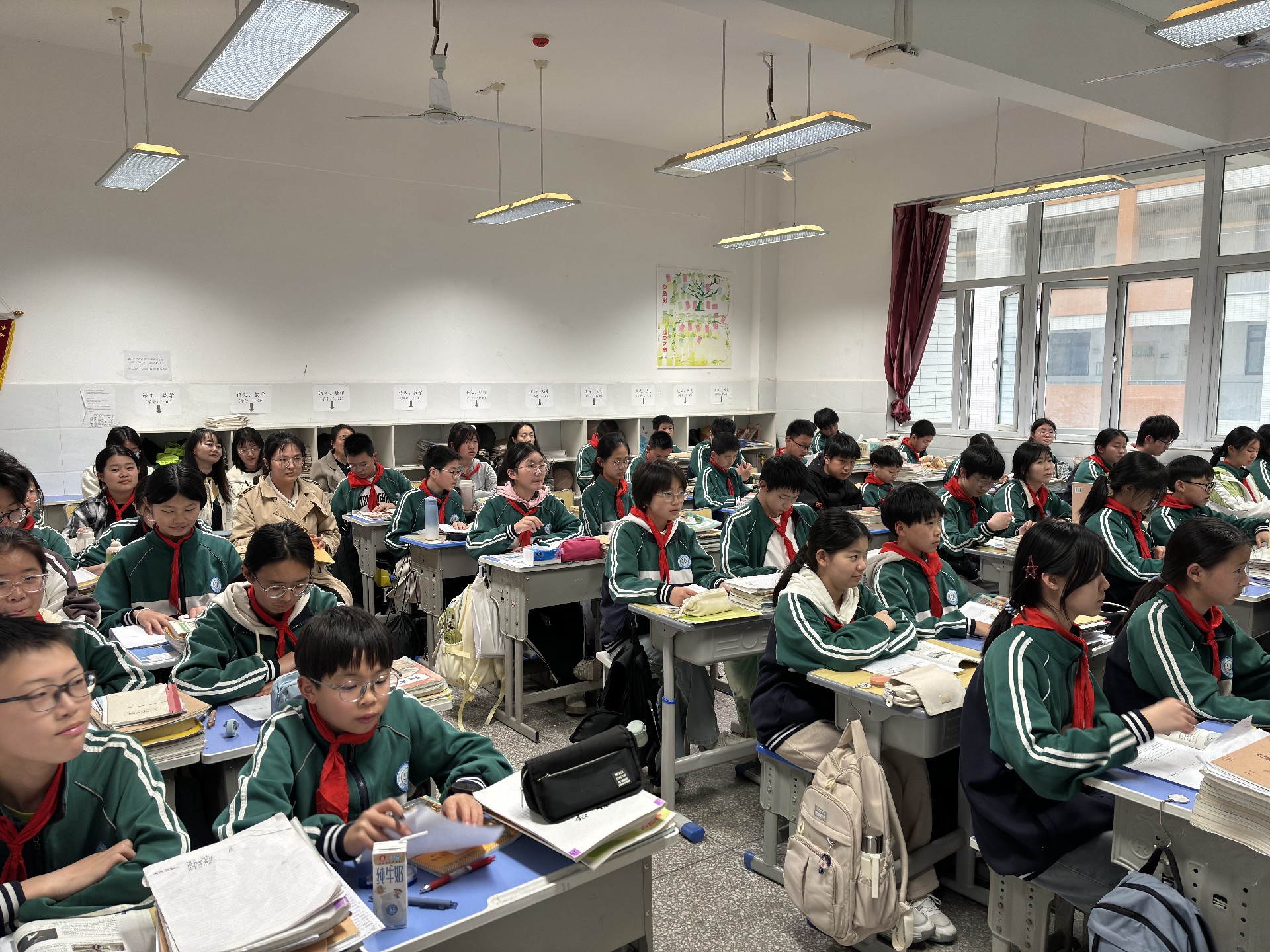 随后,叶校长结合新课程标准分享了英语教学提质的五项具体路径,涵盖课堂结构优化、语言习得顺序、深度阅读策略、教材本位教学及目标导向体系建设等方面,理论结合实践,切实回应一线教师教学痛点。三校教师围绕写作教学困境、九年级备考策略等议题展开深入交流,现场教学思想碰撞频频。叶校长提出的“感官联动写作法”尤其引发共鸣,成为此次教研交流的一大亮点。