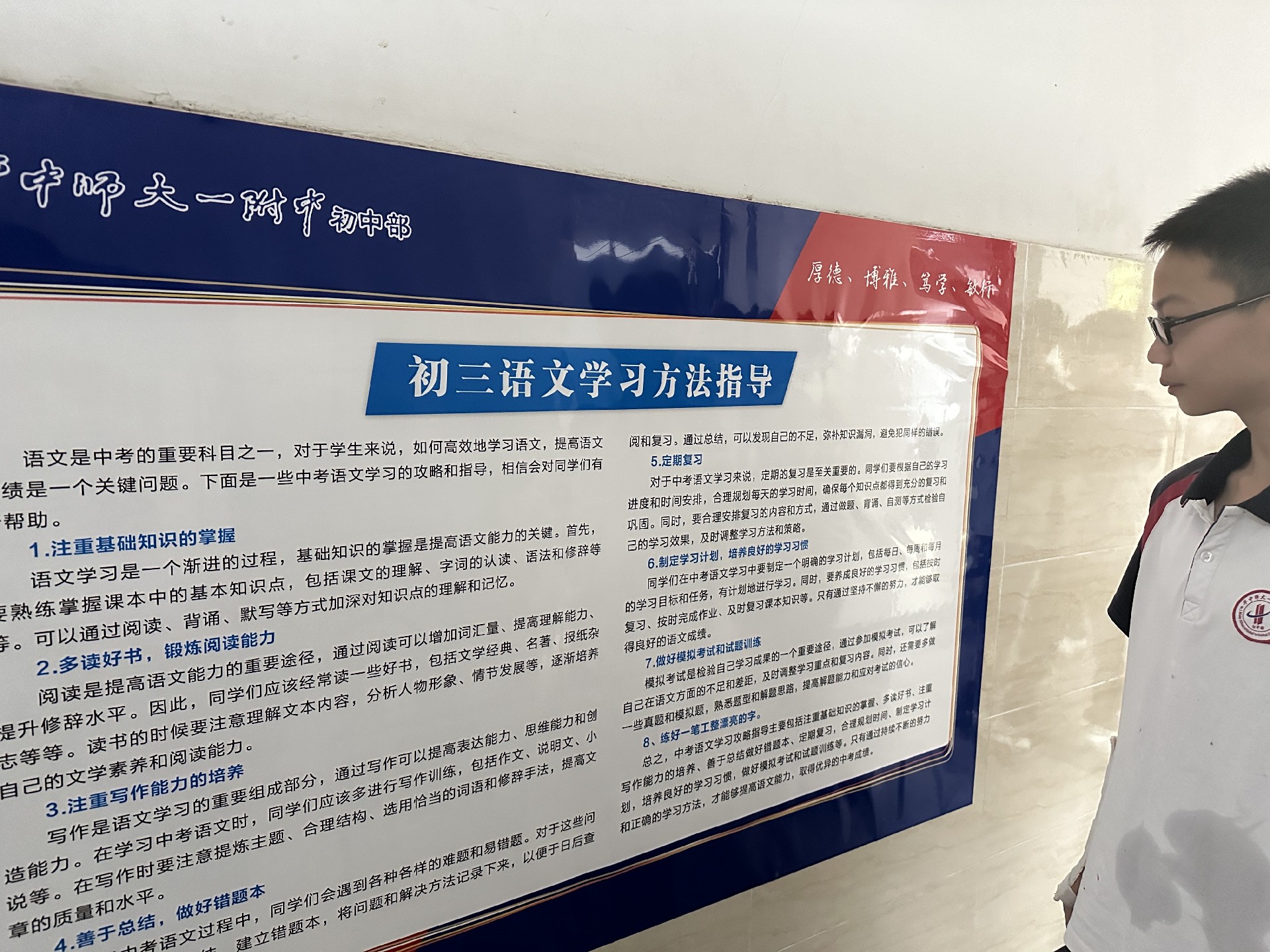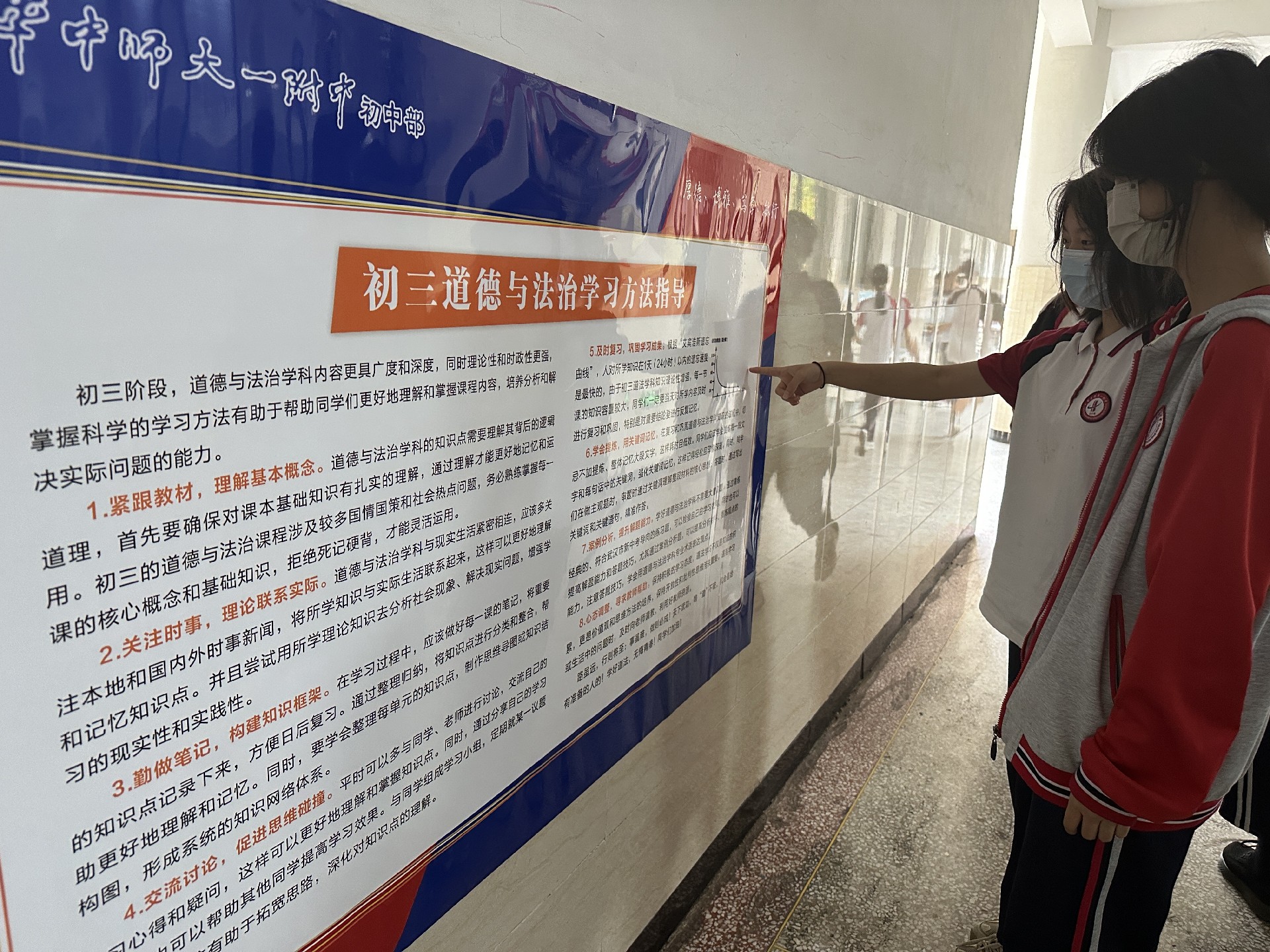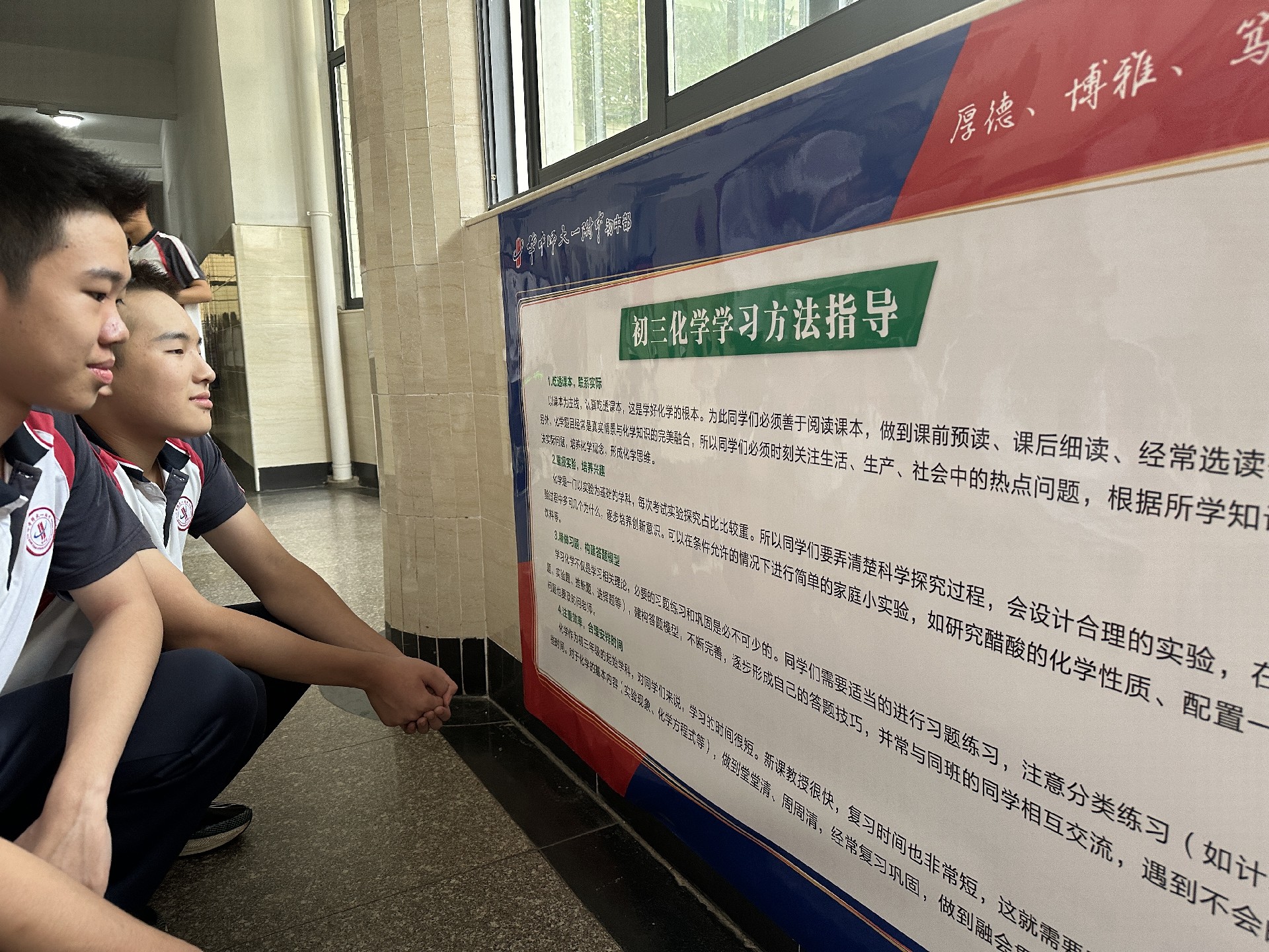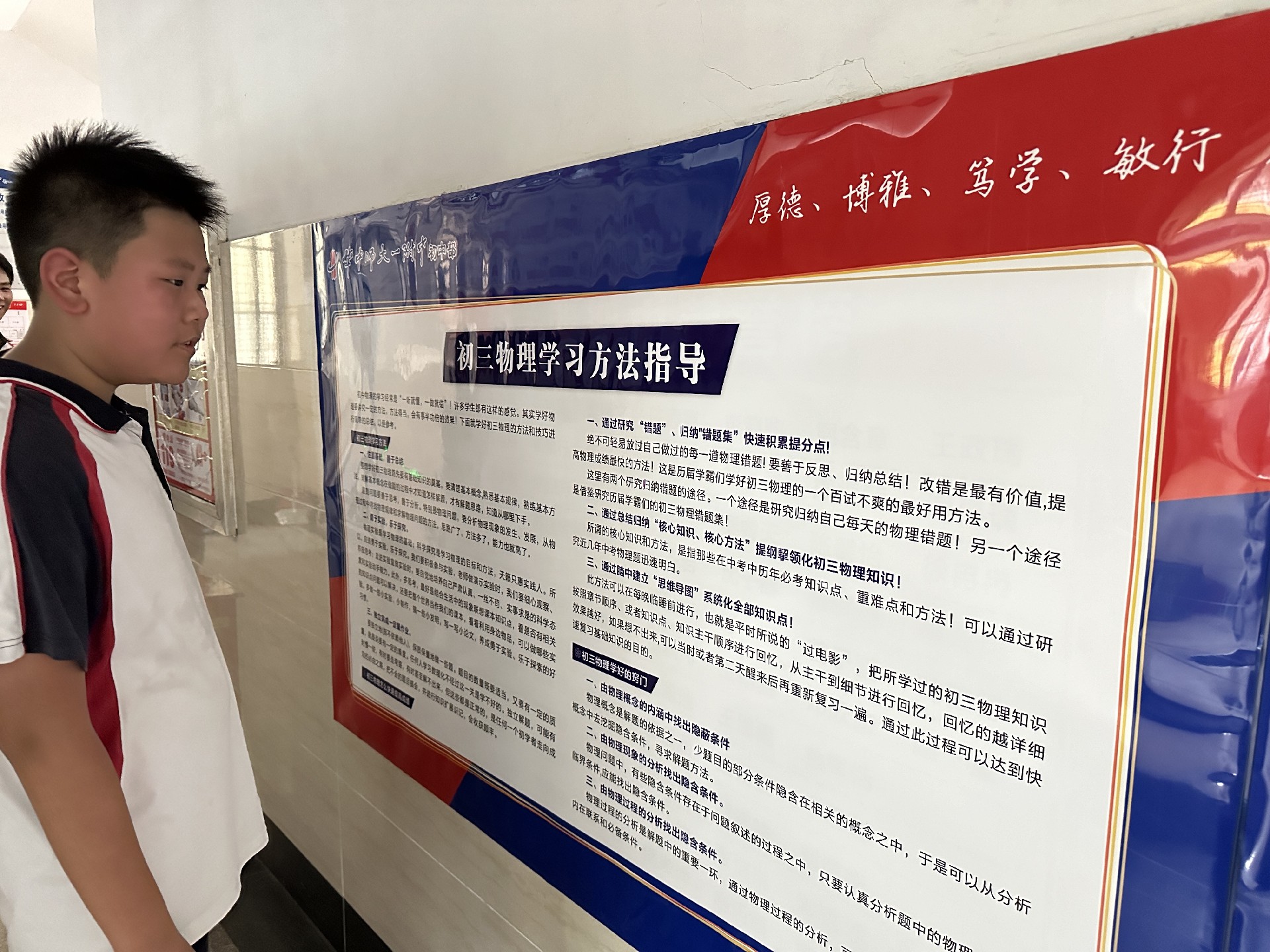 随着新学期的钟声敲响,初三年级迎来了充满希望与挑战的新学年。学生们怀揣着对知识的渴望和对未来的憧憬,重返校园,准备在接下来的一年中奋力拼搏,以更加饱满的热情和坚定的信念,书写属于自己的青春篇章。初三年级老师们为孩子们准备了中考学习方法指导大礼包,并张贴在了教学楼的各个楼层。孩子们利用课间的时间观看和学习。