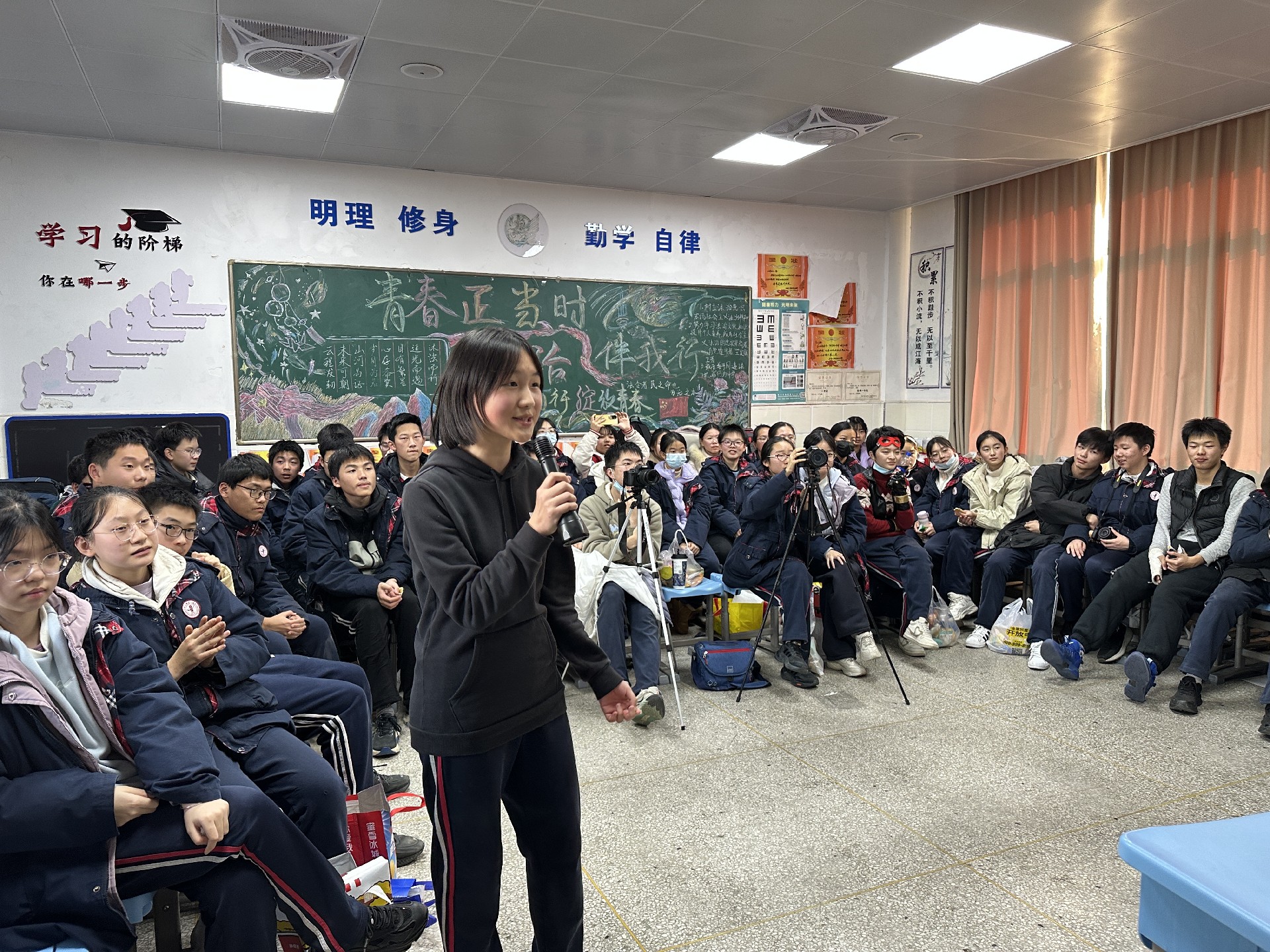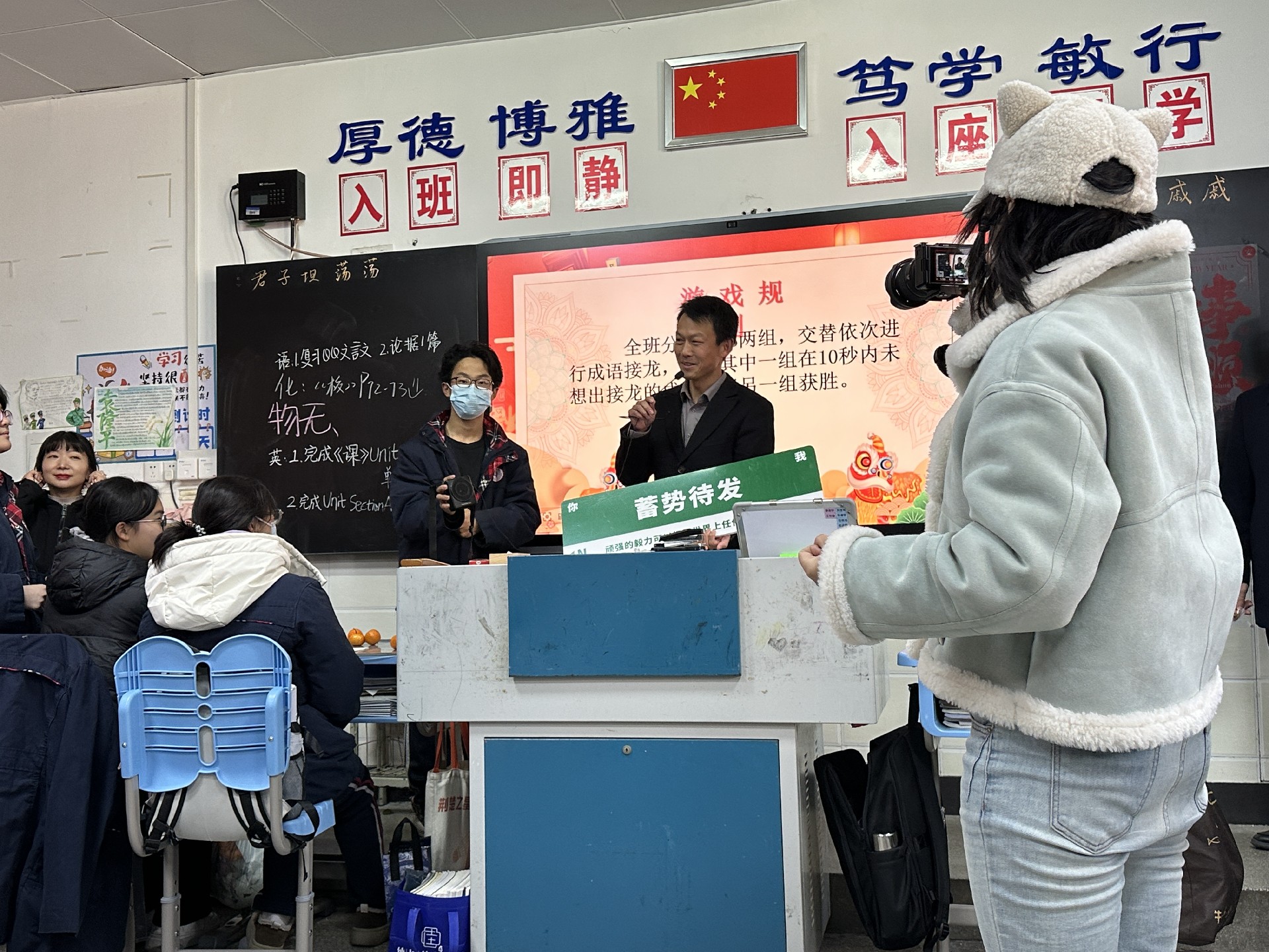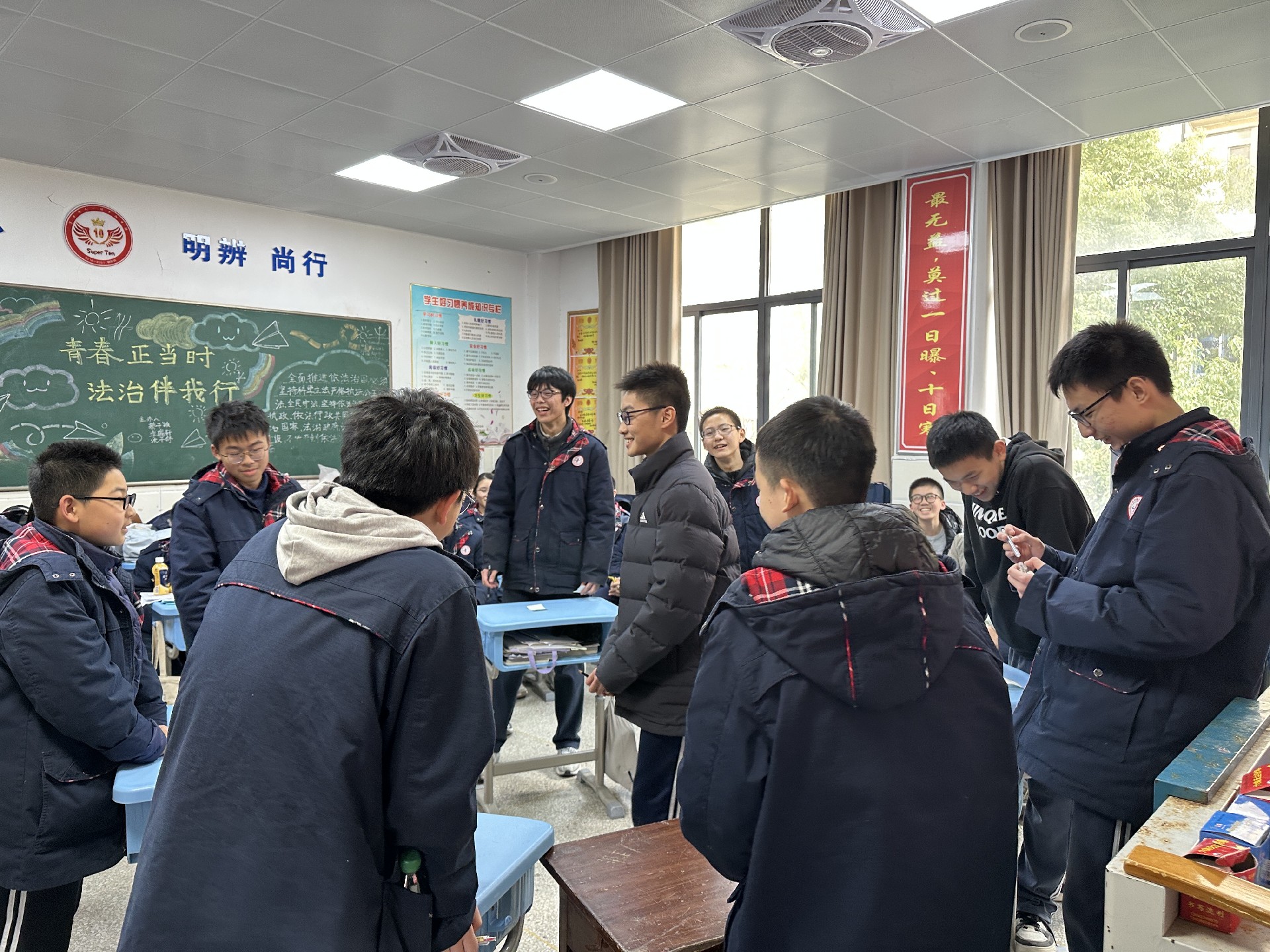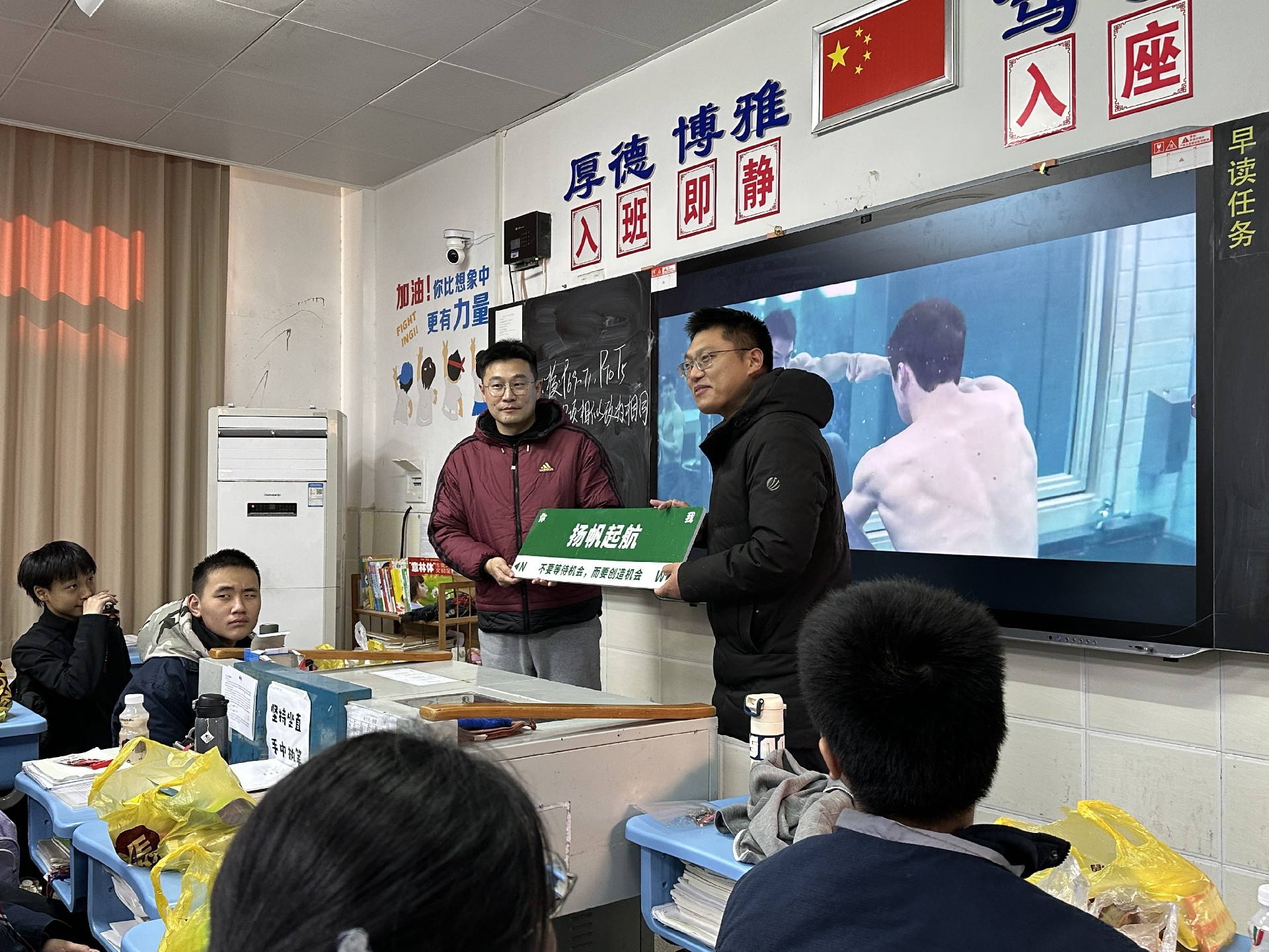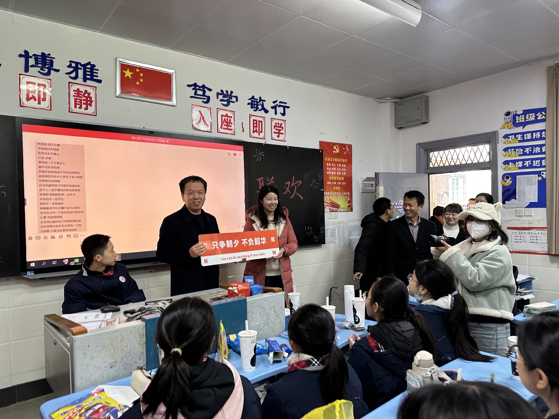 学校领导们也心系初三学子,在繁忙的工作中抽出时间深入到各个班级。校长带领着领导们逐一走进教室,为师生们送上真挚的新年祝福。校长发表了亲切的讲话,回顾过去一年学校与师生共同走过的历程,肯定了初三同学们在学业上的努力和拼搏精神,同时也对新的一年给予了深切的期望,鼓励大家在新的一年里继续保持积极向上的态度,在学习上不断进步,为即将到来的中考做好充分准备,为自己的初中生活画上圆满的句号。随后,领导们为每个班级送上了精心准备的新年祝福板,祝福板上写满了对同学们的鼓励与祝福,希望这份小小的心意能陪伴大家开启新的一年,激励着同学们在新的征程中勇往直前。领导们的关怀让师生们倍感温暖,教室里充满了温馨与感动,同学们纷纷与领导们合影留念,将这珍贵的瞬间定格成永恒的回忆。