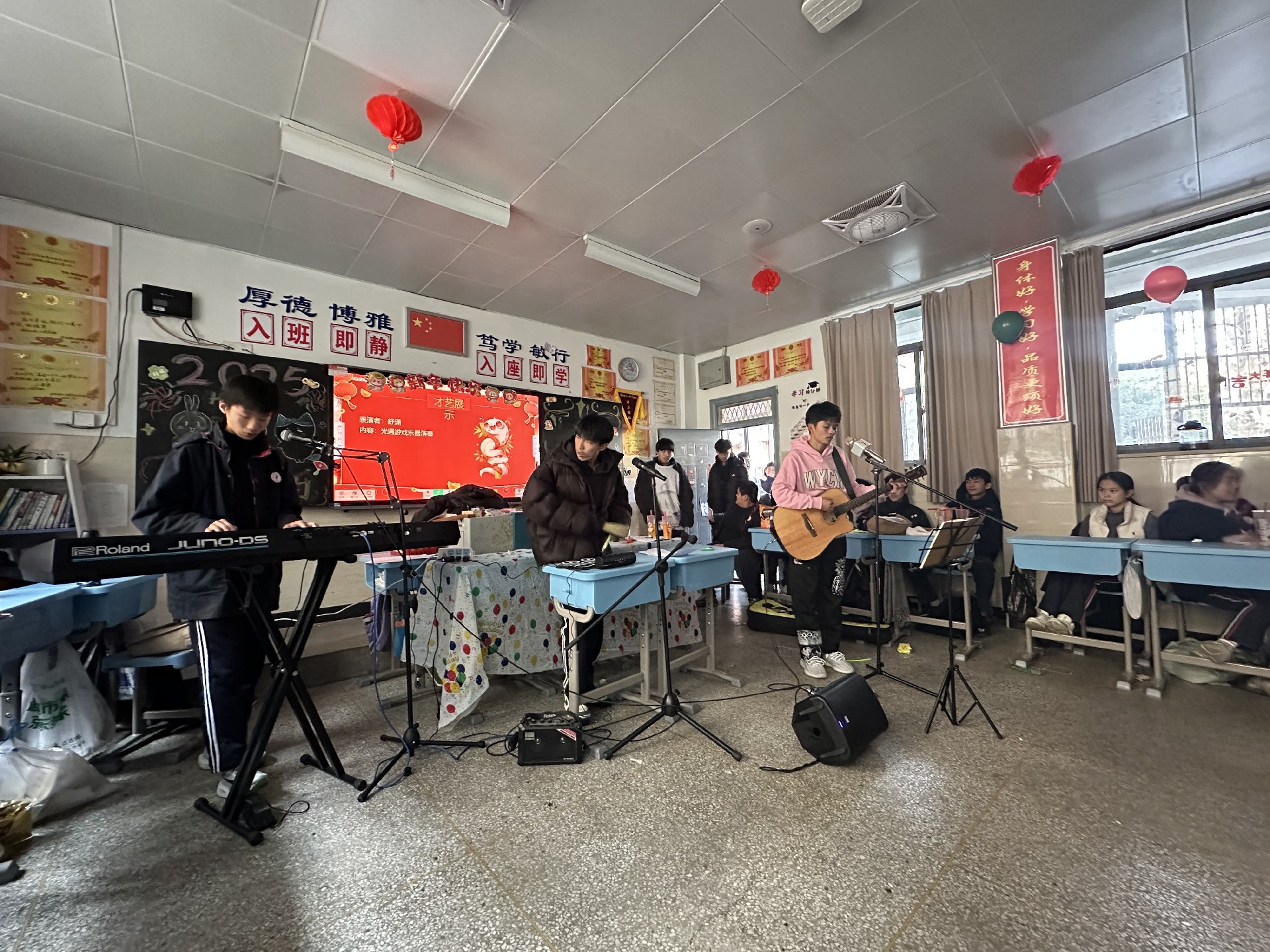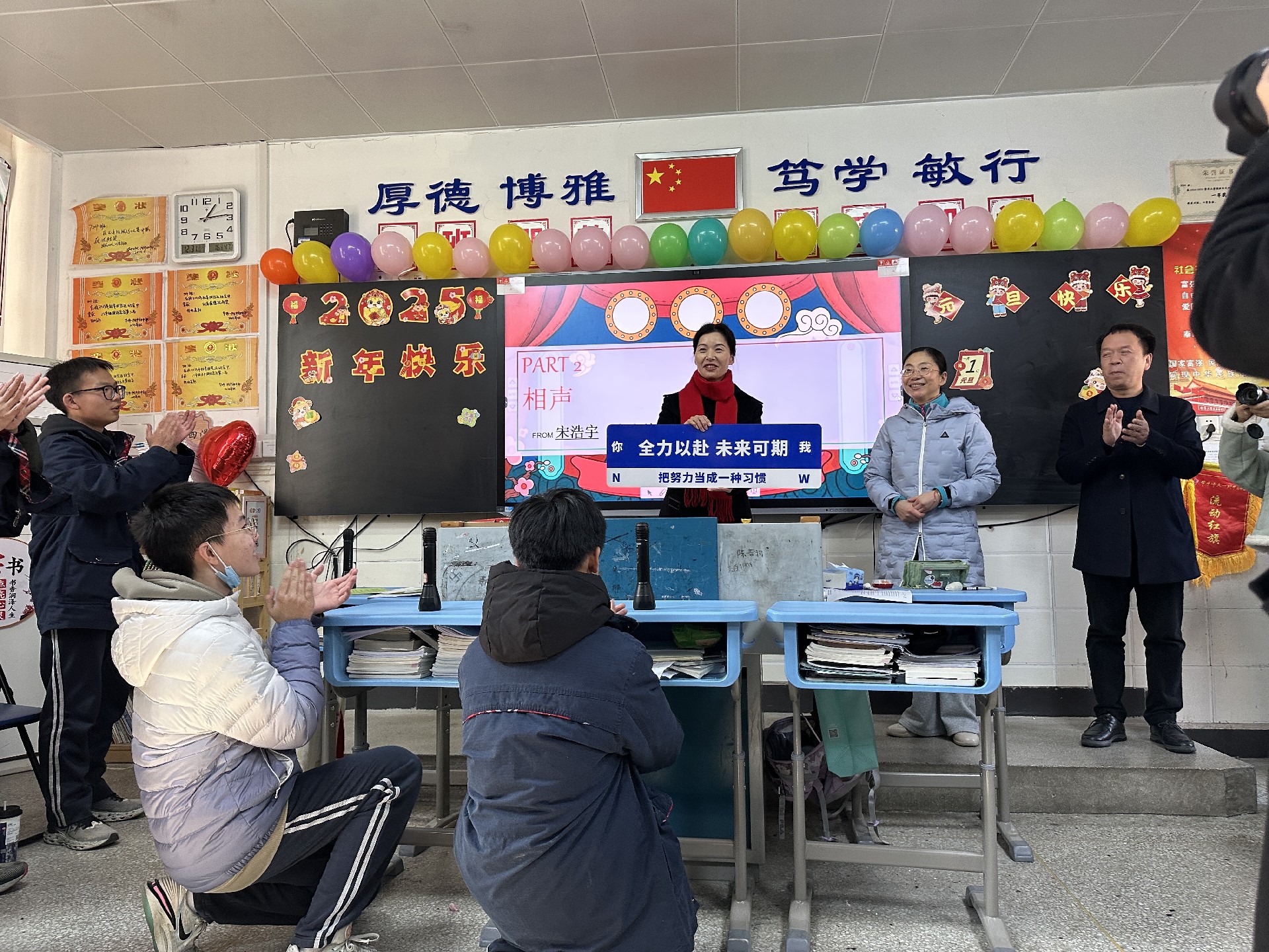这场班级元旦联欢会,虽然形式简单,却有着非凡的意义。它是初三年级师生们携手迈向 2025 年的新起点,见证了同学们的青春活力与团结友爱,凝聚了师生之间深厚的情谊,更承载了学校对全体初三学子的美好祝愿。在新的一年里,初三的同学们将带着这份欢乐与温暖,在老师们的悉心教导下,以更加坚定的信念、更加饱满的精神状态投入到紧张的学习生活中,向着梦想奋力前行,用青春的激情书写属于自己的荣耀篇章,让 2025 年成为他们人生中一段充满希望与收获的旅程。