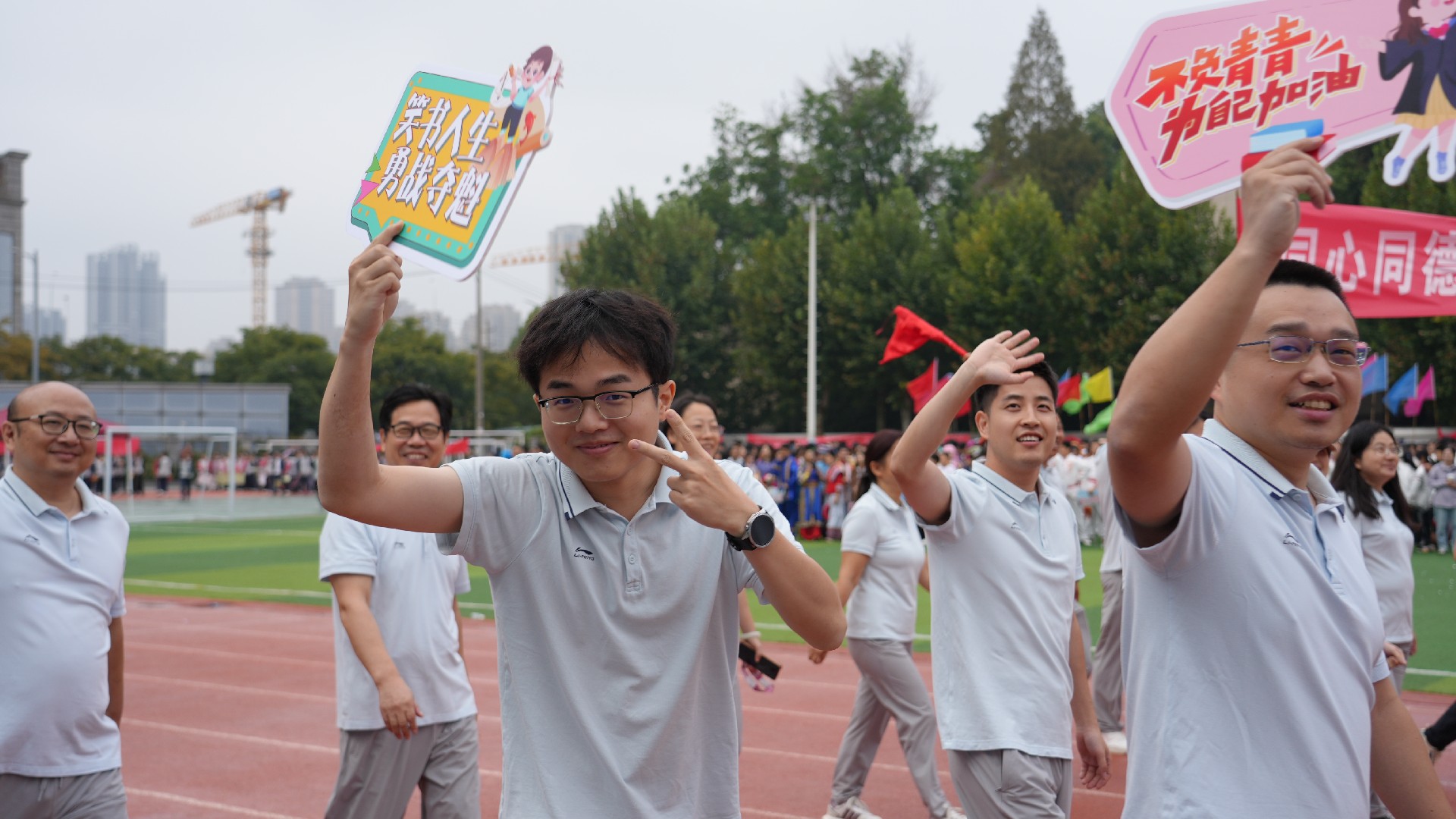 教师团作为九年级学子的 “终极后援天团”,走下讲台、走进赛场。他们是学子们在题海战、考场中最坚实的后盾与最强大的 “亲友团”,用行动诠释着与学子们并肩作战、共赴奋斗的决心,让九年级学子深切感受到,学习与生活之路,他们并非孤军奋战。