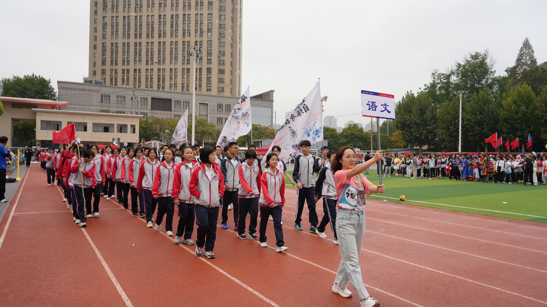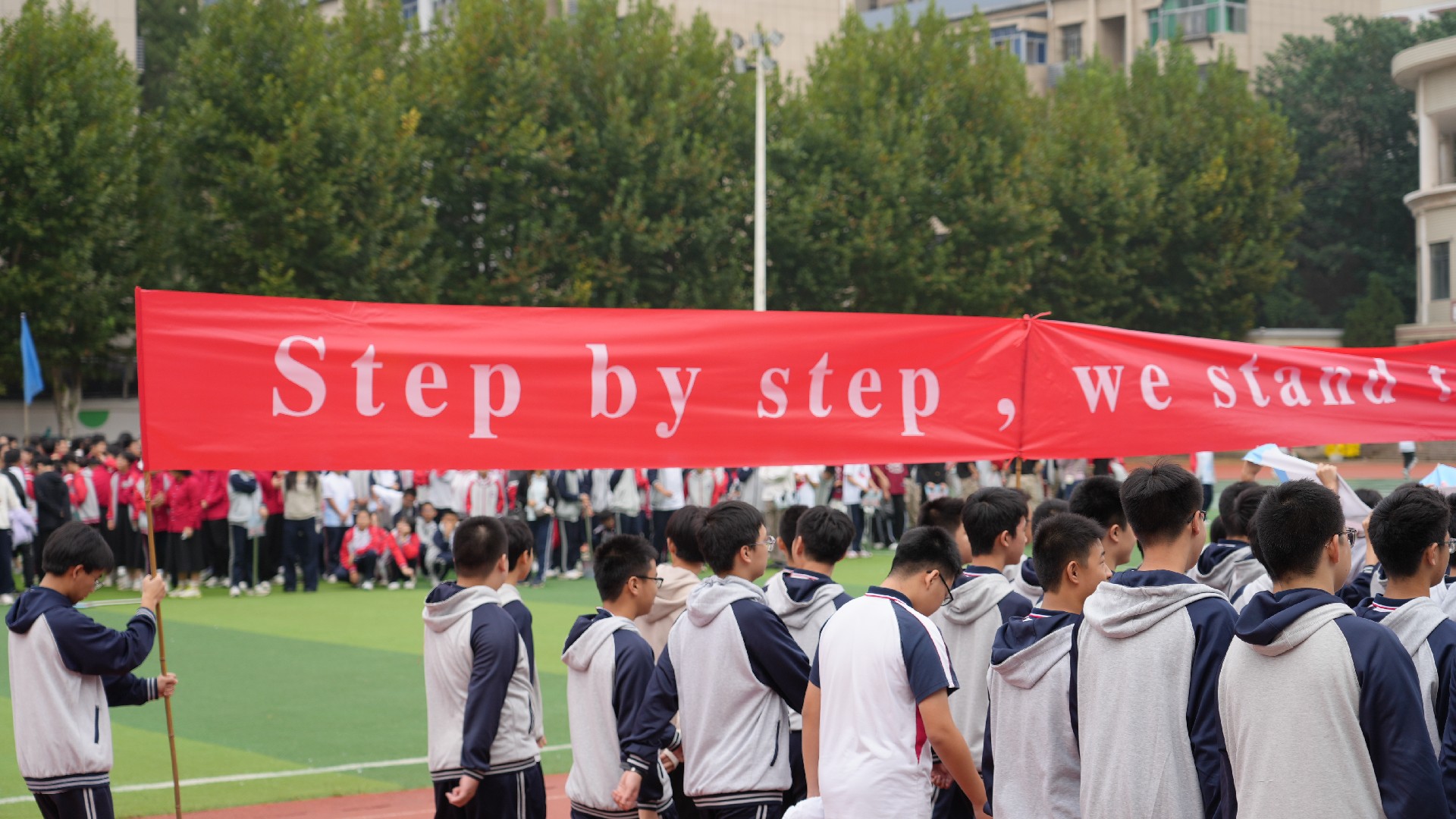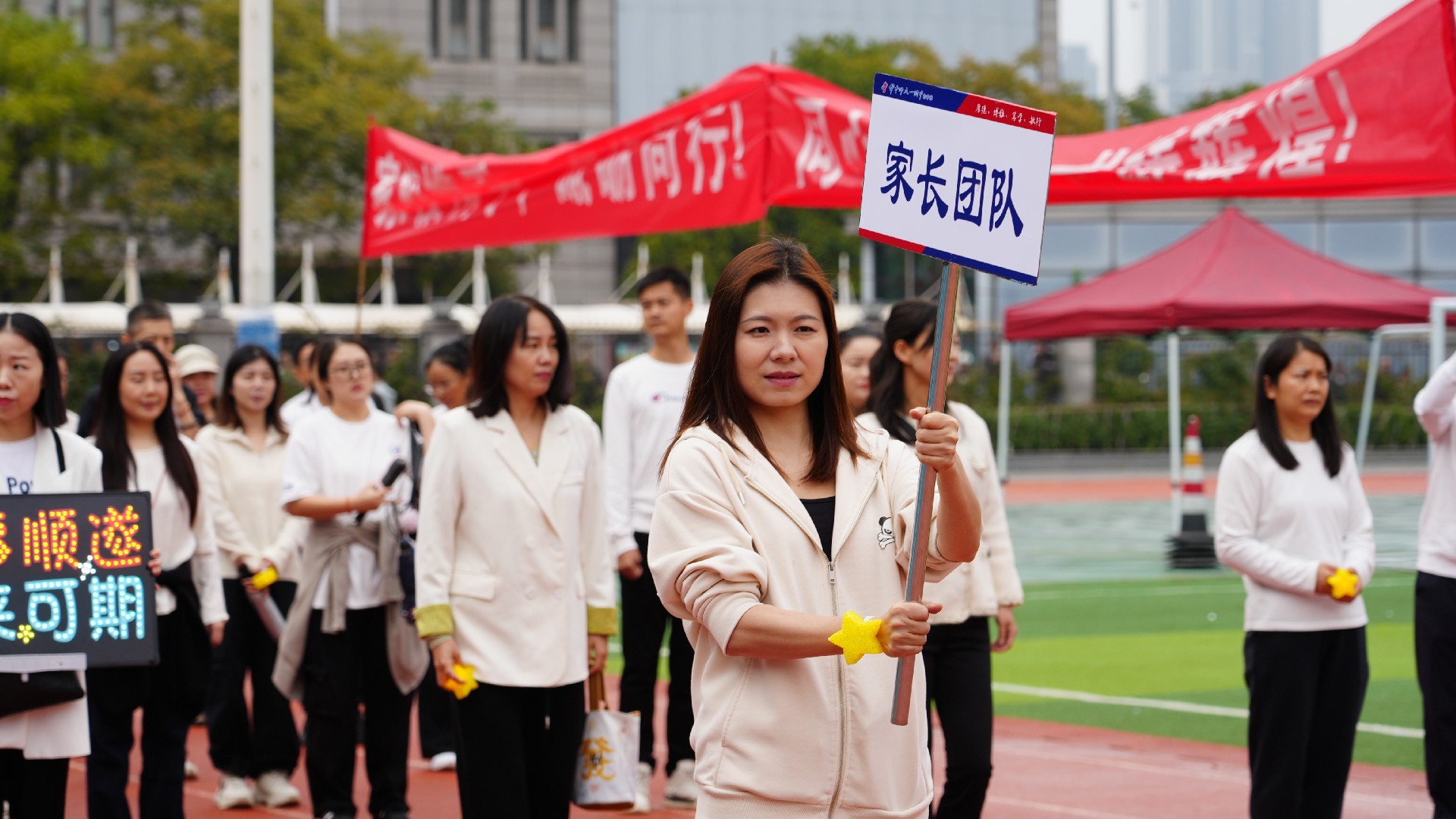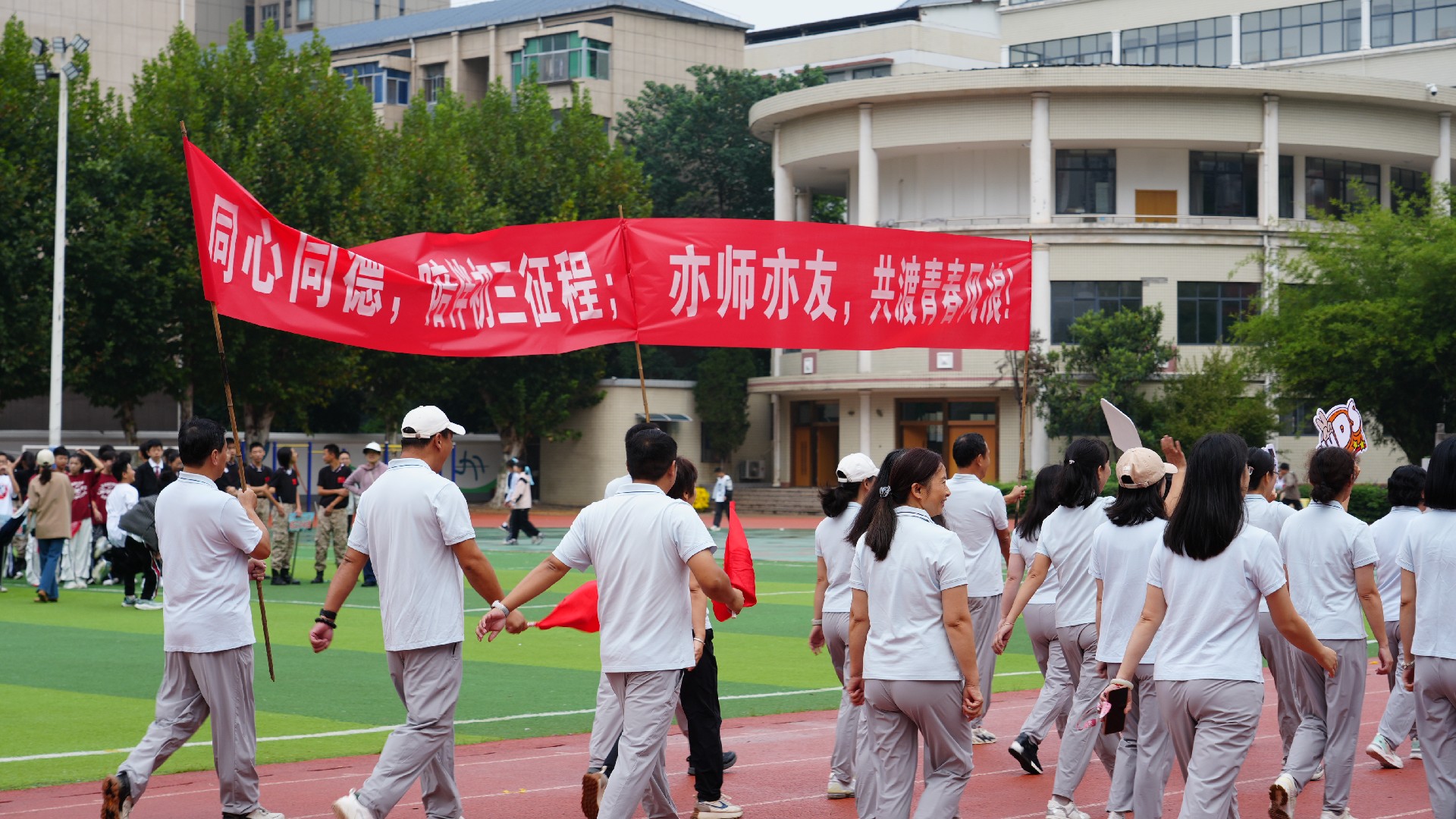 最令人动容的是家长团的亮相。他们是九年级学子最温暖的支柱与最坚实的后盾,清晨的忙碌、夜晚的守候,都凝聚着对学子们无条件的爱与支持。此次在运动场上的亮相,更是 “家校同心” 的生动诠释,让学子们深知,奋斗路上,家庭与学校始终携手护航。