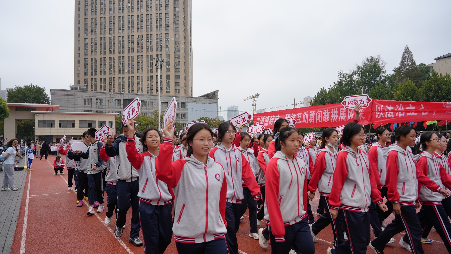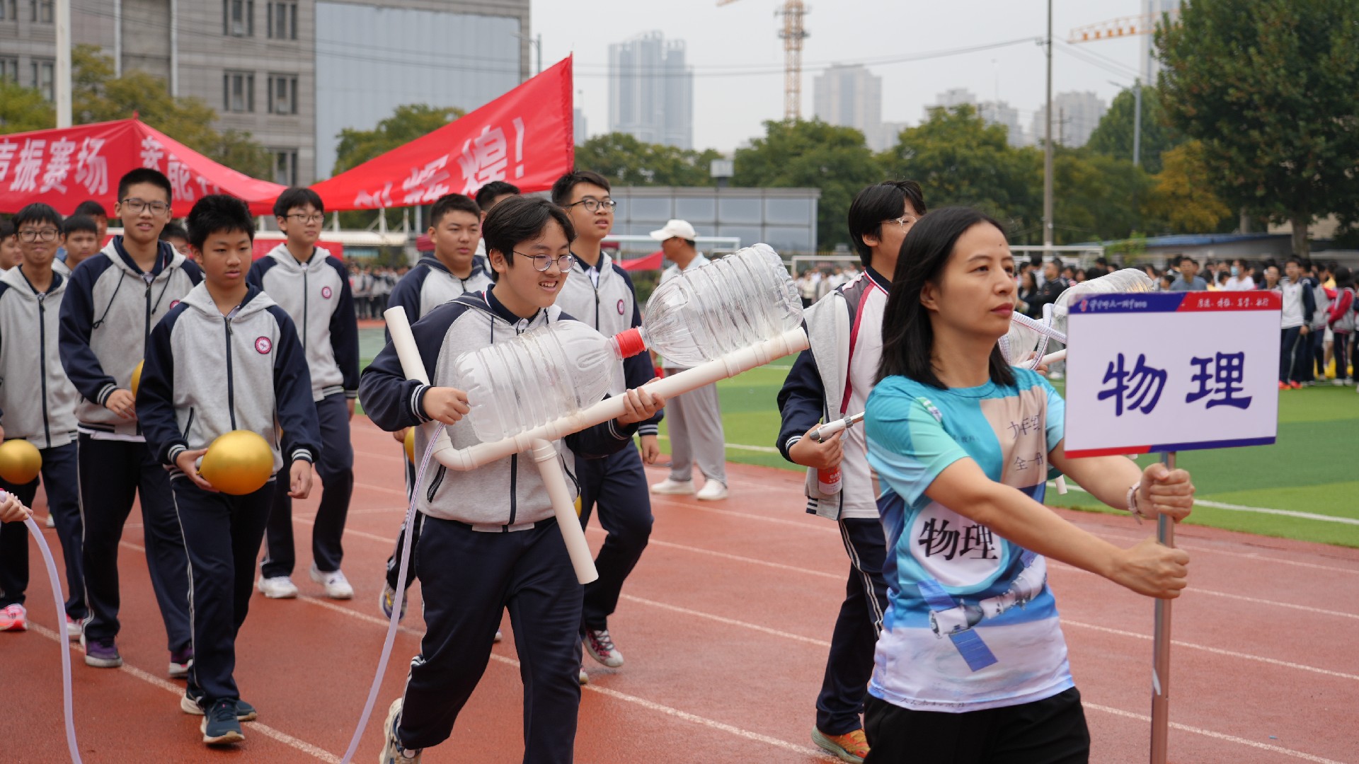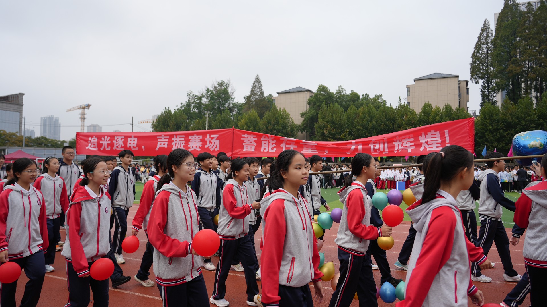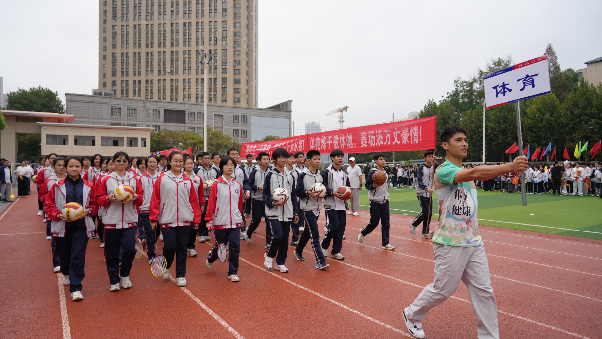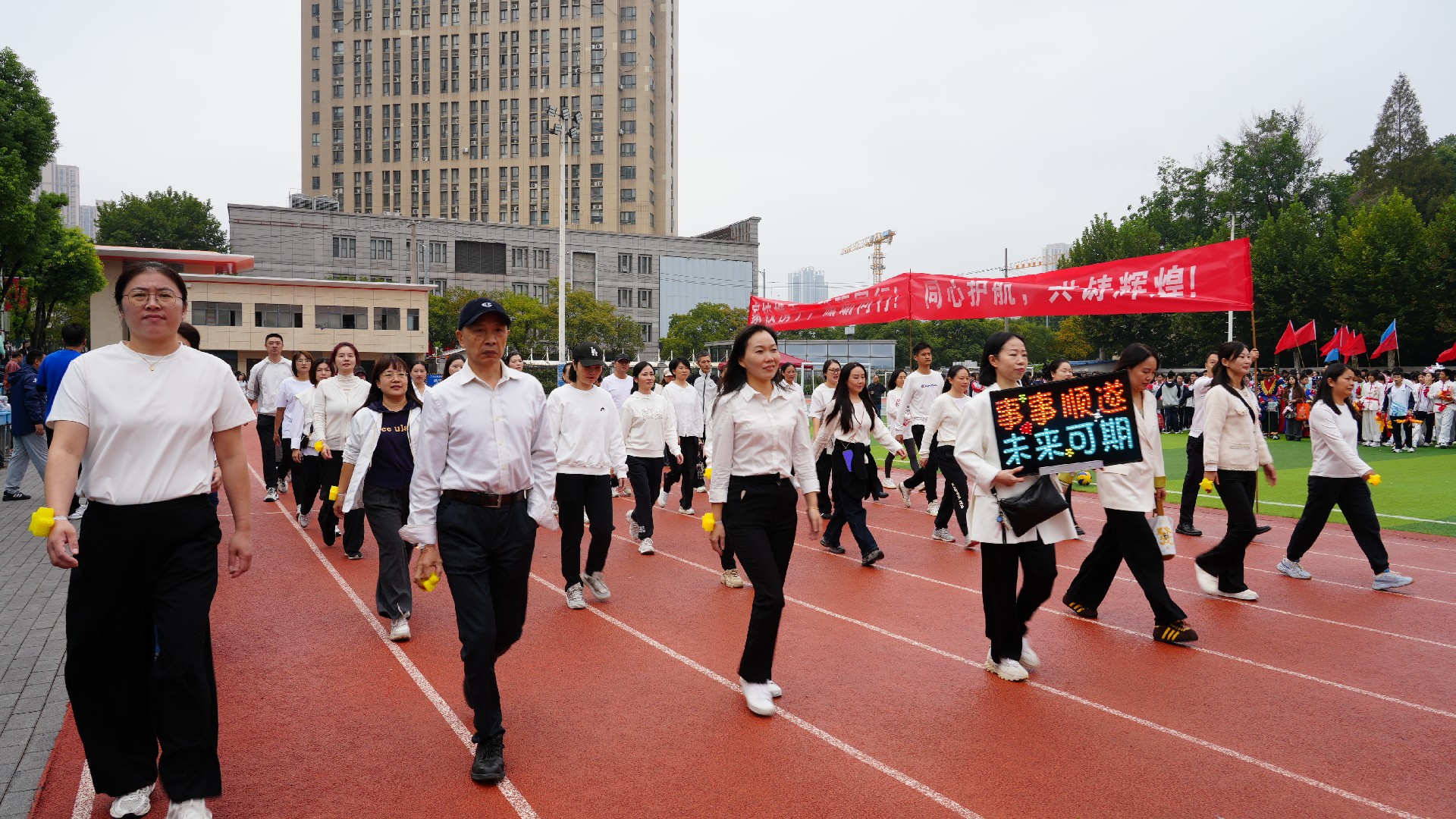 九年级方阵的整体呈现,完美诠释了家校携手、多方合力陪伴学子奋斗征程的构思。在这充满活力与希望的赛场上,九年级师生与家长同心同行,共同奔赴属于他们的辉煌征程,也为本次运动会增添了浓墨重彩的一笔。