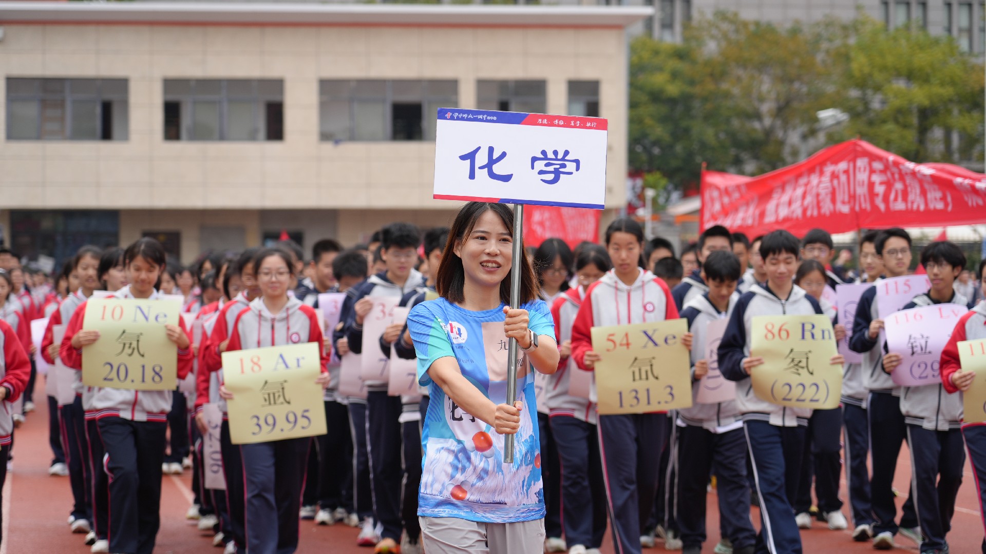 化学方阵如分子般充满活力,用团结与拼搏催化金色辉煌;