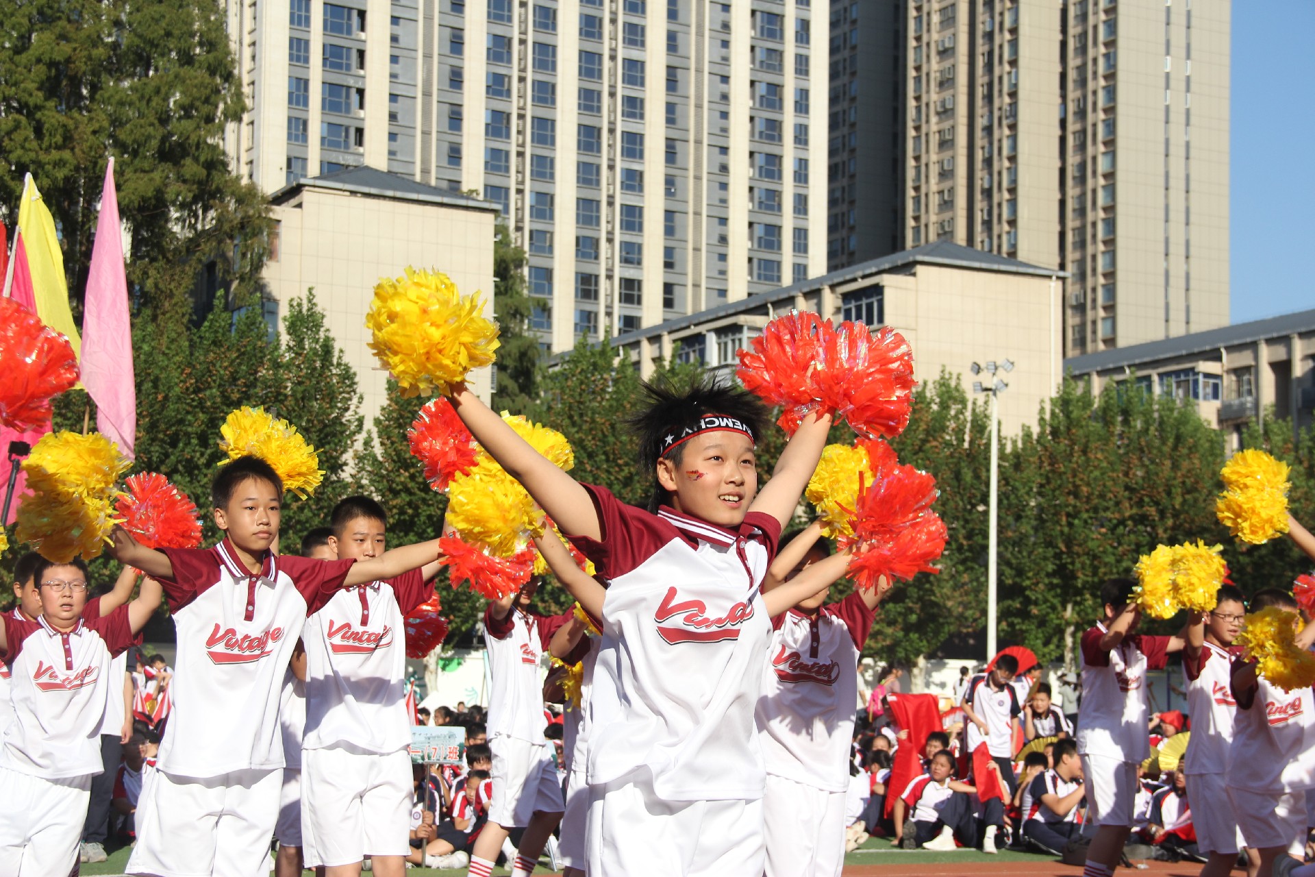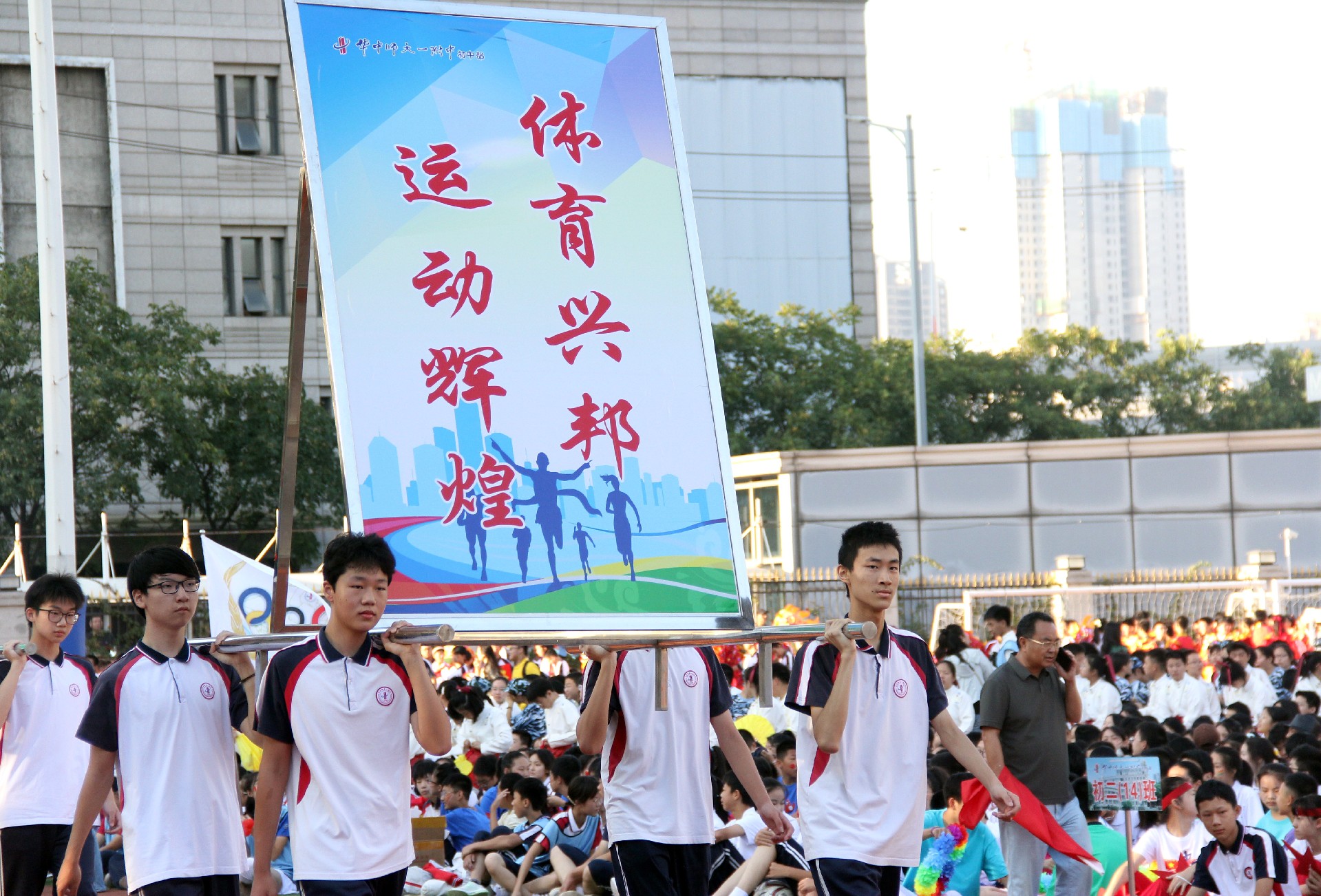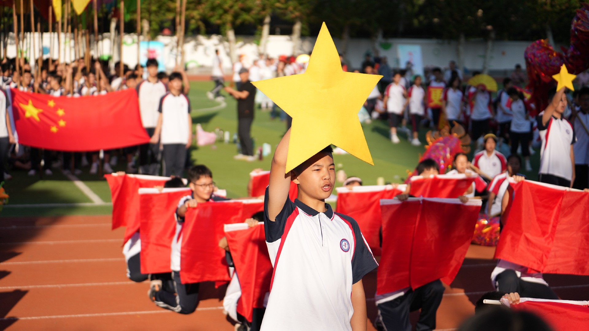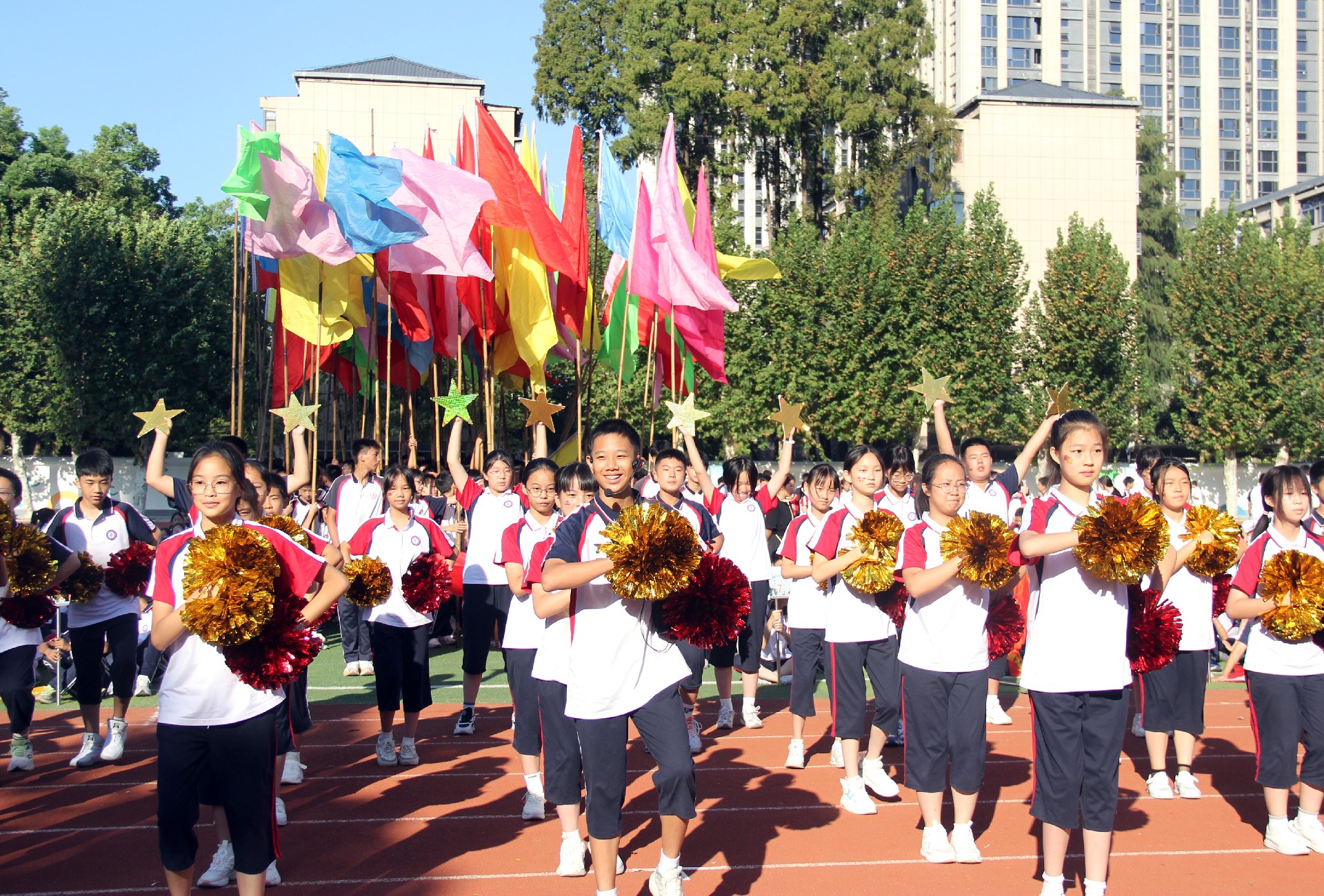 激扬奋进力量,书写伟大荣光。从巴黎奥运会到华一初田径赛场,中华体育精神和奥林匹克精神焕发新的光芒。同学们与时代同行、为祖国高歌,以运动之名,用精彩的表演展现了一个可亲、可敬、可爱的中国形象,祝福伟大的祖国生日快乐、繁荣昌盛。