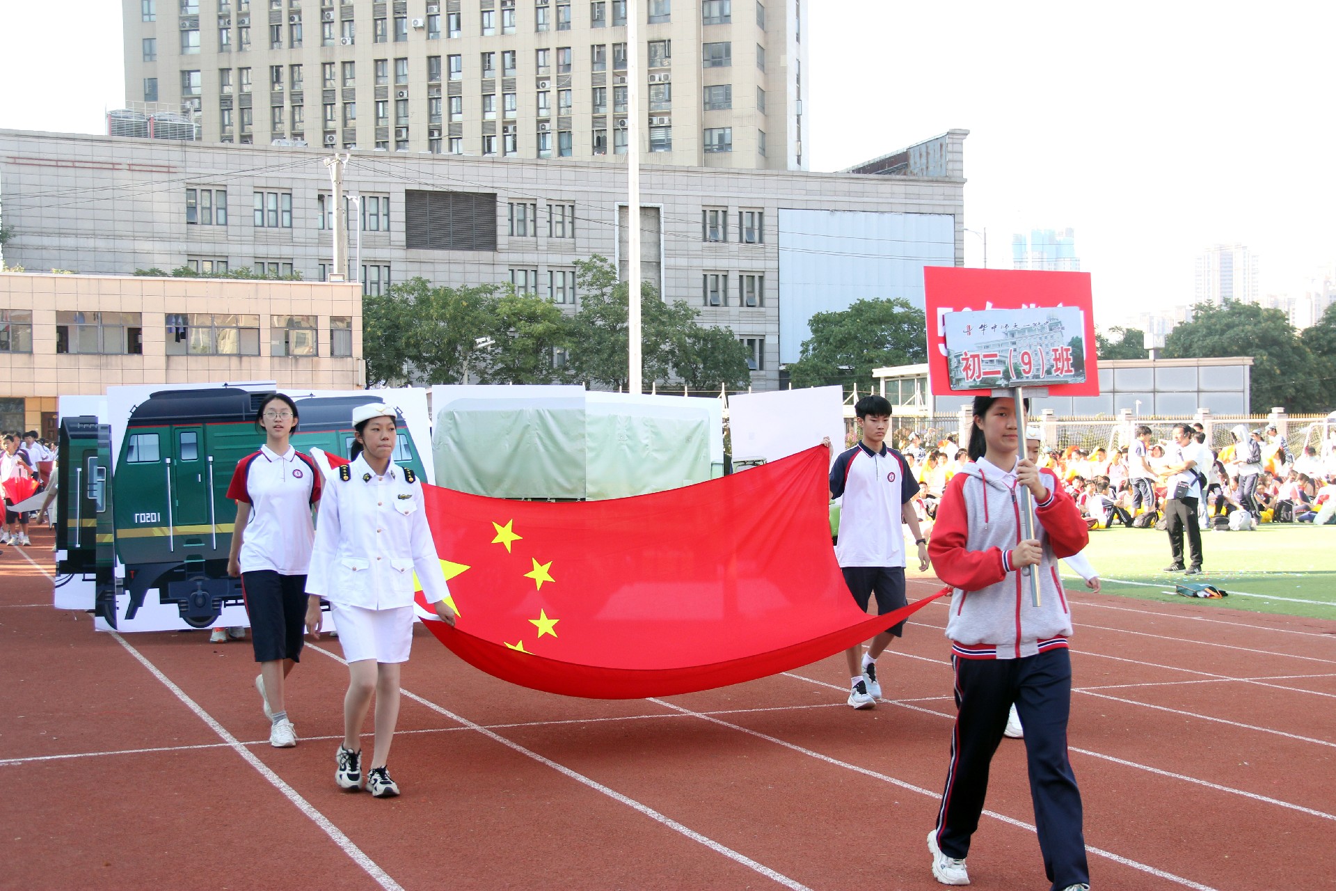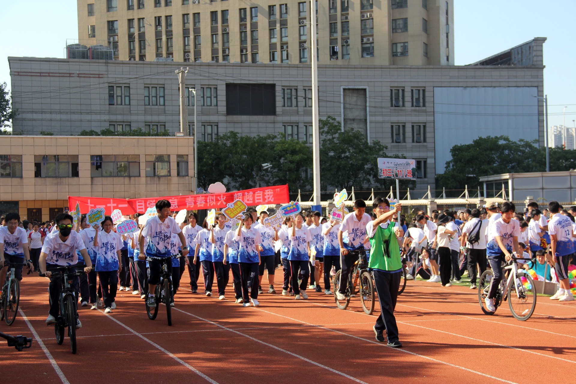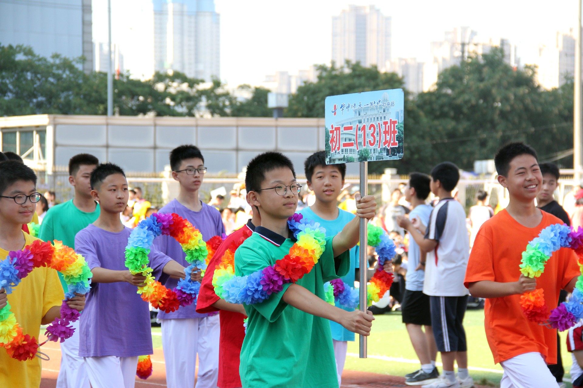 激扬奋进力量,书写伟大荣光。从巴黎奥运会到华一初田径赛场,中华体育精神和奥林匹克精神焕发新的光芒。同学们与时代同行、为祖国高歌,以运动之名,用精彩的表演展现了一个可亲、可敬、可爱的中国形象,祝福伟大的祖国生日快乐、繁荣昌盛。