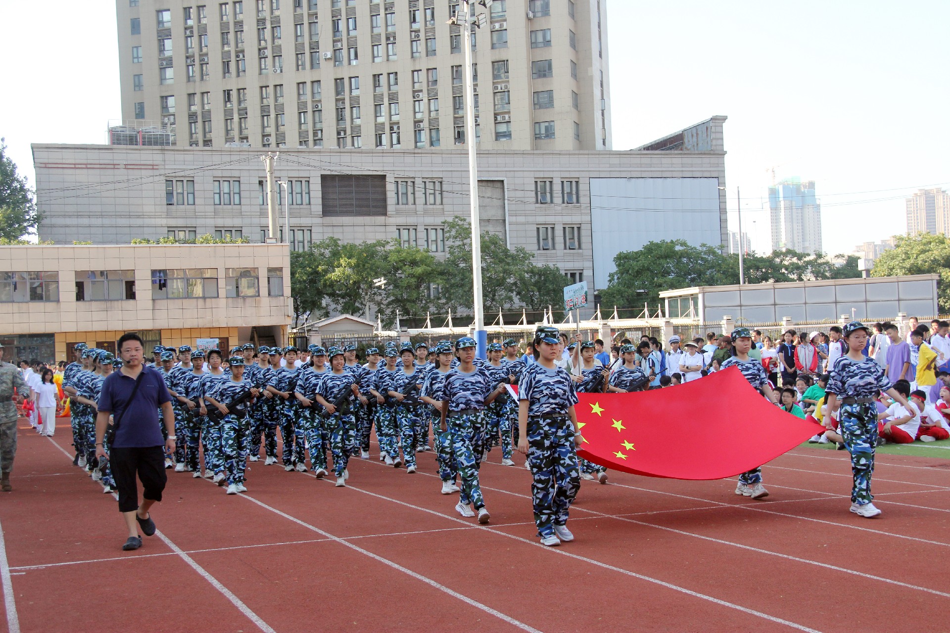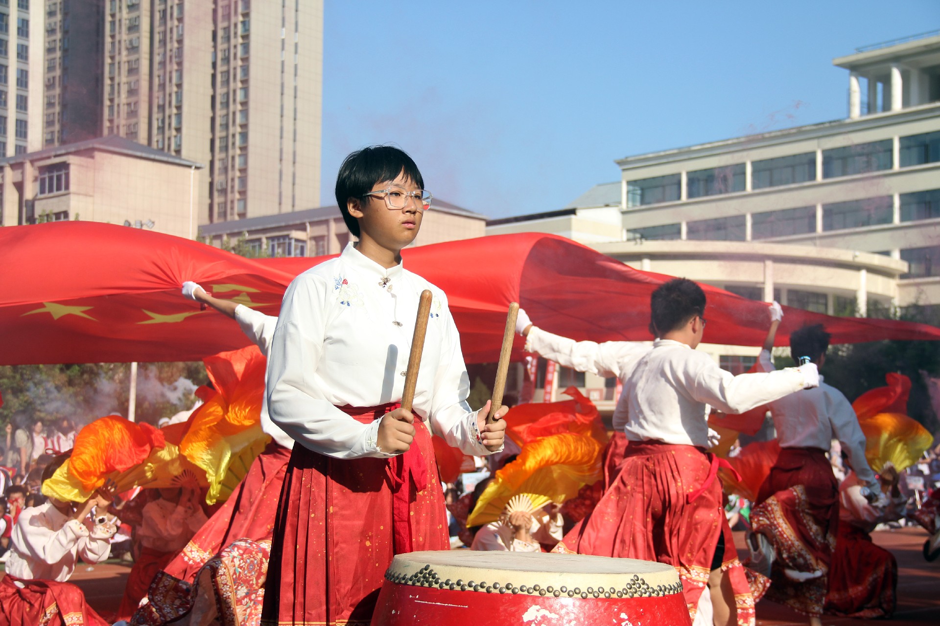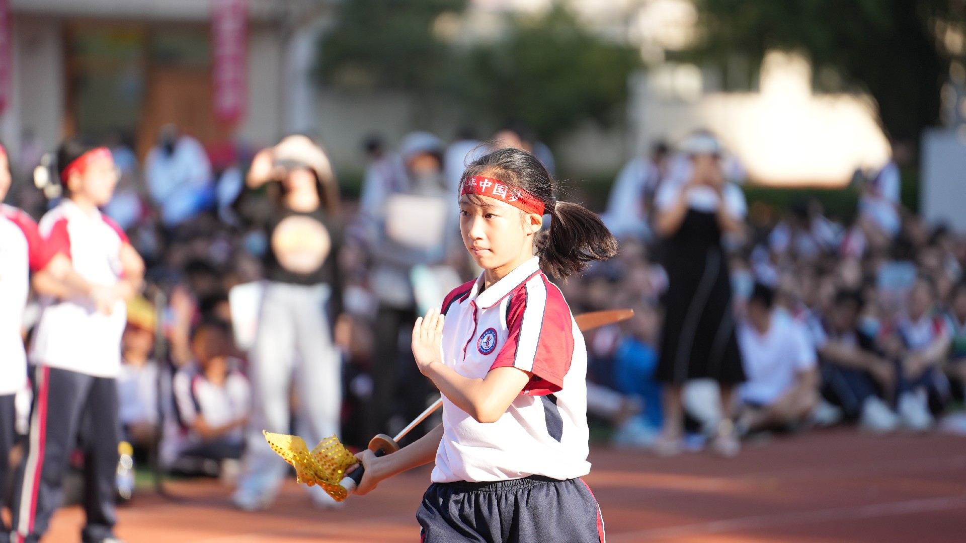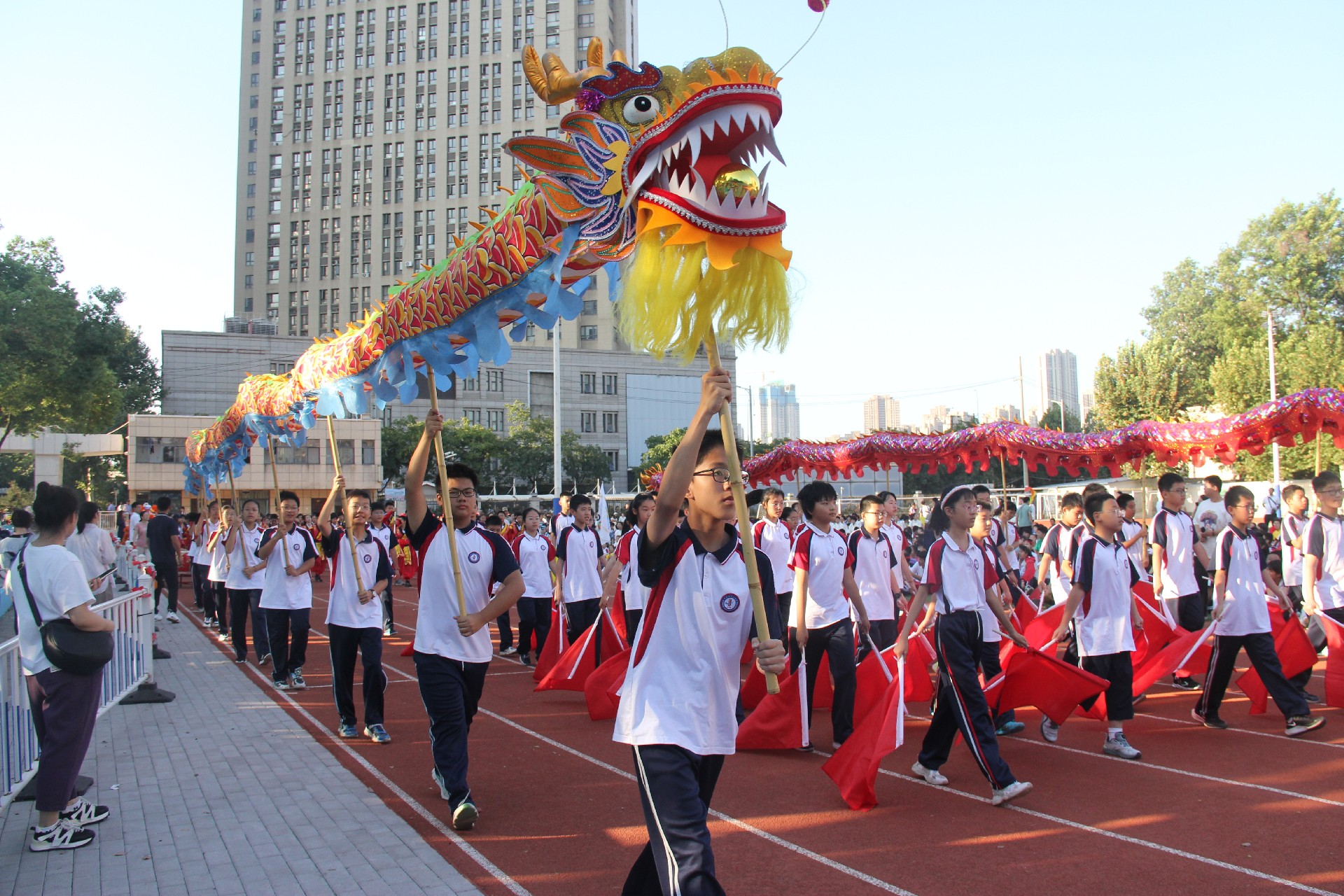 激扬奋进力量,书写伟大荣光。从巴黎奥运会到华一初田径赛场,中华体育精神和奥林匹克精神焕发新的光芒。同学们与时代同行、为祖国高歌,以运动之名,用精彩的表演展现了一个可亲、可敬、可爱的中国形象,祝福伟大的祖国生日快乐、繁荣昌盛。