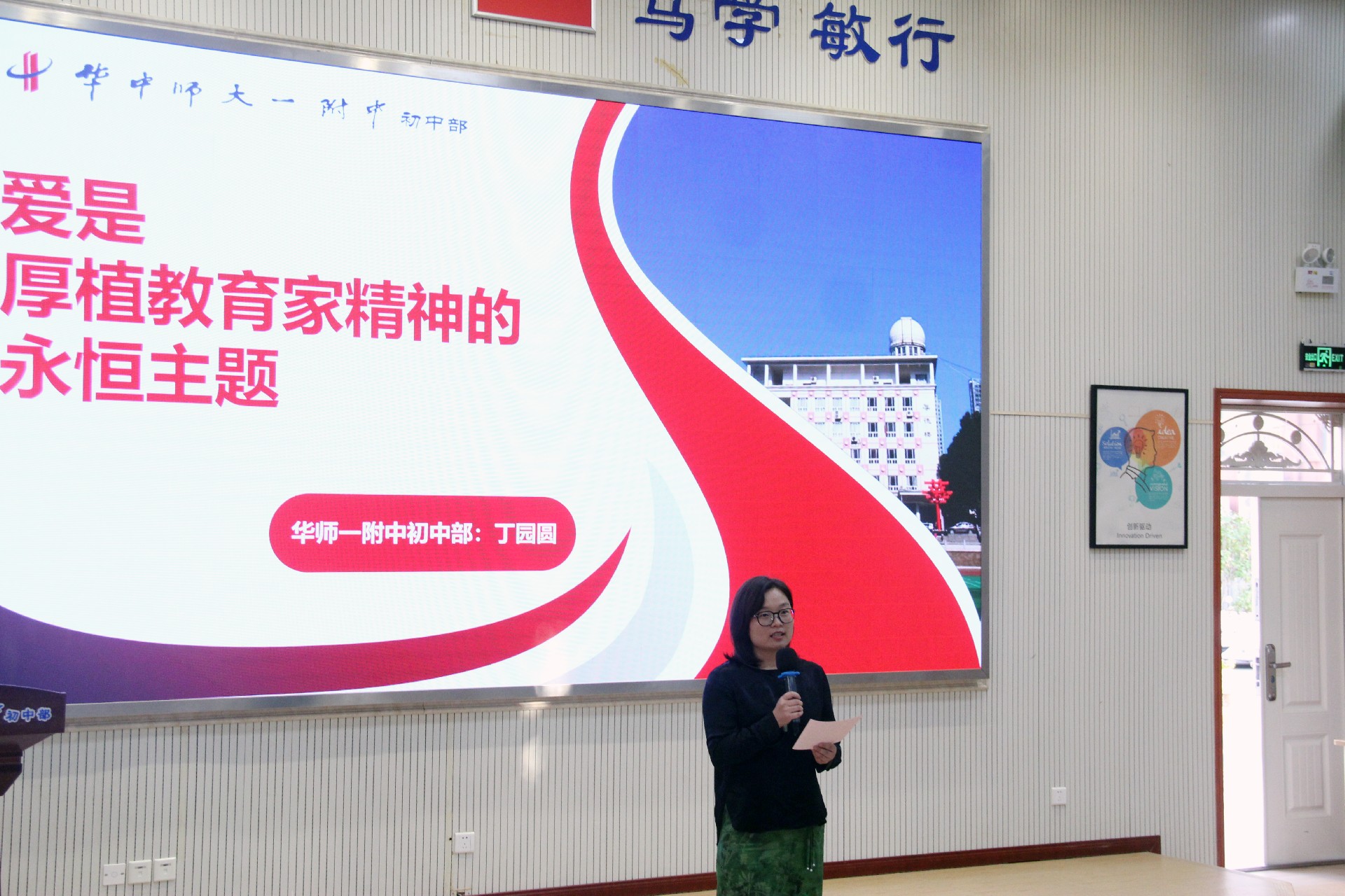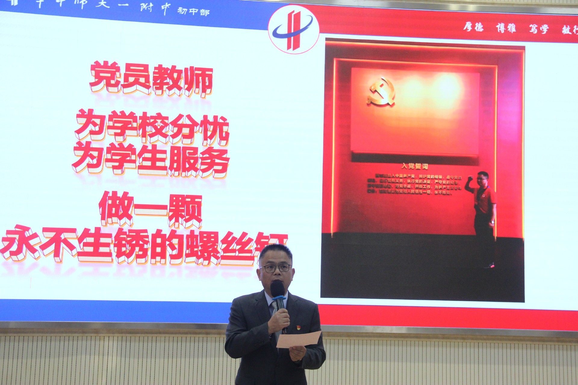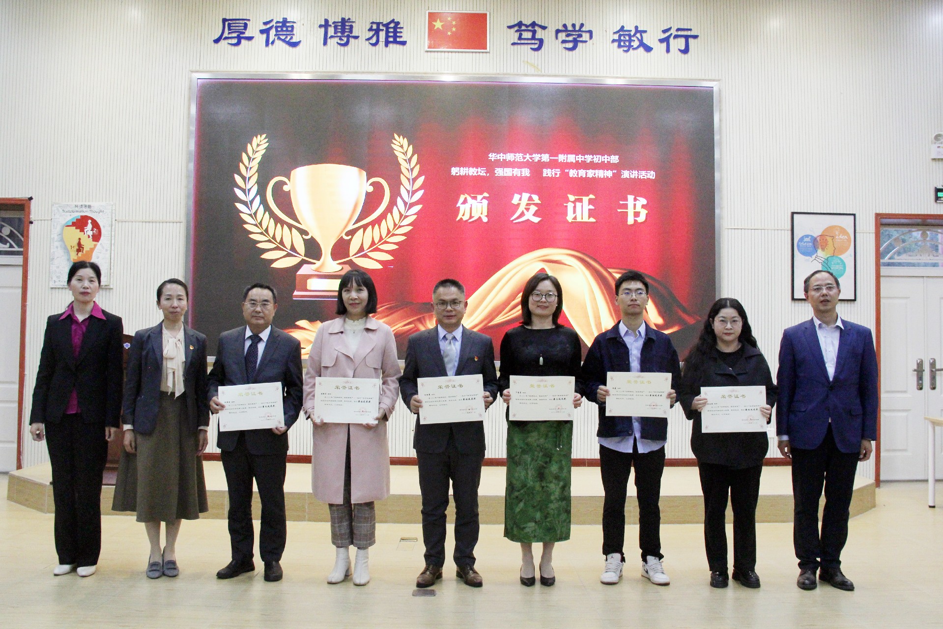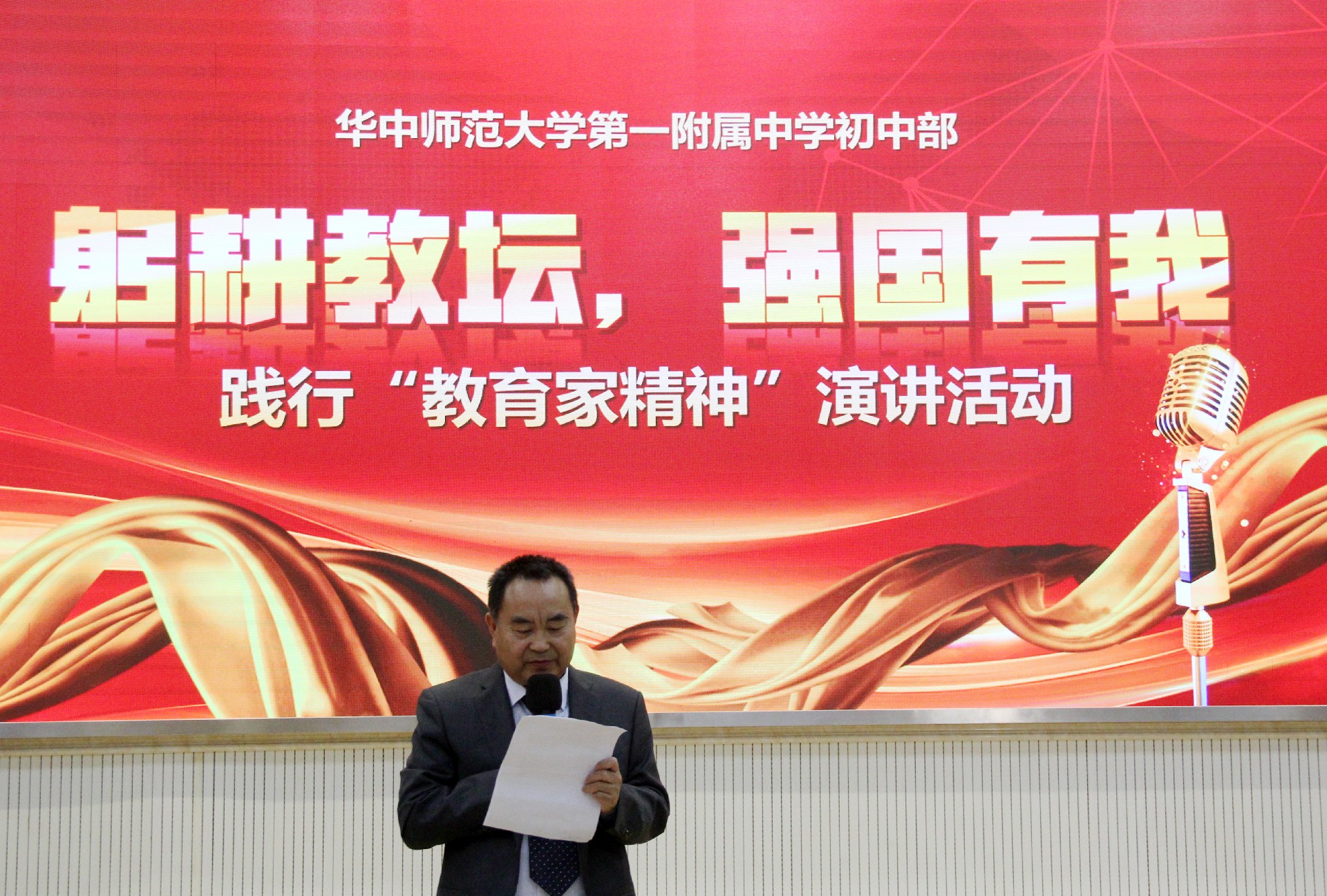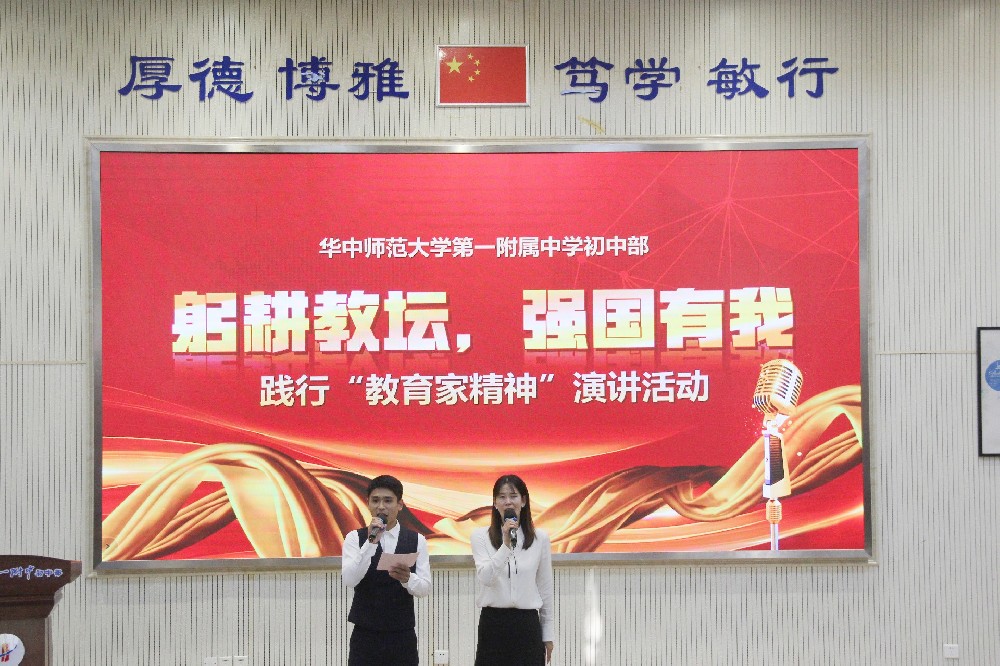 为大力弘扬教育家精神,讲好华一初教育故事,学校于11月7日下午在阶梯教室隆重举办践行“教育家精神”演讲活动。活动由余思龙、王丹丹老师主持,华师一附中党委副书记王晓莺、党办主任熊永华与初中部全体教职员工一同参加。