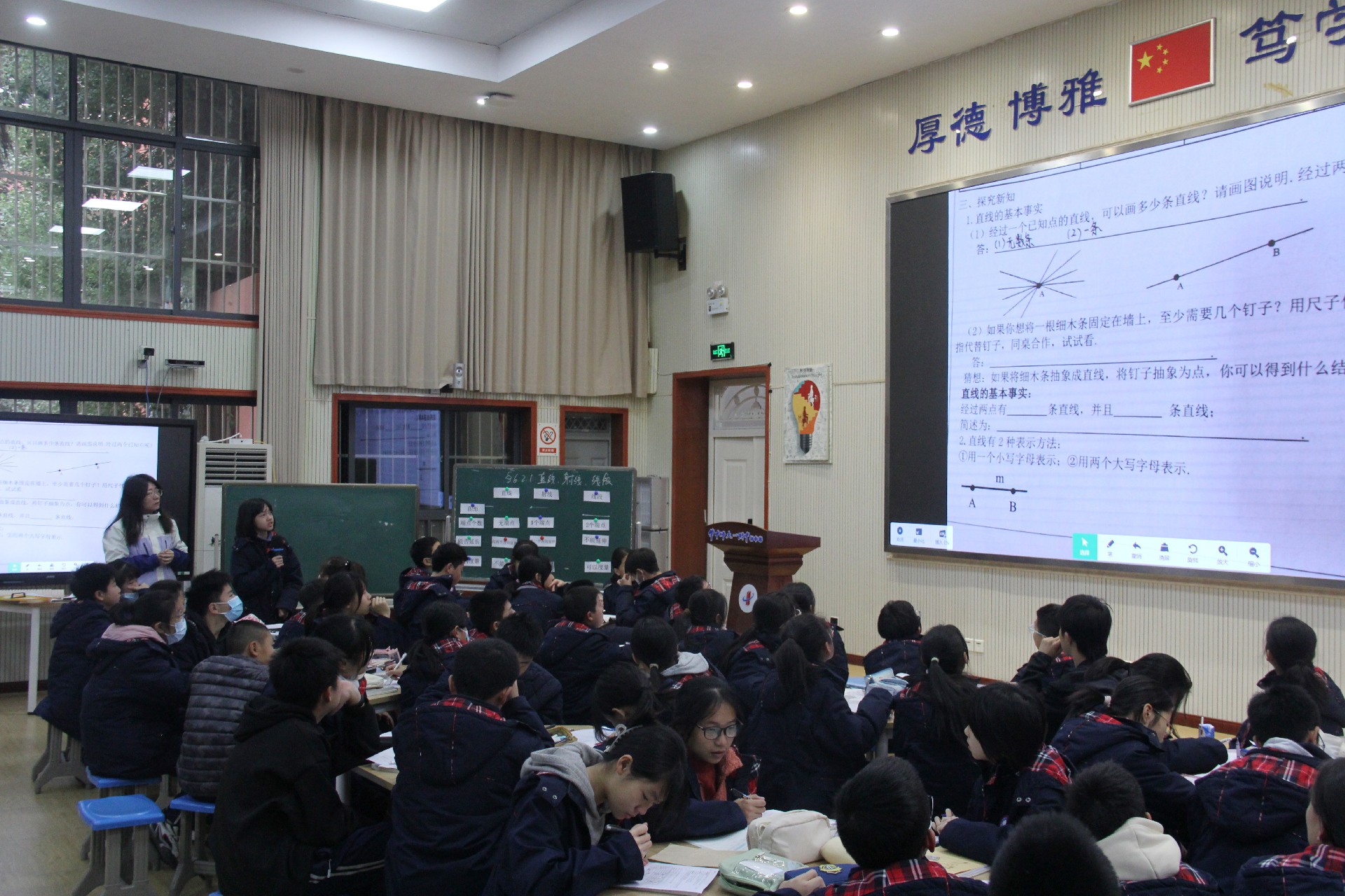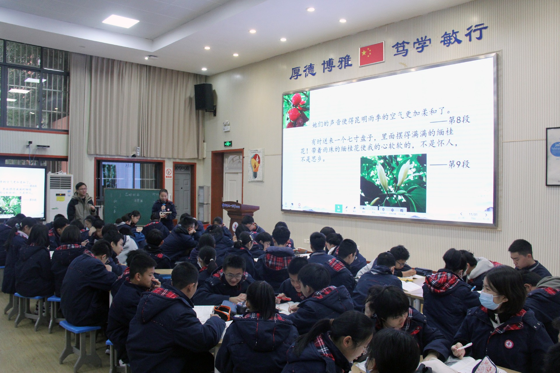上午第三节、第四节课时间,初中部骨干教师周靖、姚曼在学校阶梯教室分别带来一节语文、数学公开课。两位老师紧紧围绕“培养学生核心素养”这一核心,注重学生自主能力的激发,呈现了精彩务实高效的生本型课堂范式。