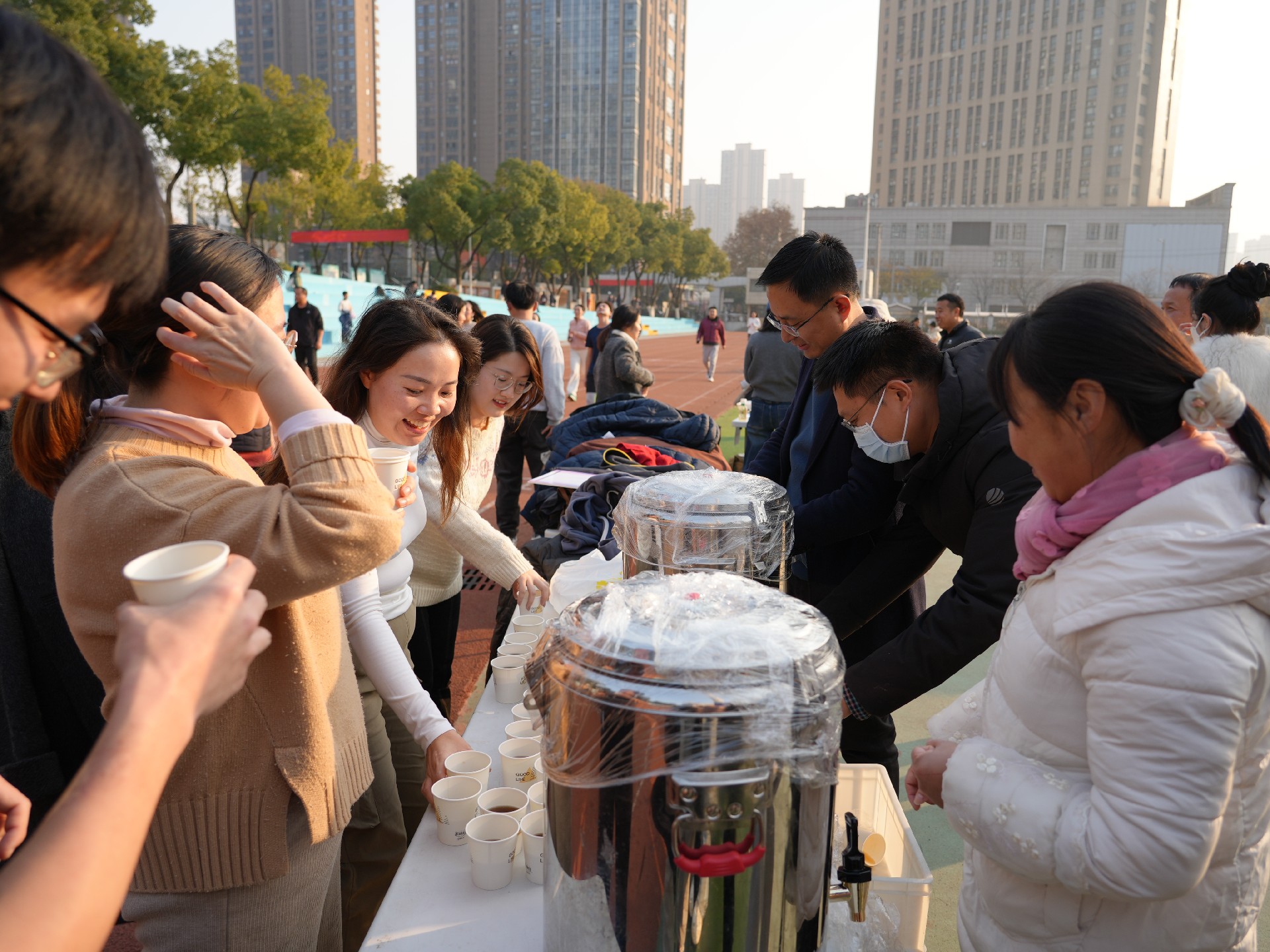 学校工会与后勤为教职工们准备了姜丝红糖水,在寒冷的冬天为老师们带来阵阵暖意。