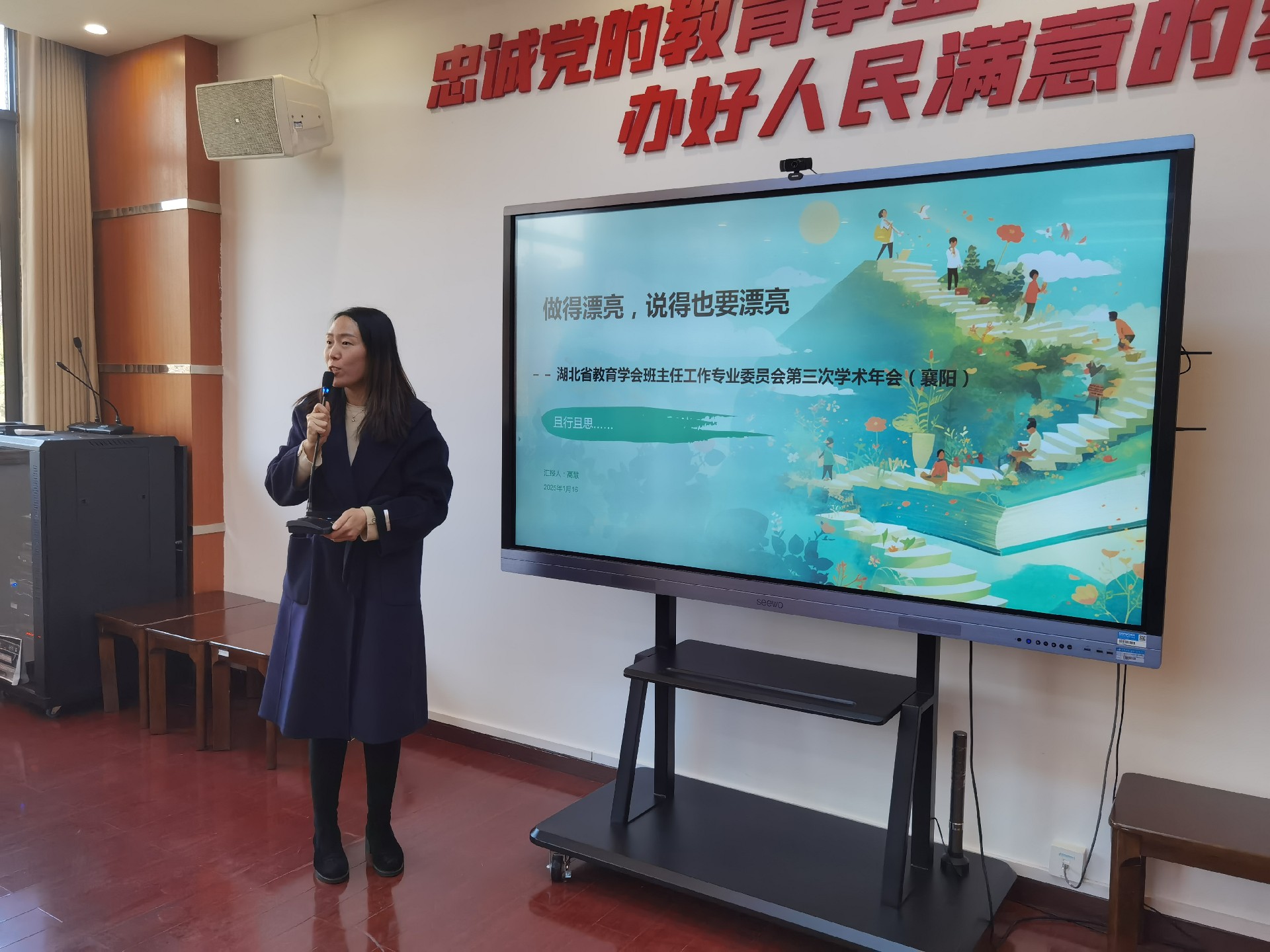高慧老师以《且行且思》为题,依托“湖北省教育学会班主任工作专业委员会第三次学术年会(襄阳)”参会心得,从“带班方略”、“育人故事”两方面进行了交流。高老师坚信,德育工作不是一时的热情,而是日复一日的坚持与努力,做的漂亮,说的也要漂亮,双轨并行:以行动铸就华章,以言辞绽放光彩。
