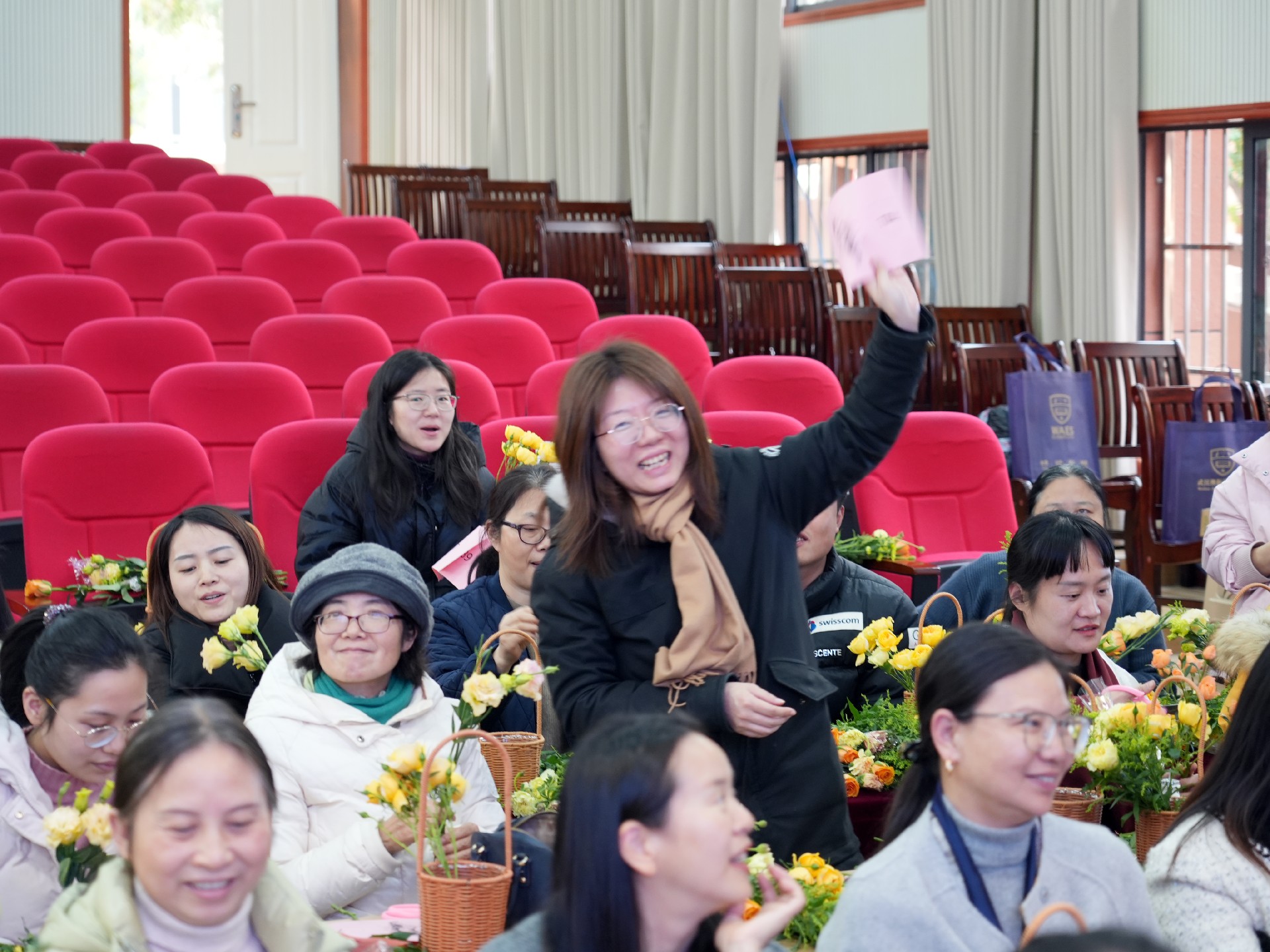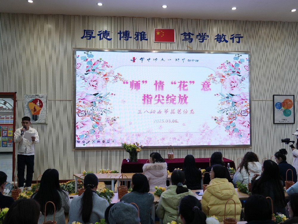 花开茶香春意浓,玉人含笑花枝动。为庆祝第115个国际妇女节,展现女性风采,提升教师间凝聚力,华师一附中初中部于3月6日开“师”情“花”意 • 指 尖 绽 放,花艺文化沙龙活动,活动由余思龙老师主持。