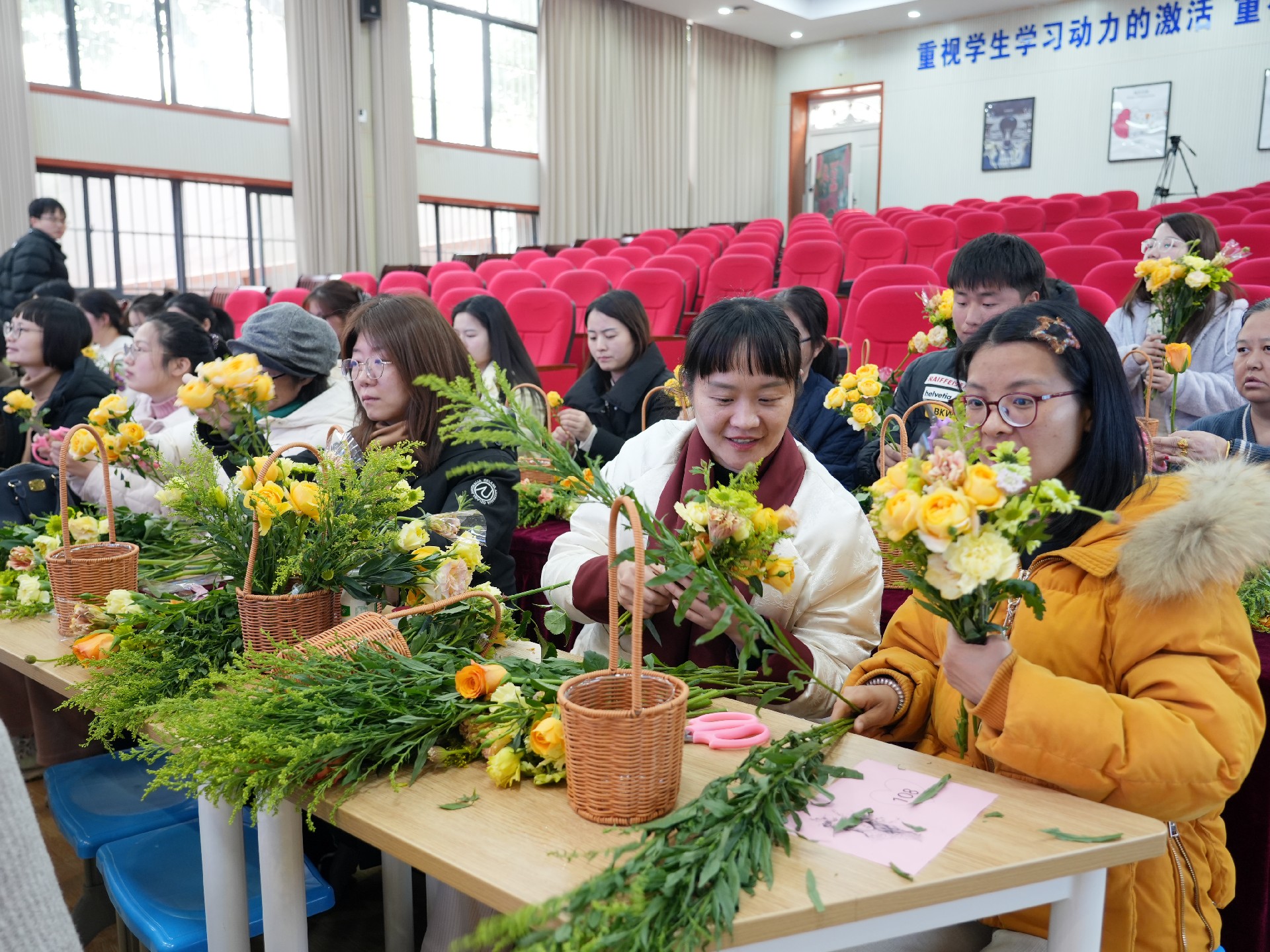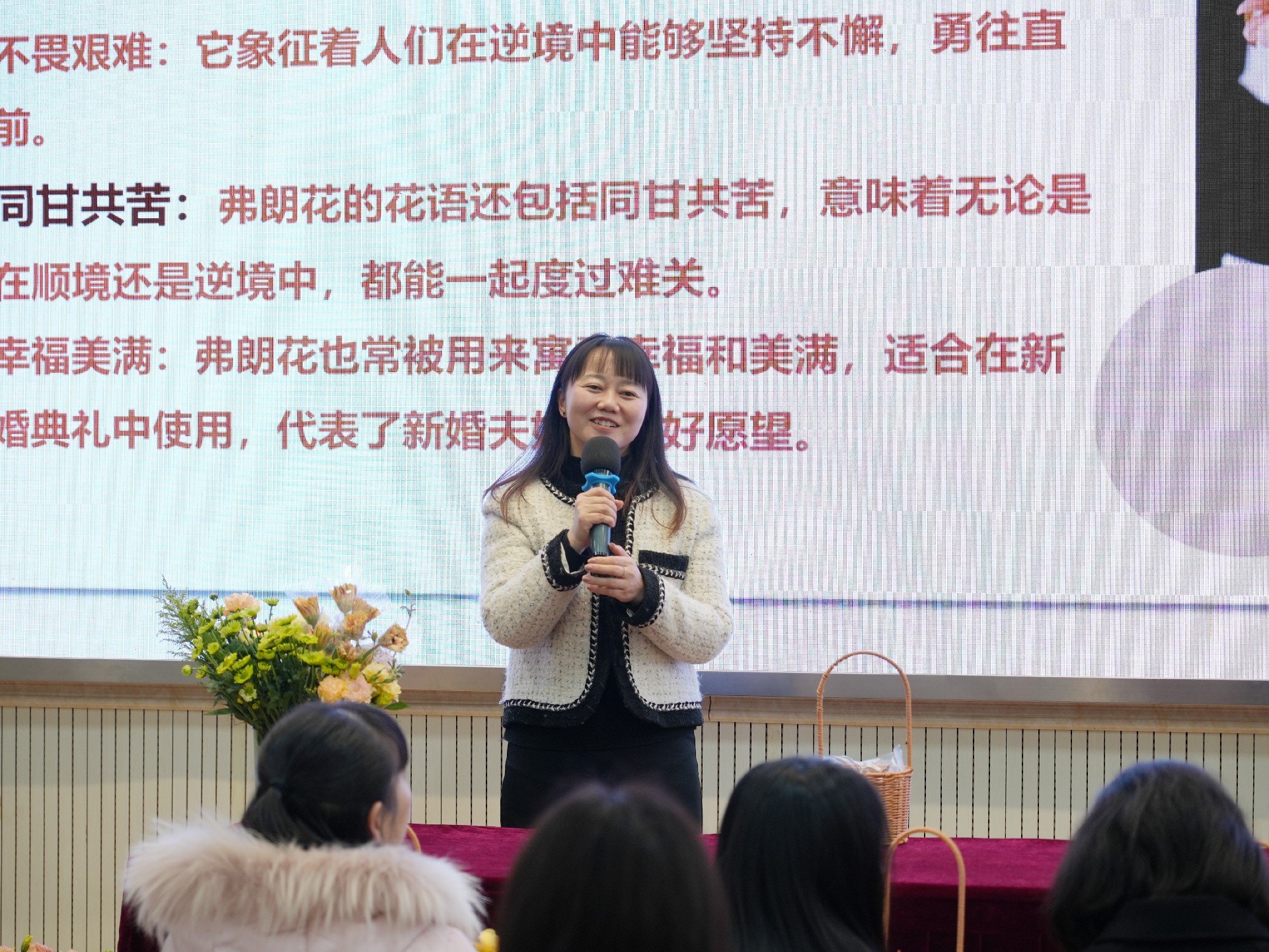 活动当天,现场布置温馨雅致,花香四溢。