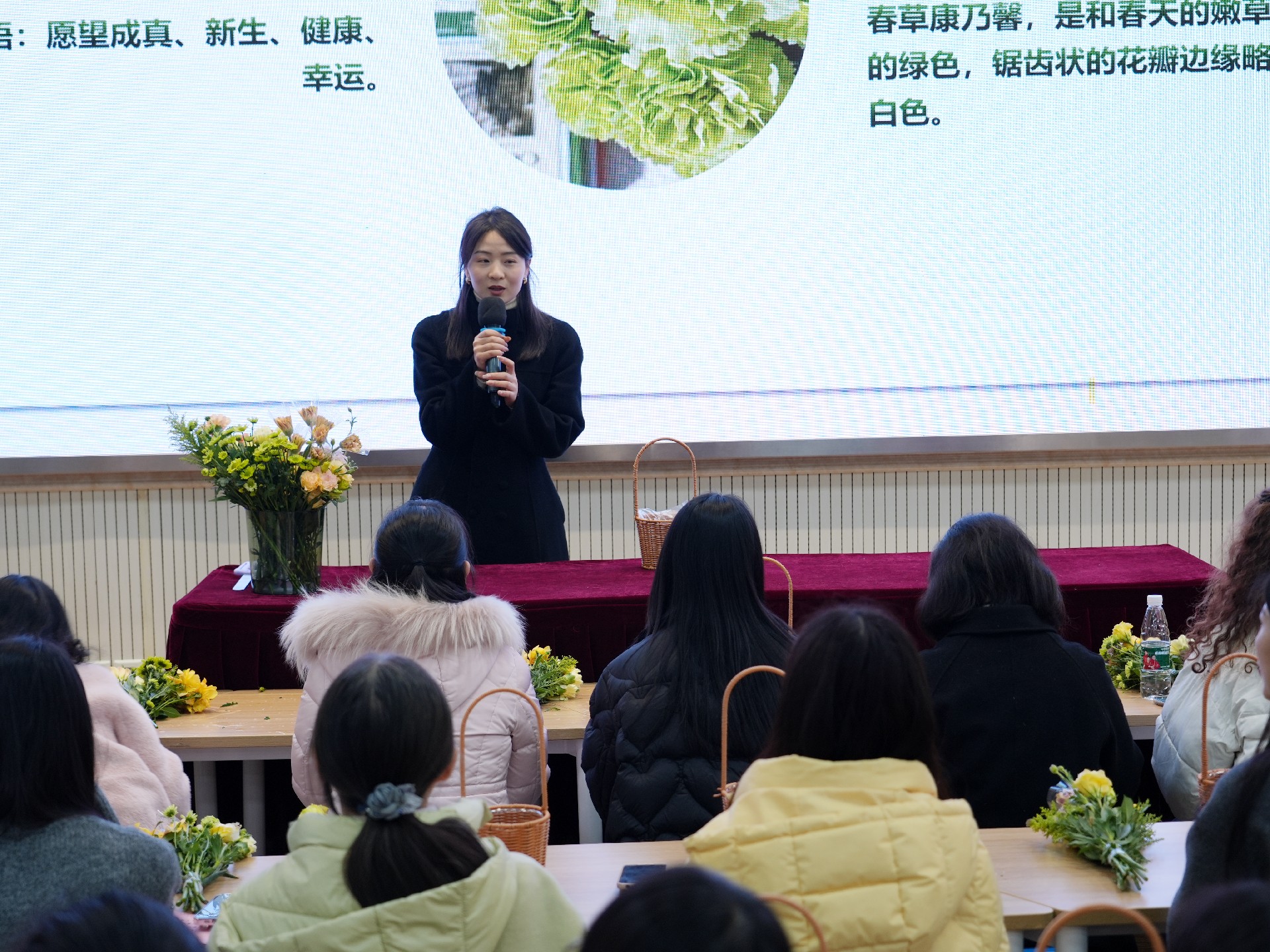 紧接着,专业花艺师为大家详细讲解了插花艺术的历史、花材选择及搭配技巧,带领老师们走进花艺的奇妙世界。