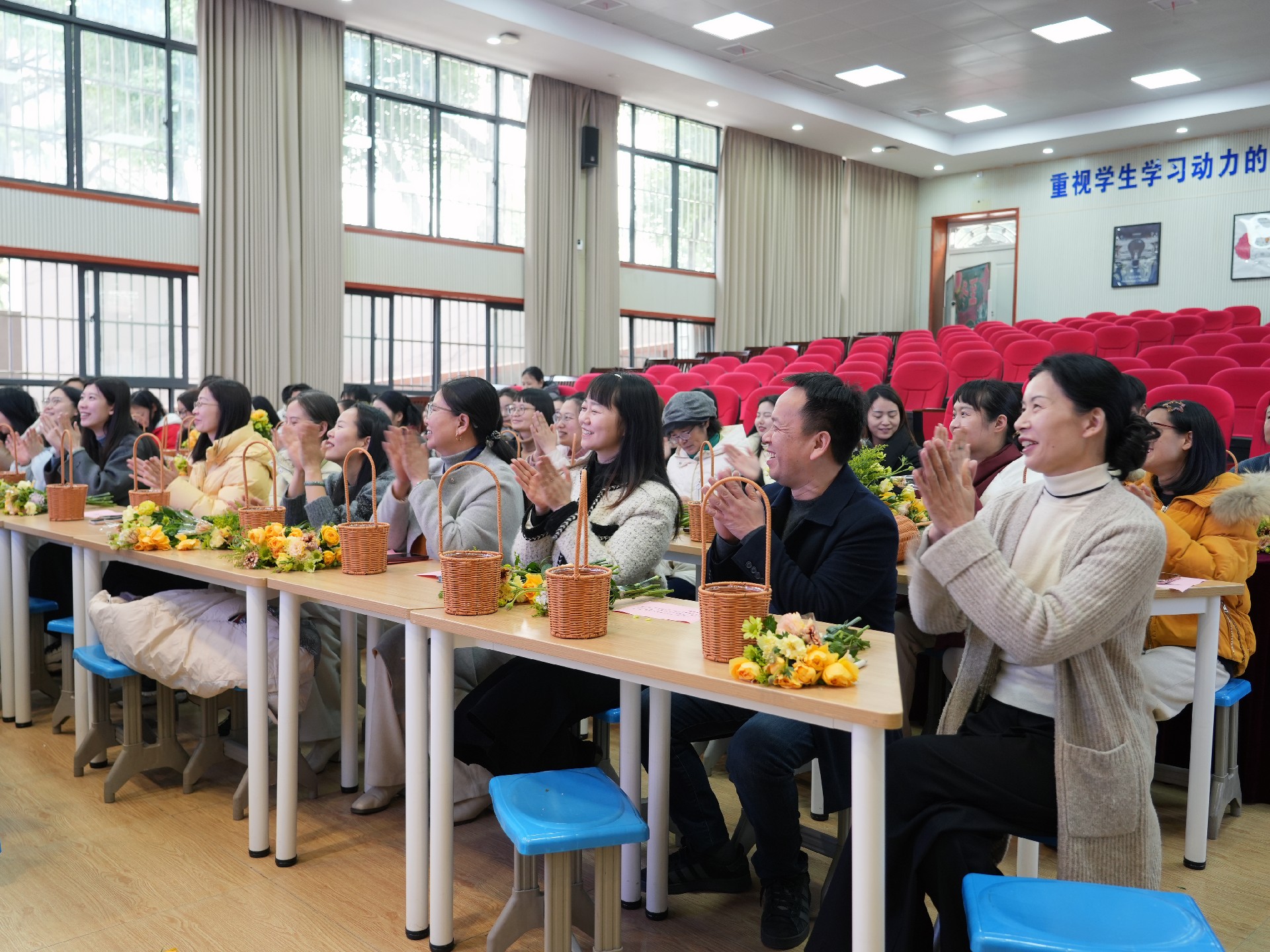 活动伊始,江兴隆校长与李先艳书记向长期以来辛勤工作的女教师们致以诚挚的节日问候。
