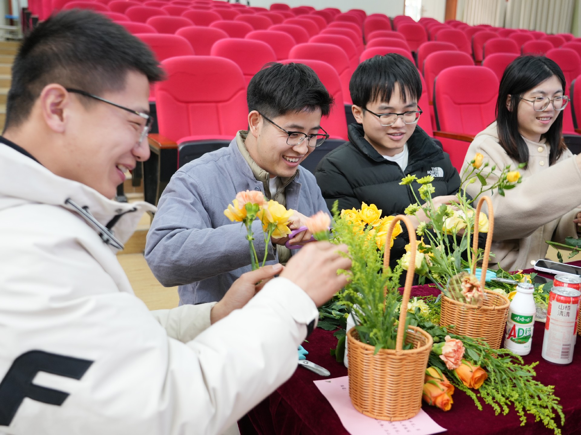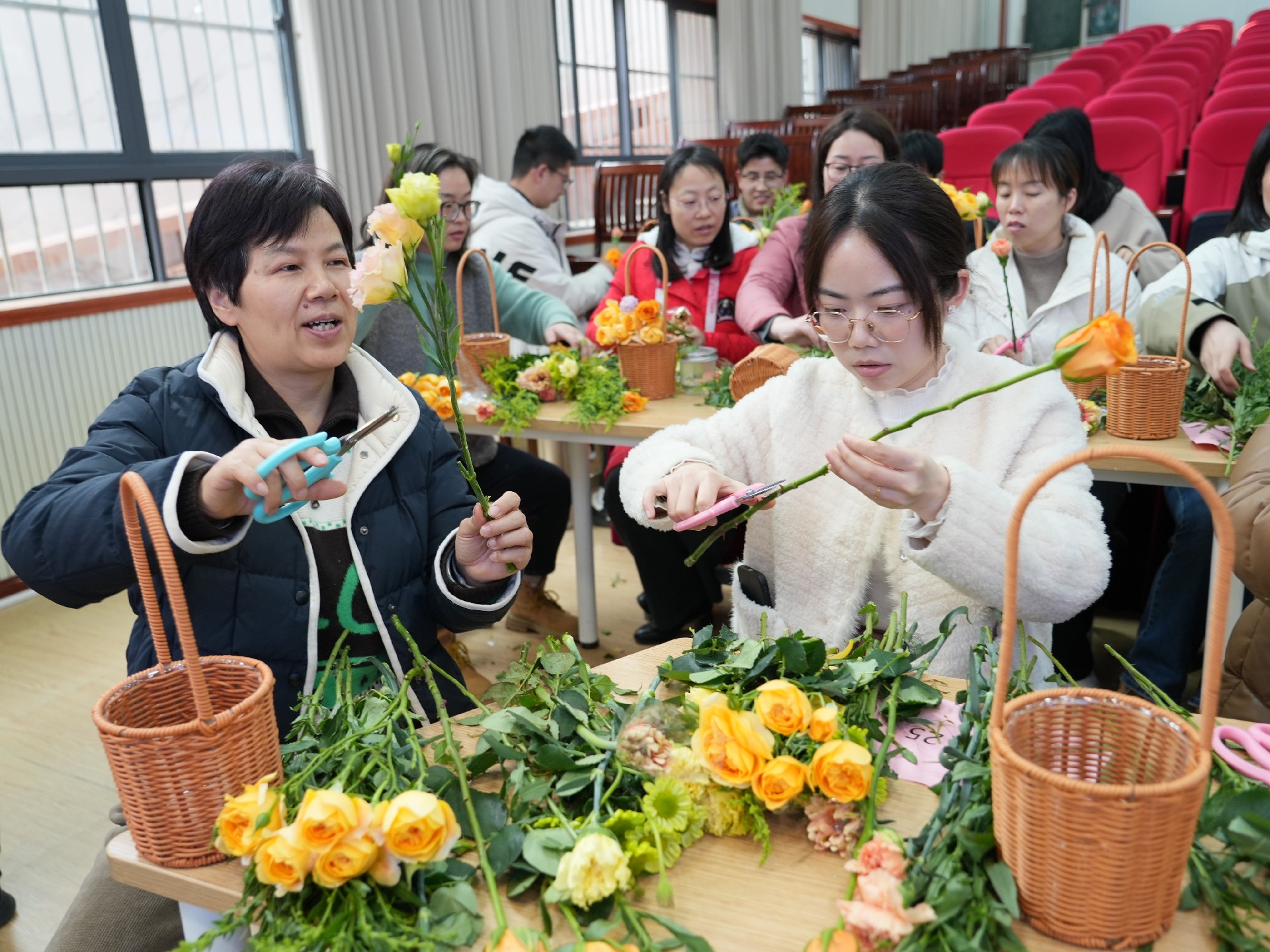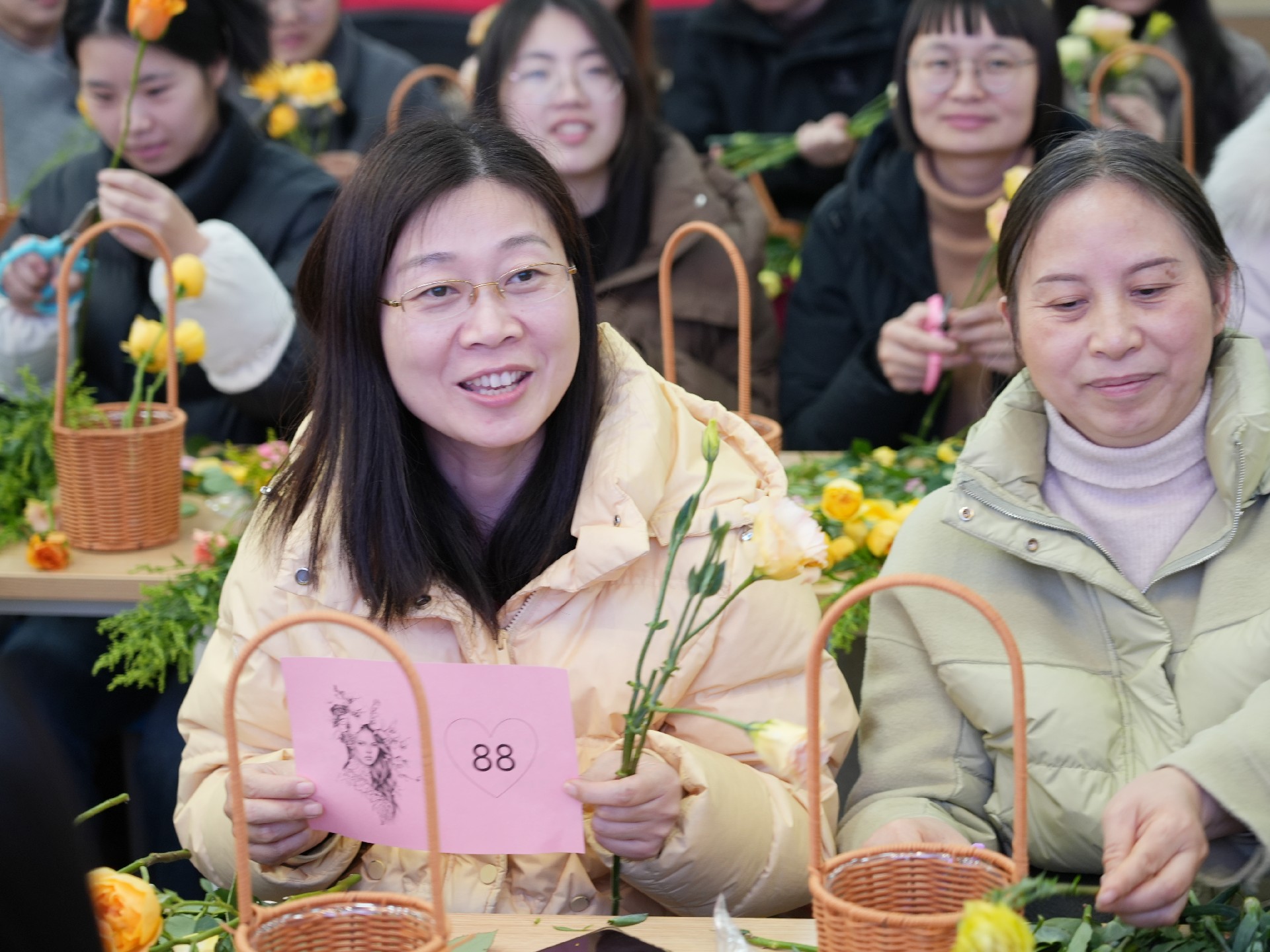 在插花创作环节,大家纷纷挑选自己喜爱的花材与配件,动手制作个人插花作品。花艺师在一旁精心指导,帮助大家完成一个个精美的插花作品。现场气氛轻松愉悦,欢声笑语不断。