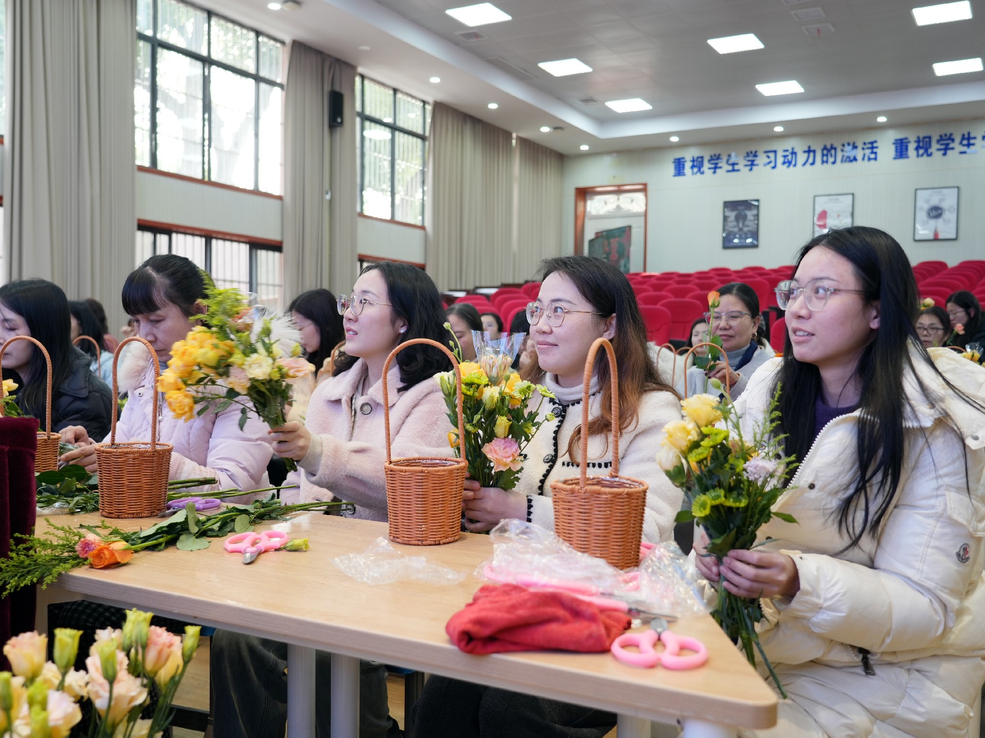 此次花艺沙龙不仅提升了女性的艺术修养,更促进了我校教职工之间的情感交流。通过花艺创作与分享,大家深刻感受到艺术的魅力,增进了彼此间的联系与团结。活动的成功举办,让每一位女性在这个特殊的节日里,充分感受到学校大家庭的温暖与关怀。