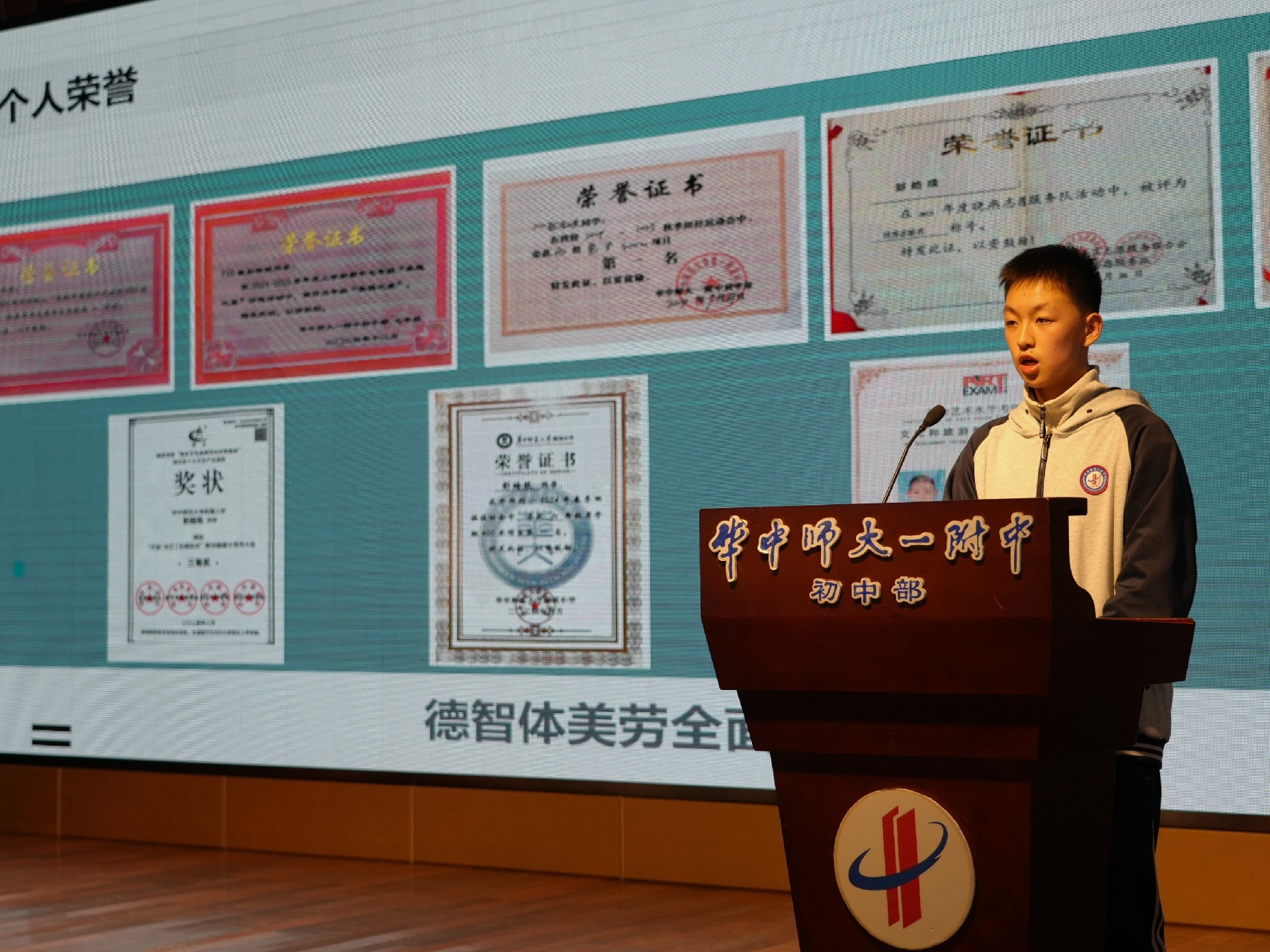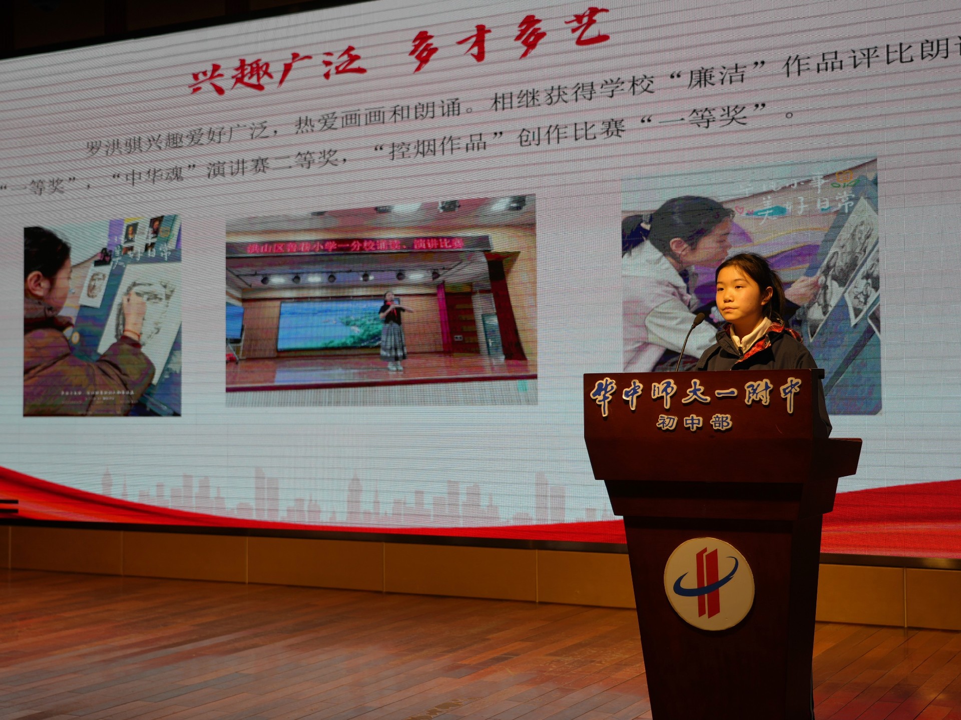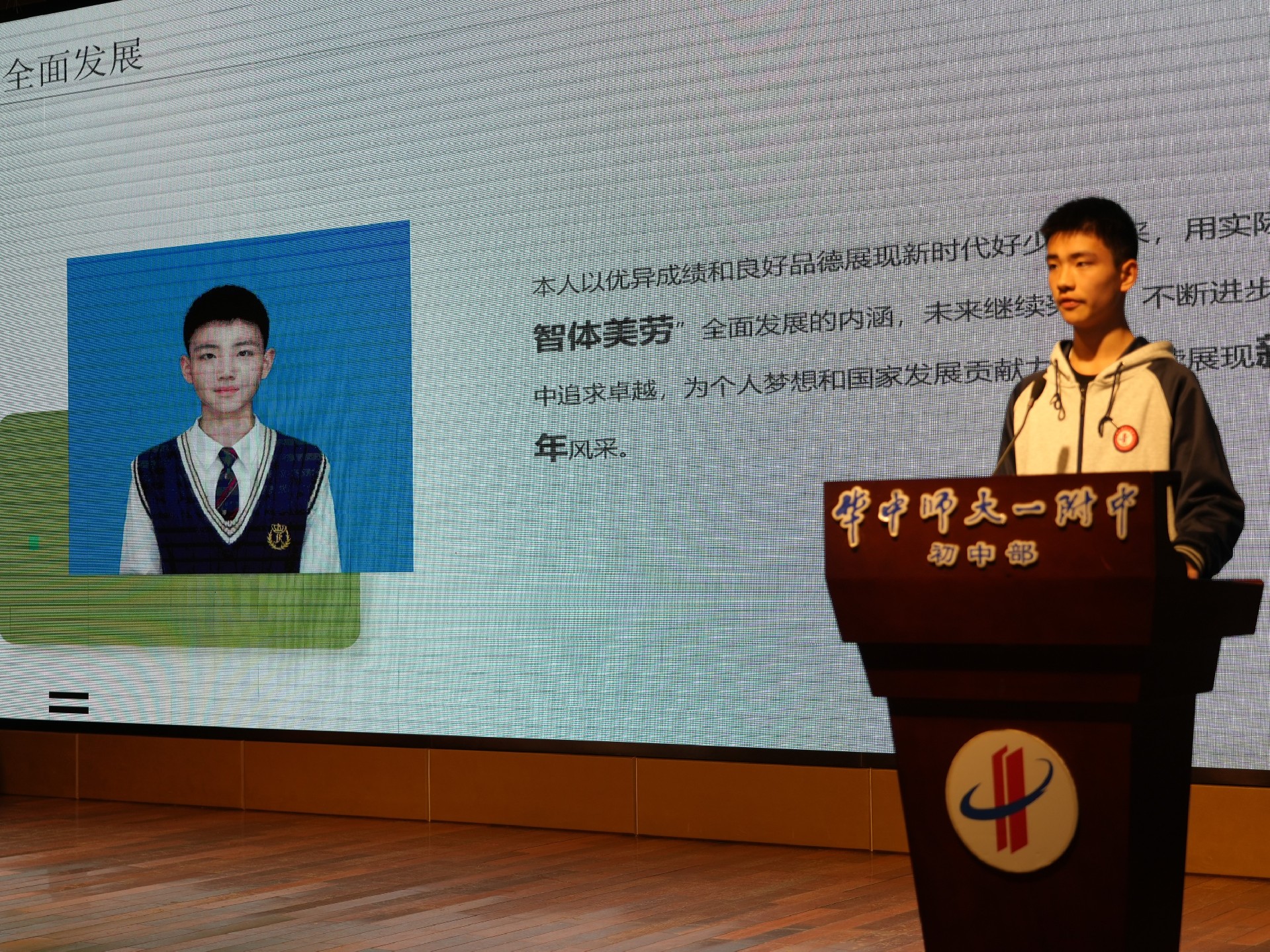 接下来进行的是新时代好少年评选环节。经过班级推荐、年级评选、学校审核等环节,脱颖而出,在现场展示风采。他们中有的热心公益9余载、有的专研科技、有的勤奋学习成绩优异,有的乐于助人、有的多才多艺、全面发展……他们用行动诠释着新时代好少年的责任与担当,展现了华一学子积极向上的精神风貌。