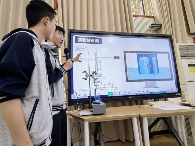 测定pH环节,学生们积极主动、大胆尝试,分别pH试纸和pH计测定溶液pH,绘制pH变化曲线图。