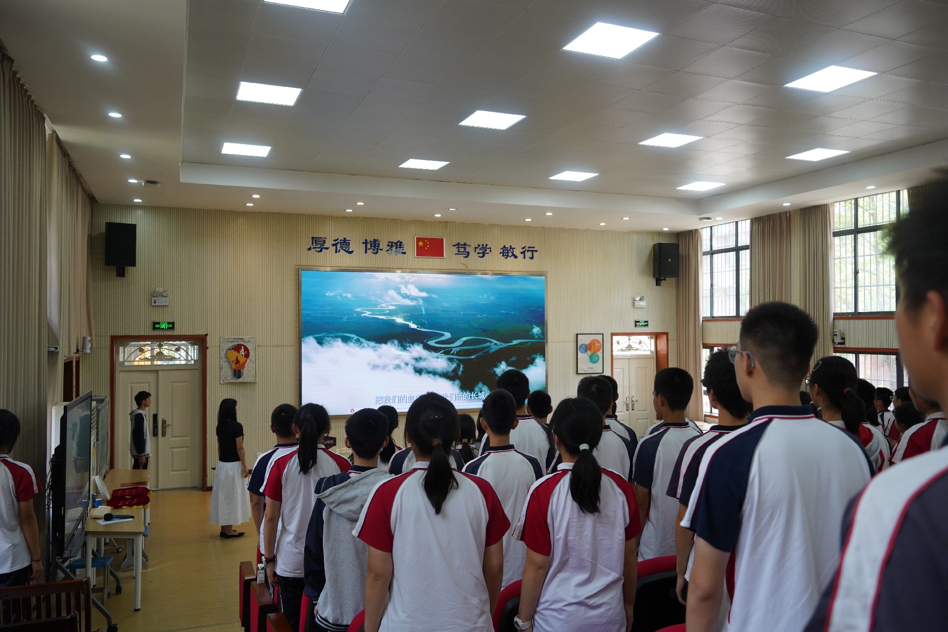 入团仪式在雄伟激昂的国歌声中正式拉开帷幕,全体人员庄严肃立,爱国之情在心中升腾。