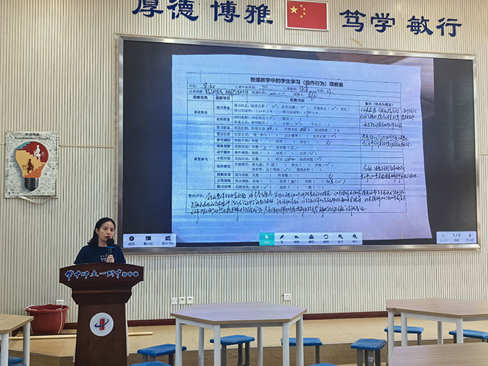 随后的研讨环节,由物理教研组长黄盈老师带领的团队如同精密的“测量仪器”,从课堂观察的多个“维度”,对跨学科实践课进行了细致的“数据采集”与“分析论证”。他们探讨课堂中师生互动的“摩擦力”是否适中,学生思维的“动能”是否充足,跨学科知识融合的“合力”是否指向核心素养的提升,每一次发言都是对教学“实验”的优化建议。