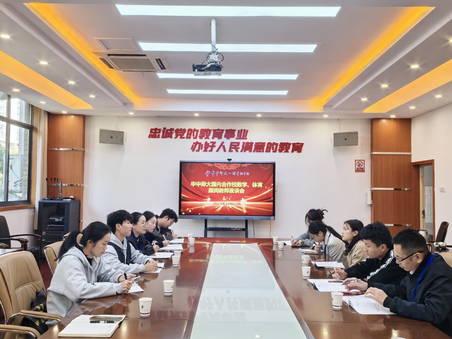 10月22日上午,来自长寿学校、琼中中学、苏州附校、东莞东城、龙园附校、宝安附校、临空港实验学校的10位老师前往华师一附中初中部开展2025年华中师范大学基础教育合办学校初中段数学、体育跟岗培训研修班,通过深入参与课堂教学、班级管理、教研开展的方式,与我校师生共同度为期一周的研修时光。