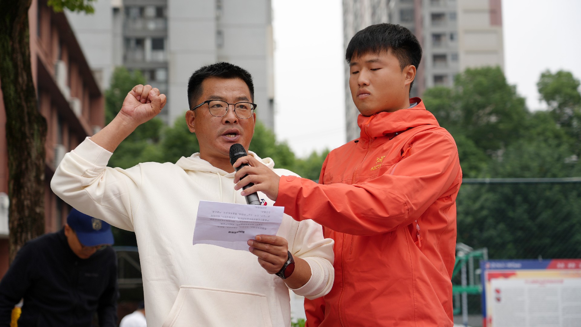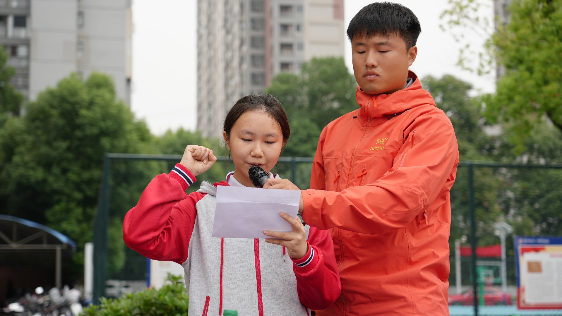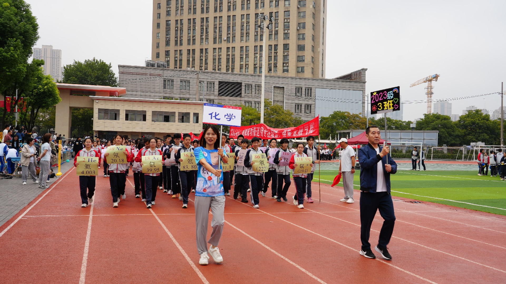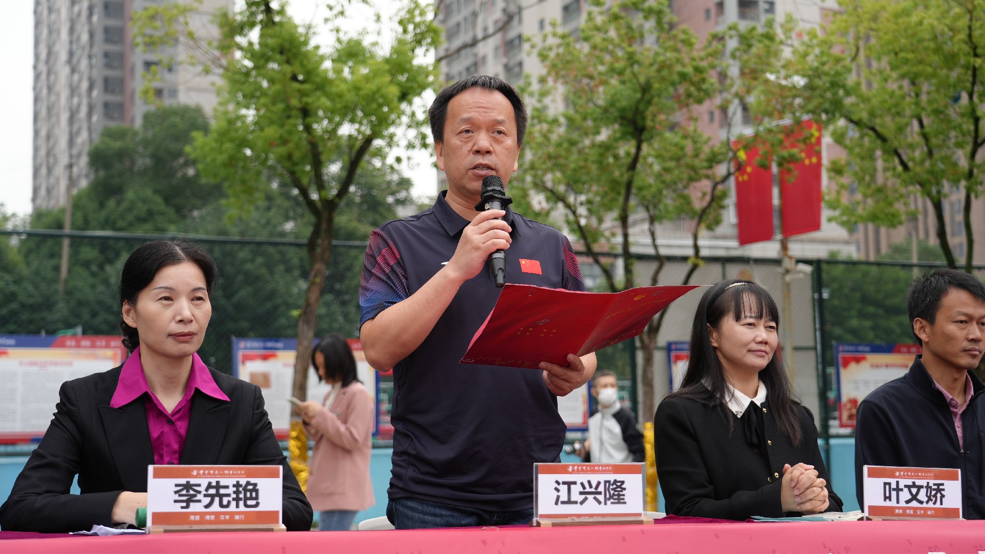 运动员代表811班赵王睿璿、裁判员代表田军海老师庄严宣誓。在全体师生的热切期待中,总裁判长方正郑重宣布:“华师一附中初中部2025年秋季田径运动会,正式开始!”