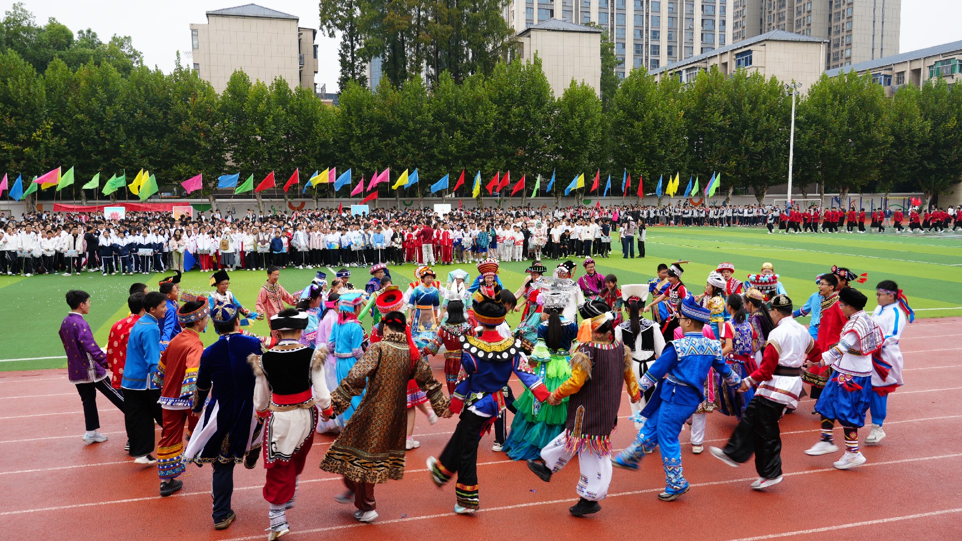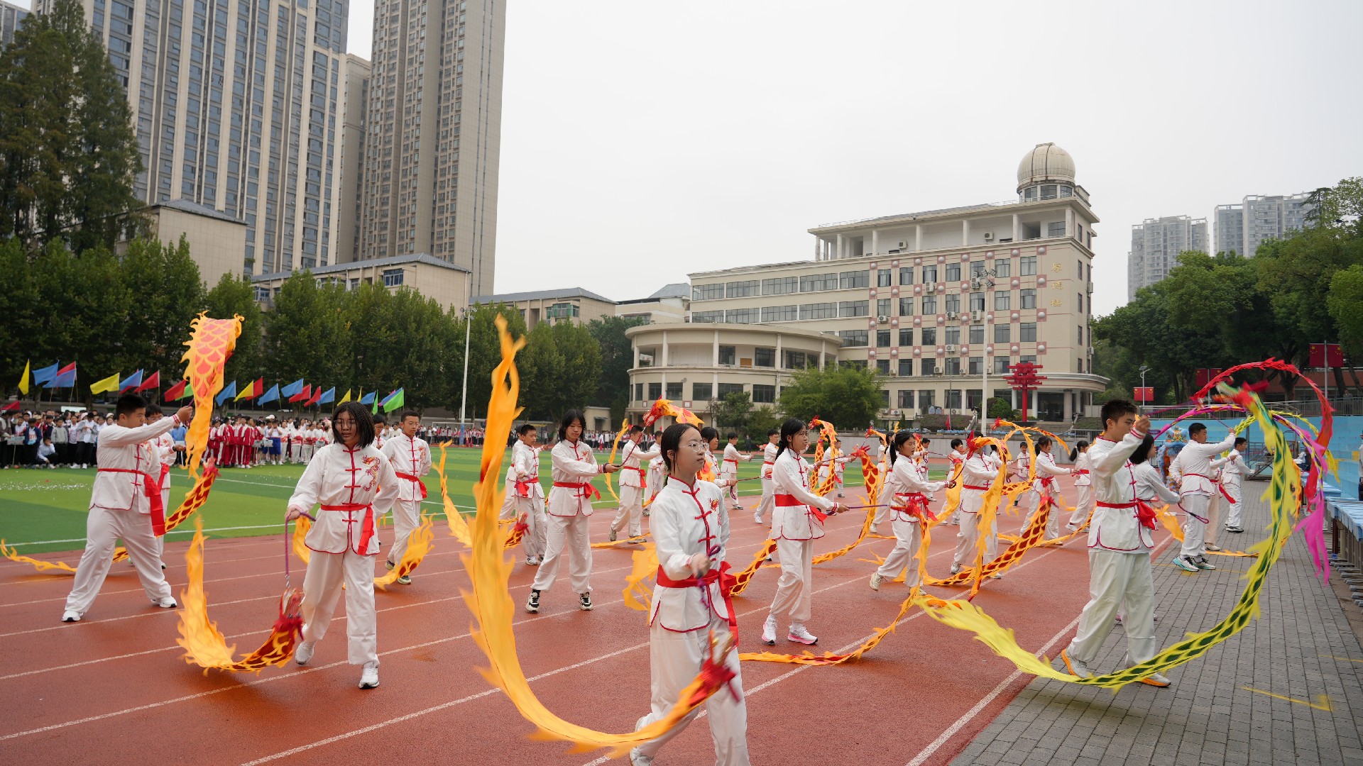 金秋赛场,华彩绽放!10月16日,华师一附中初中部2025年秋季田径运动会盛大开幕。全校师生以创意为笔、以热忱为墨,共同绘就了一幅融合校园活力与家国情怀、文化传承与科技创新的动人画卷,每一帧都是青春的最美模样。