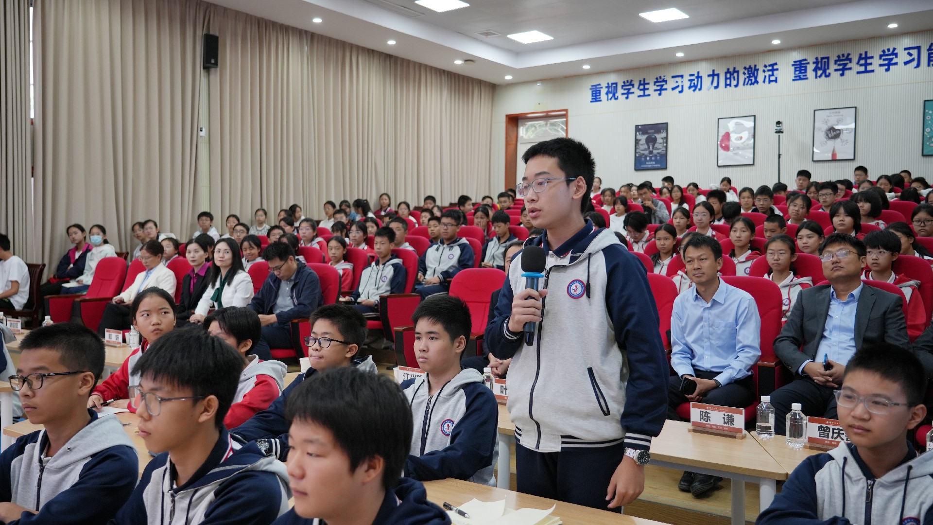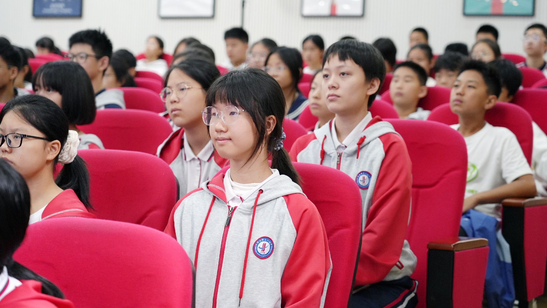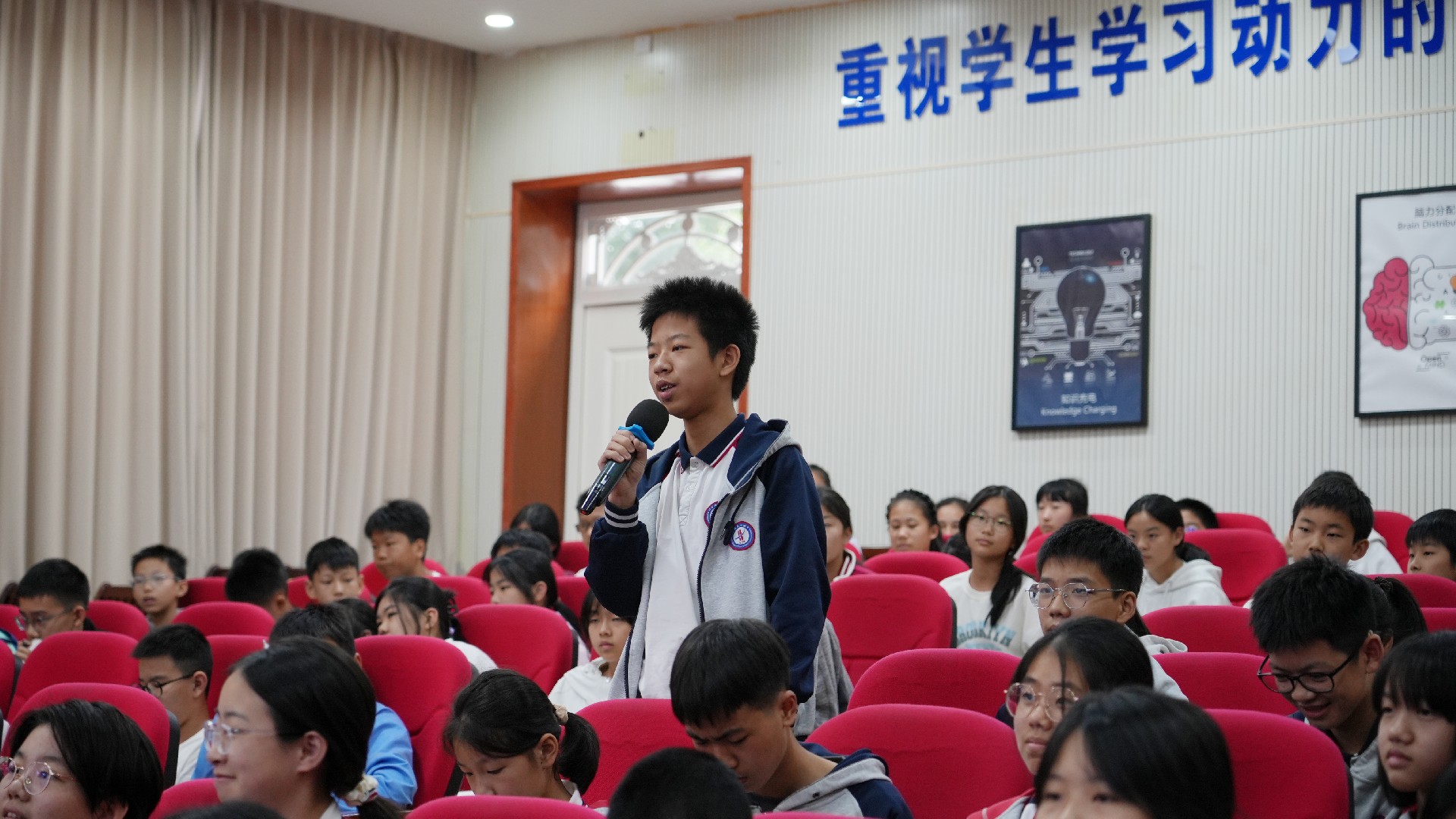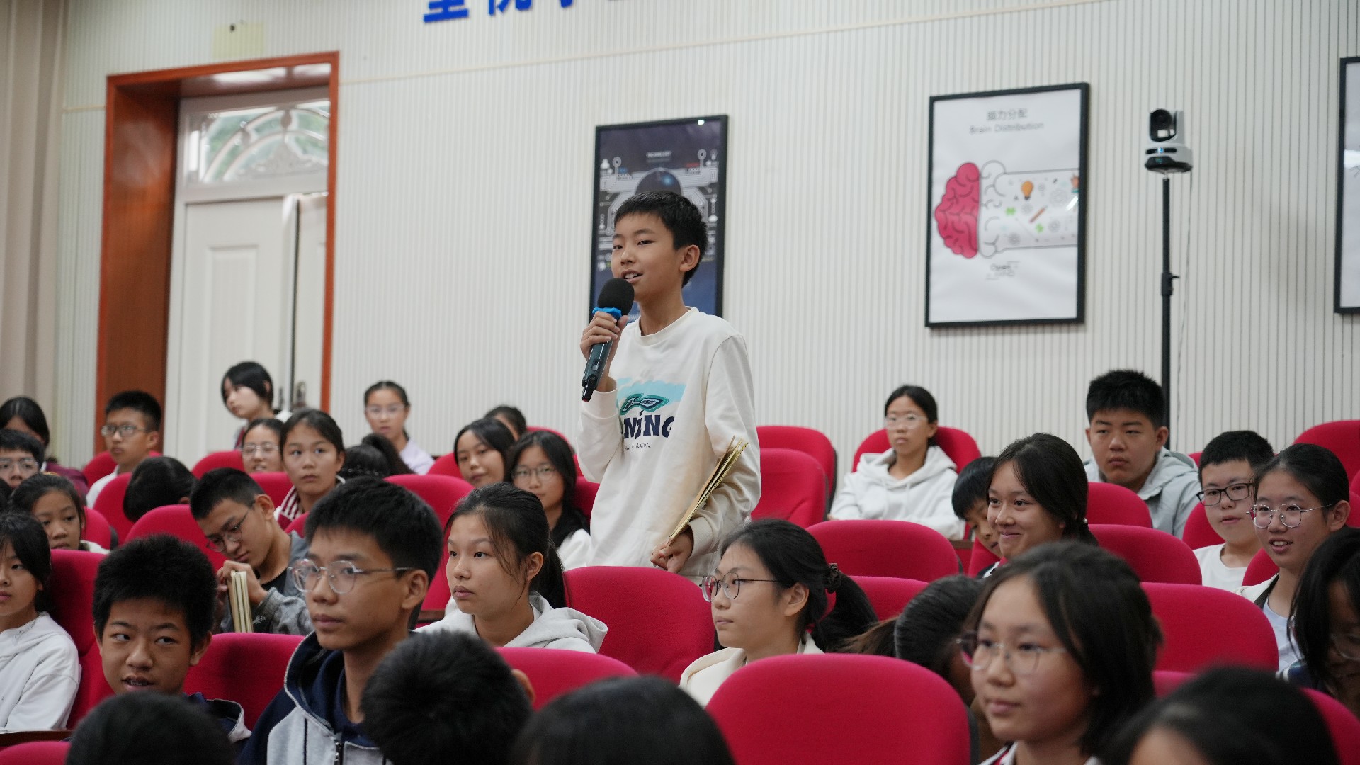 “桂院士,是什么契机让您下定决心把鱼类研究当终身事业?”“实验失败时,您怎么调整心态?”“您是怎么平衡科研与语文、英语学习的?”……在互动环节,同学们纷纷举手,将心中对科学的好奇与对成长的困惑倾诉而出。