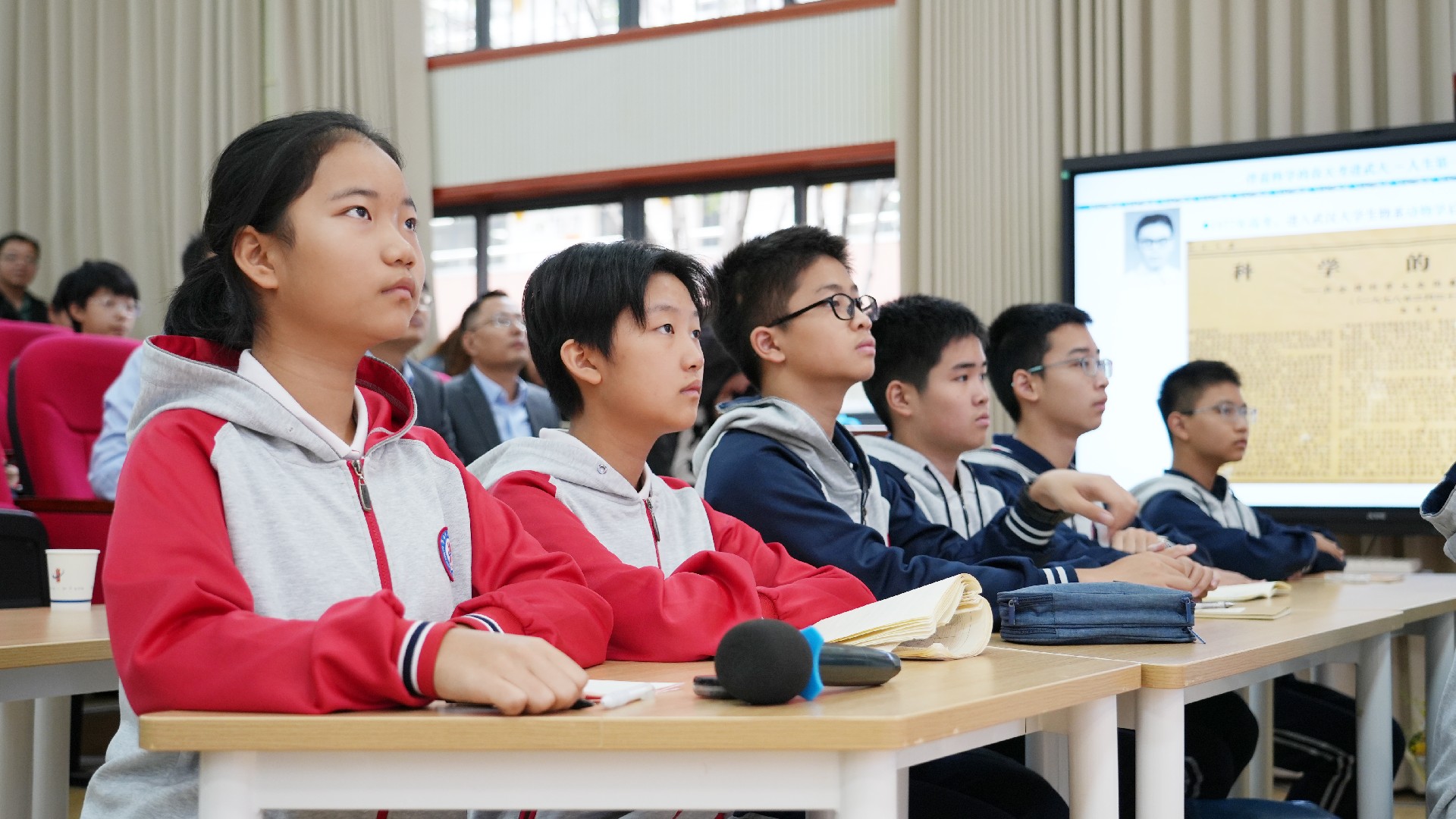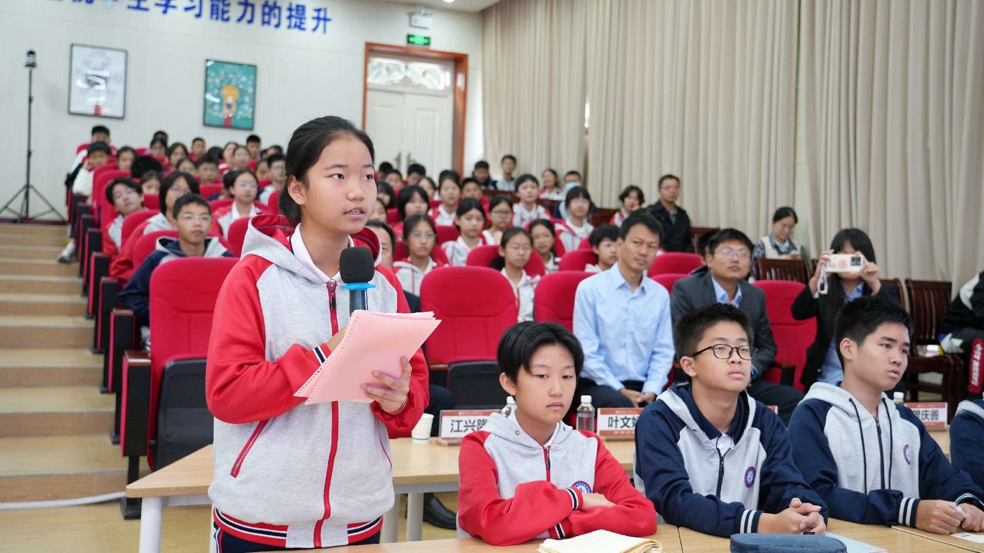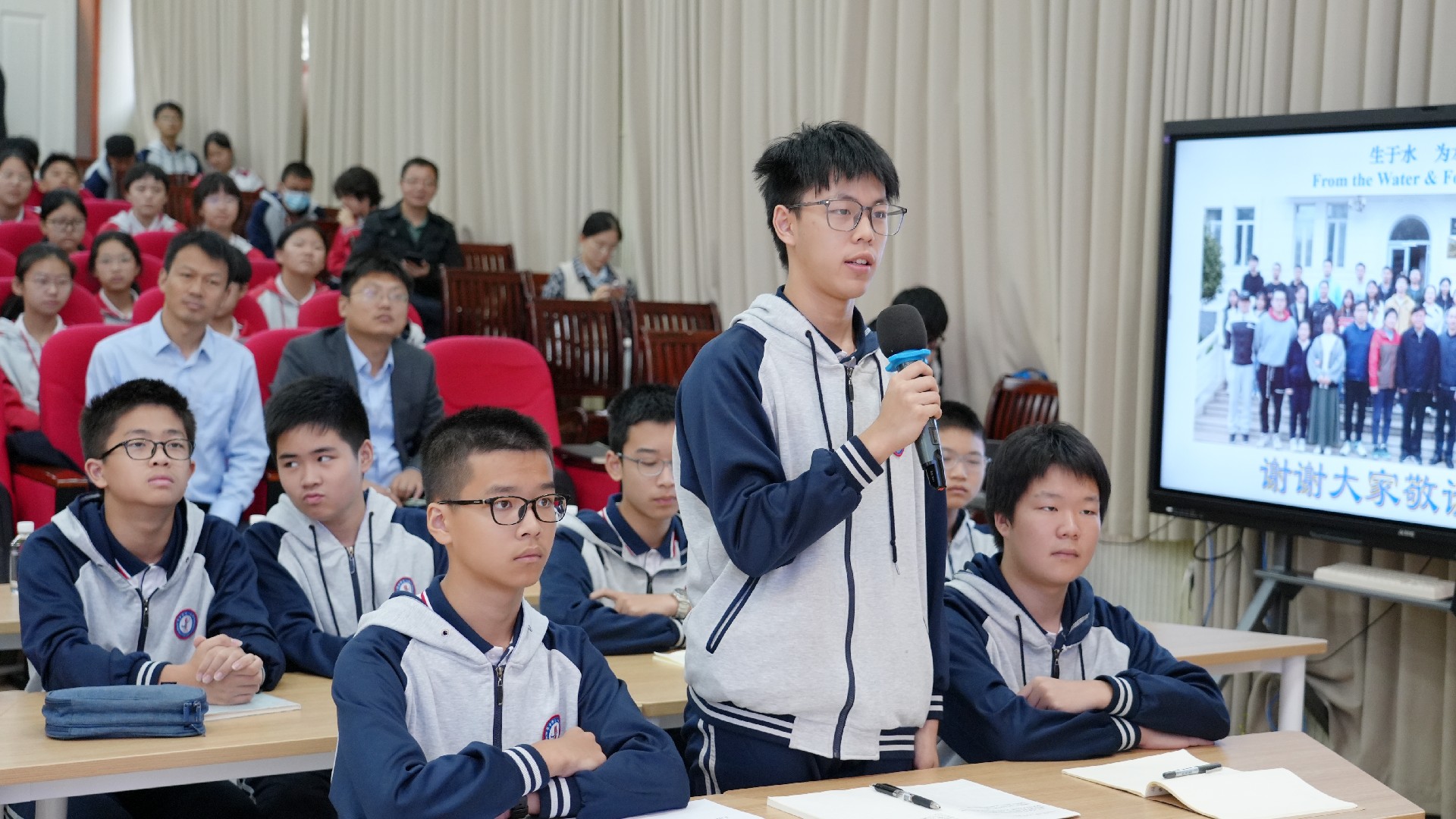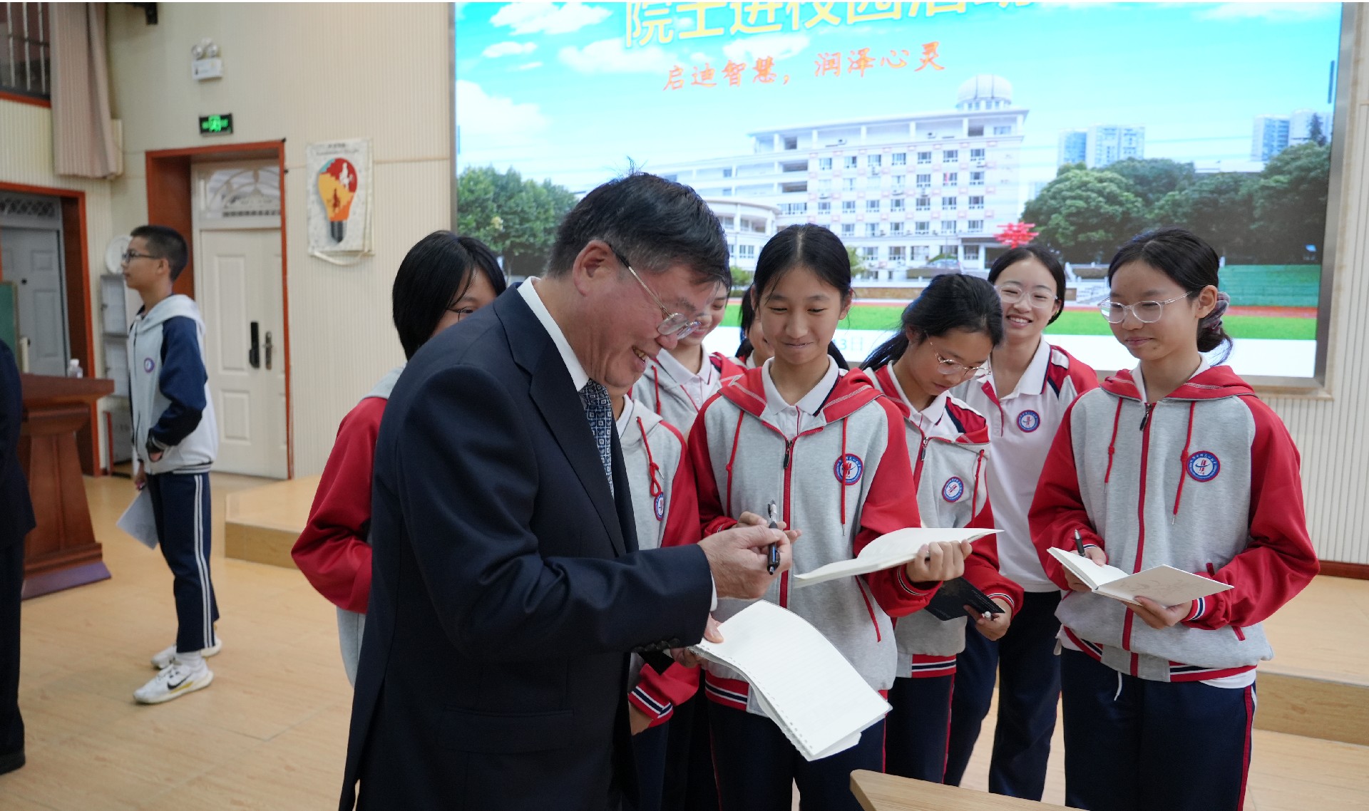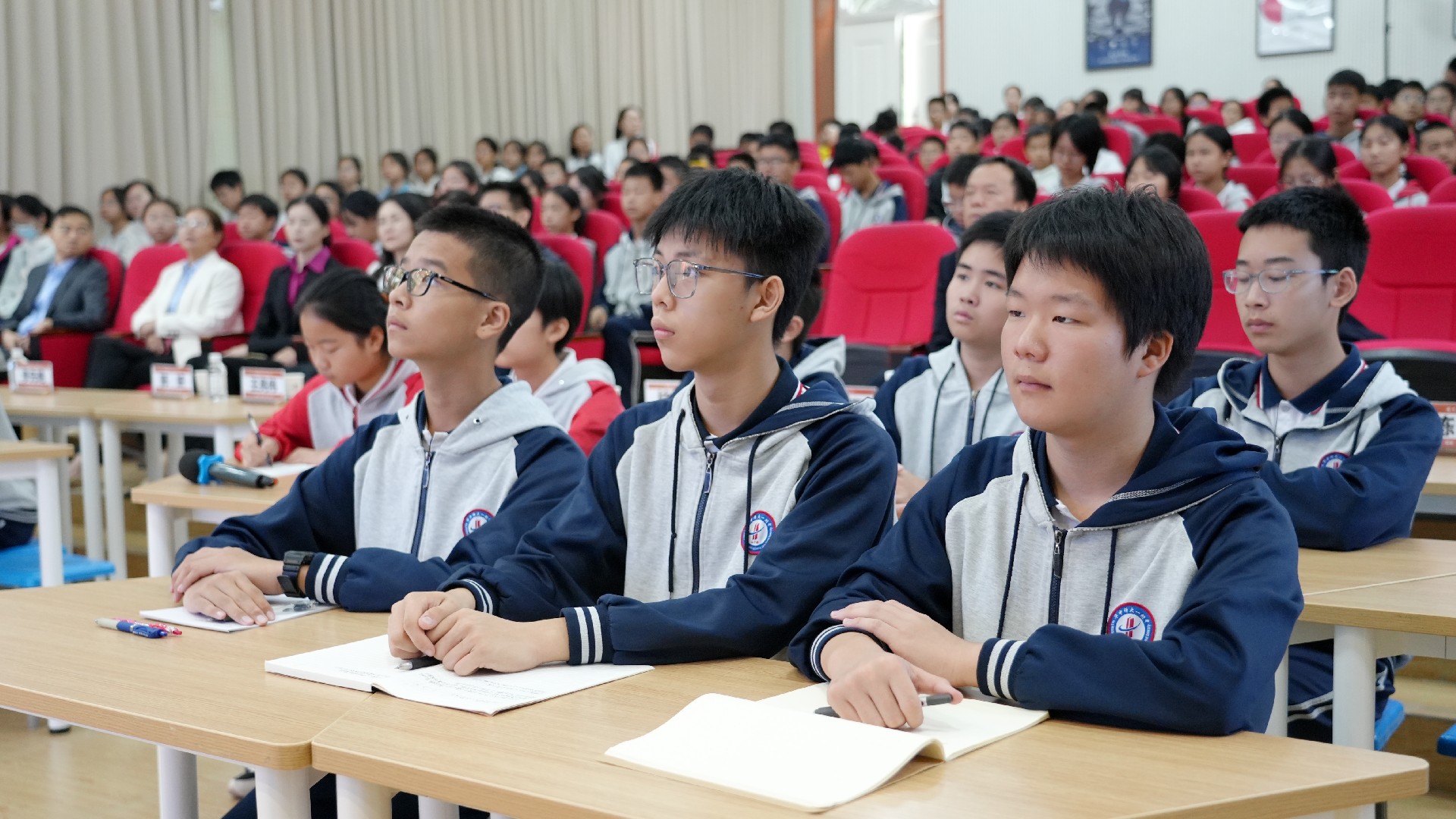 “桂院士,是什么契机让您下定决心把鱼类研究当终身事业?”“实验失败时,您怎么调整心态?”“您是怎么平衡科研与语文、英语学习的?”……在互动环节,同学们纷纷举手,将心中对科学的好奇与对成长的困惑倾诉而出。