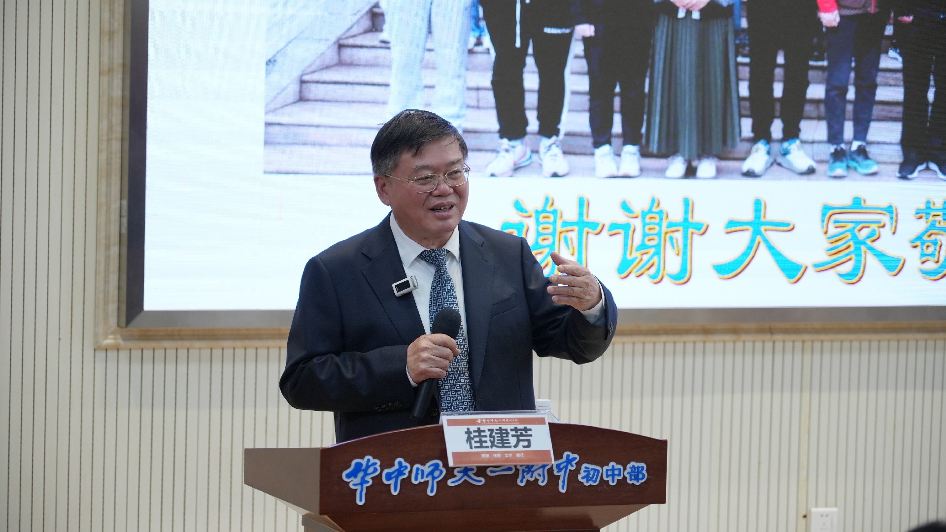 当科学的星光邂逅青春的原野,一场思想盛宴在华师一附中初中部如约而至。10月13日,中国科学院院士、著名的鱼类遗传育种学家桂建芳、中国科学院武汉分院科技合作处处长王亮伟、副处长郭妍等嘉宾莅临校园,闪耀开启“院士进校园”科普教育活动。