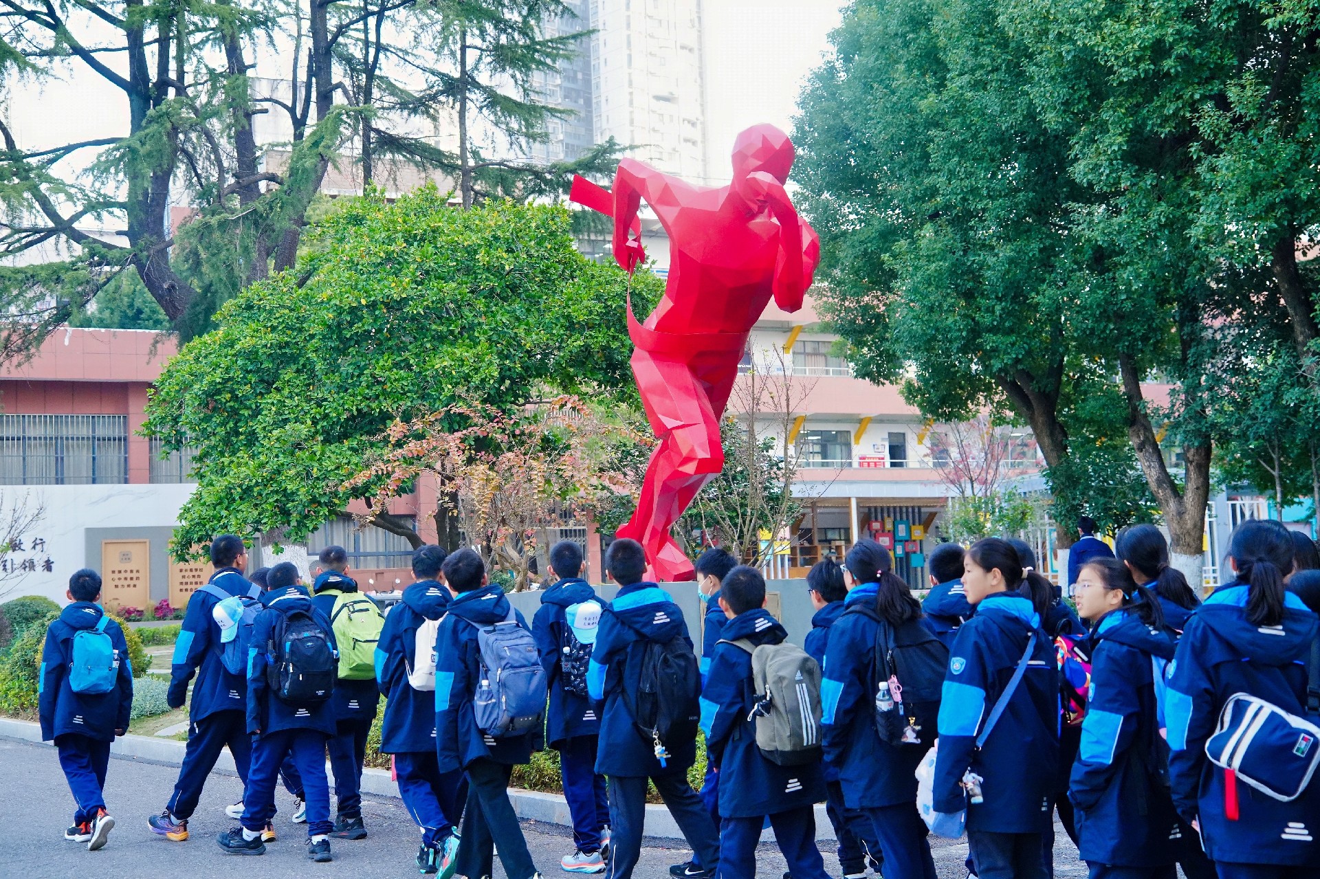 清晨7:50,伴随着初冬的晨光,同学们列队走进华师一附中初中部。在校办章元元老师的引导下,大家漫步校园,感受华一初优美的育人环境和浓厚的文化氛围。从醒目的华字雕塑到“奔跑者”形象,同学们对学校逐渐有了初步的了解和熟悉,也在心中埋下期待的种子。