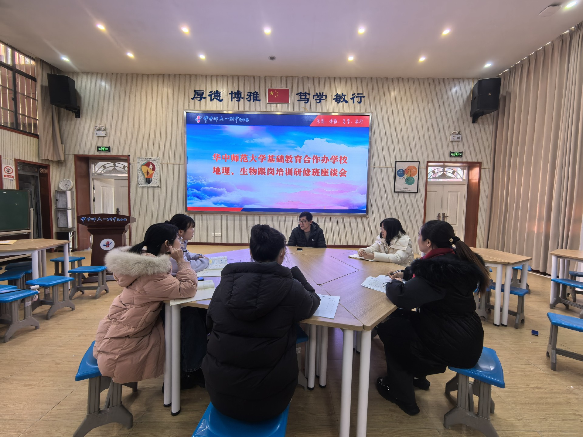 12月22日,来自多地区学校的5位生物、地理教师莅临我校,正式开启为期一周的跟岗学习。期间,跟岗教师深度沉浸式参与我校课堂教学、教研研讨及班级管理实务,近距离体悟我校教育教学特色与育人理念,为校际教育经验的互鉴互通搭建起坚实桥梁。