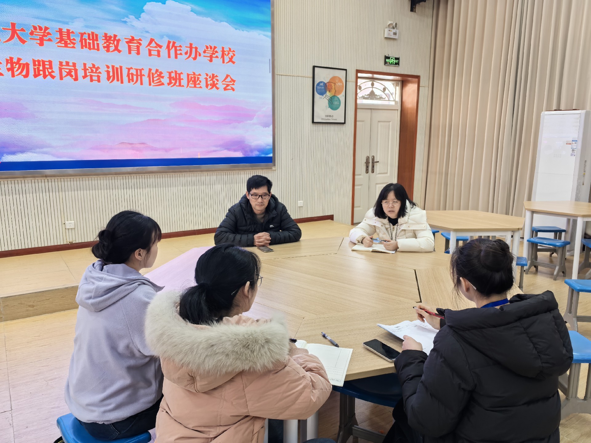 为进一步深化校际教学研讨,助力教师专业能力协同提升,在跟岗学习的第四天,学校精心筹备并组织了教学交流座谈会。我校教师代表与跟岗教师齐聚一堂,围绕教学实践创新、学生全面培养、教师专业发展等核心议题深入研讨,共话育人心得,共享教学智慧。