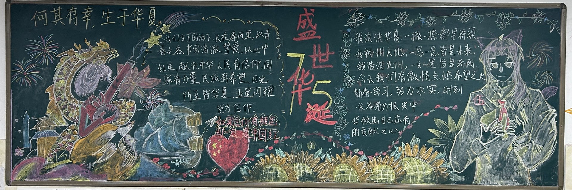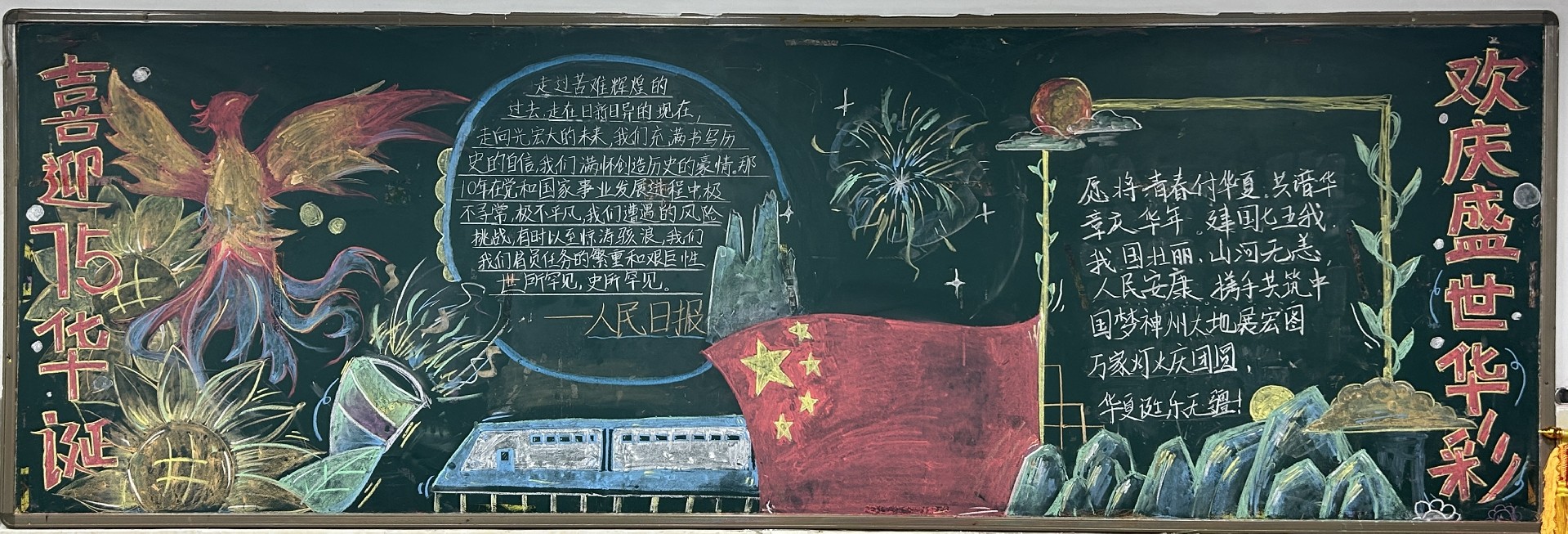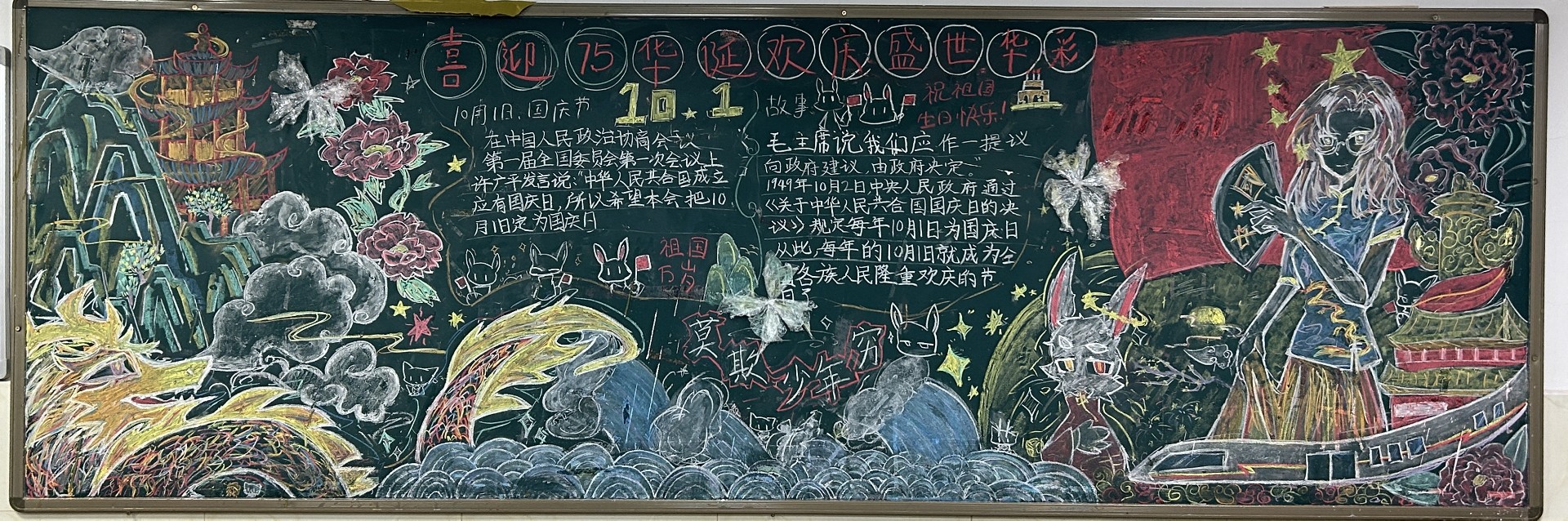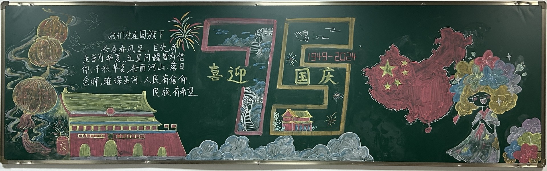 本次国庆主题黑板报活动,促进了班级文化建设,将爱国主义教育与学校的实践活动相融合,让黑板报成为学校爱国教育活动中一道靓丽的风景线。“江山留胜迹,我辈复登临。”这些作品不仅美化了校园环境,更成为了同学们爱国情感交流的桥梁,激励着每一位学子努力学习,为实现中华民族伟大复兴的中国梦贡献自己的力量。