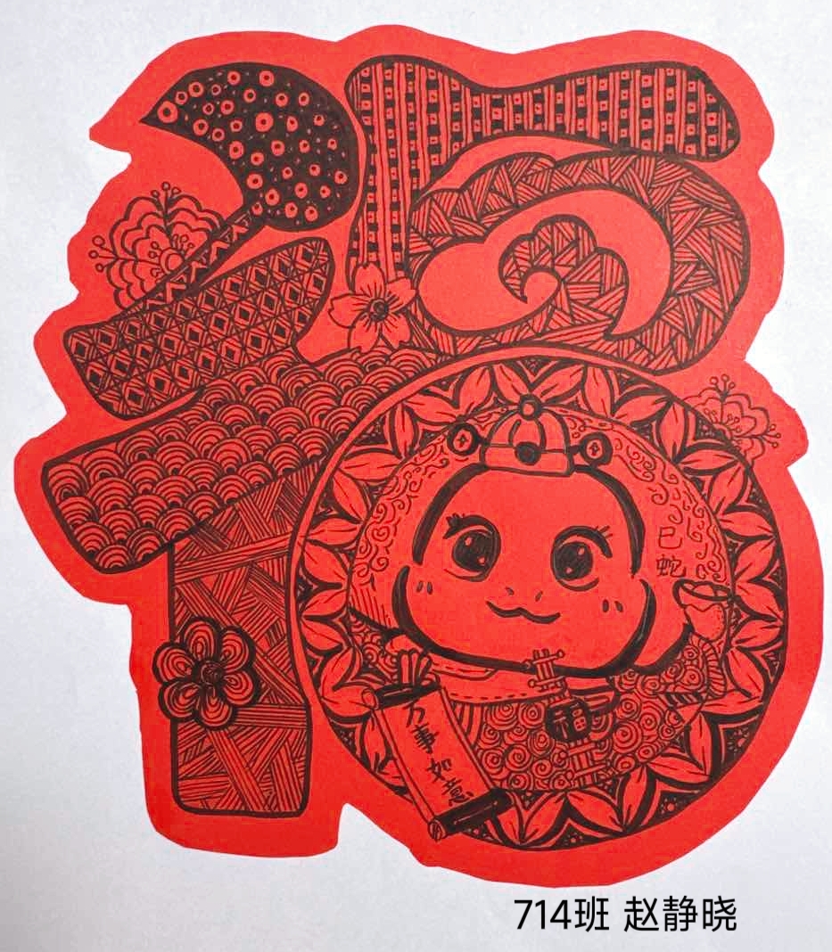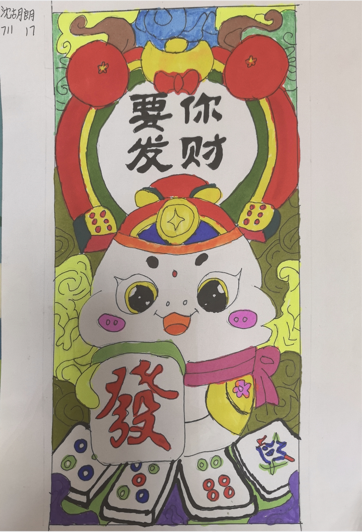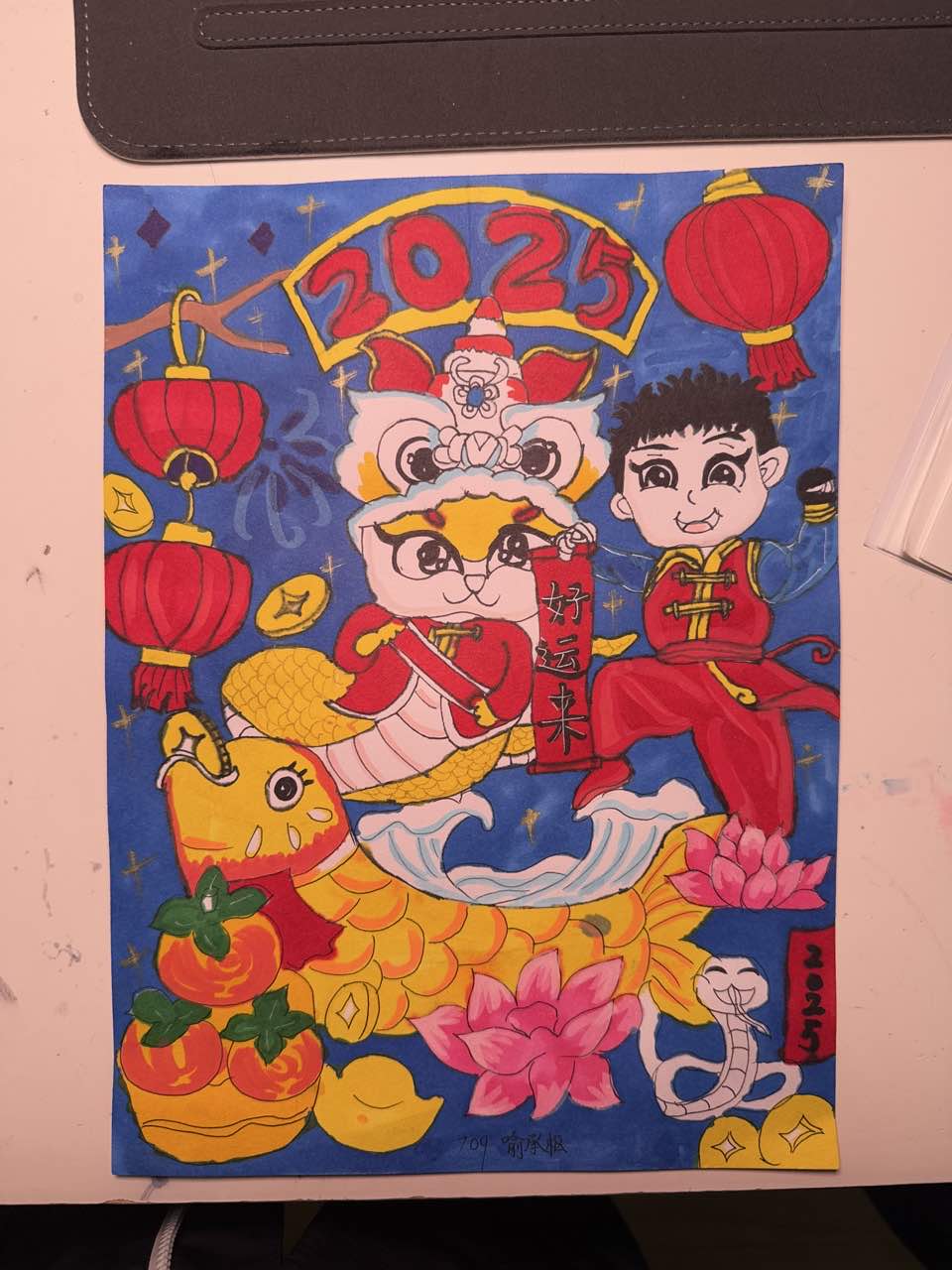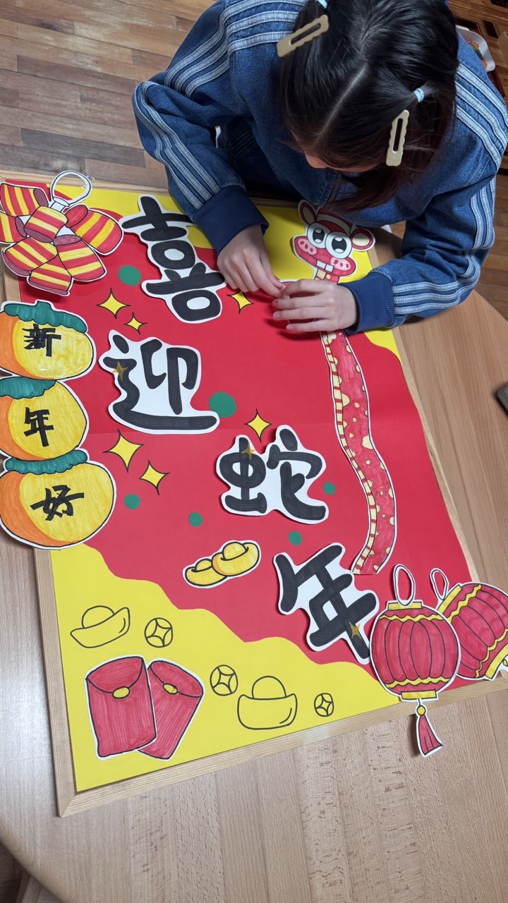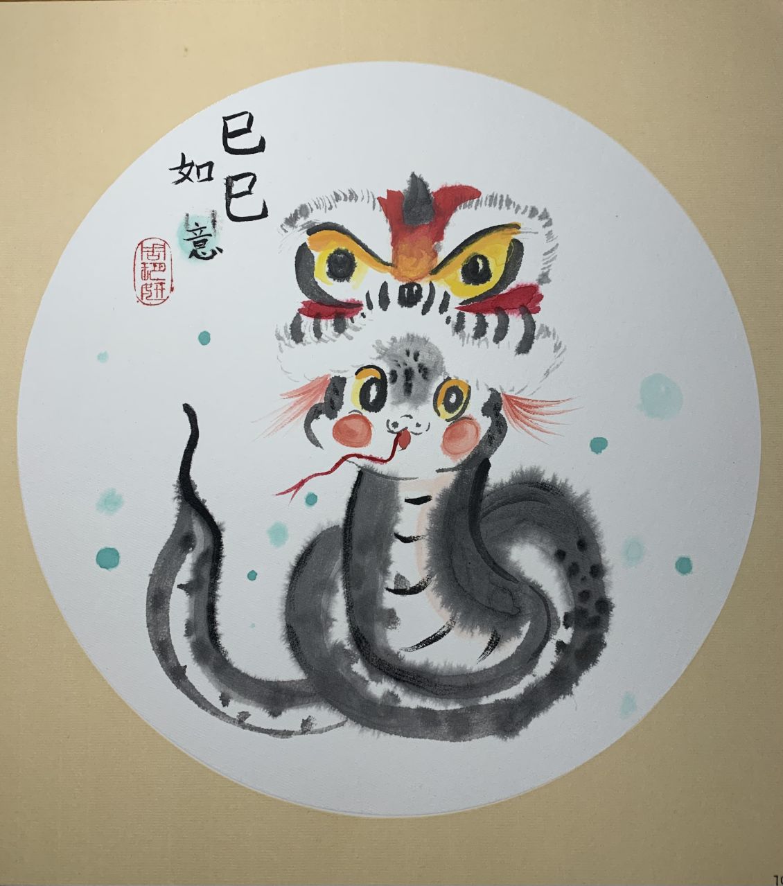 春节承载着中华民族深厚的文化和满满的情感。学生们用画笔描绘出浓浓的年味,一幅幅充满童趣的作品,传递着对巳蛇春节的美好祝愿。