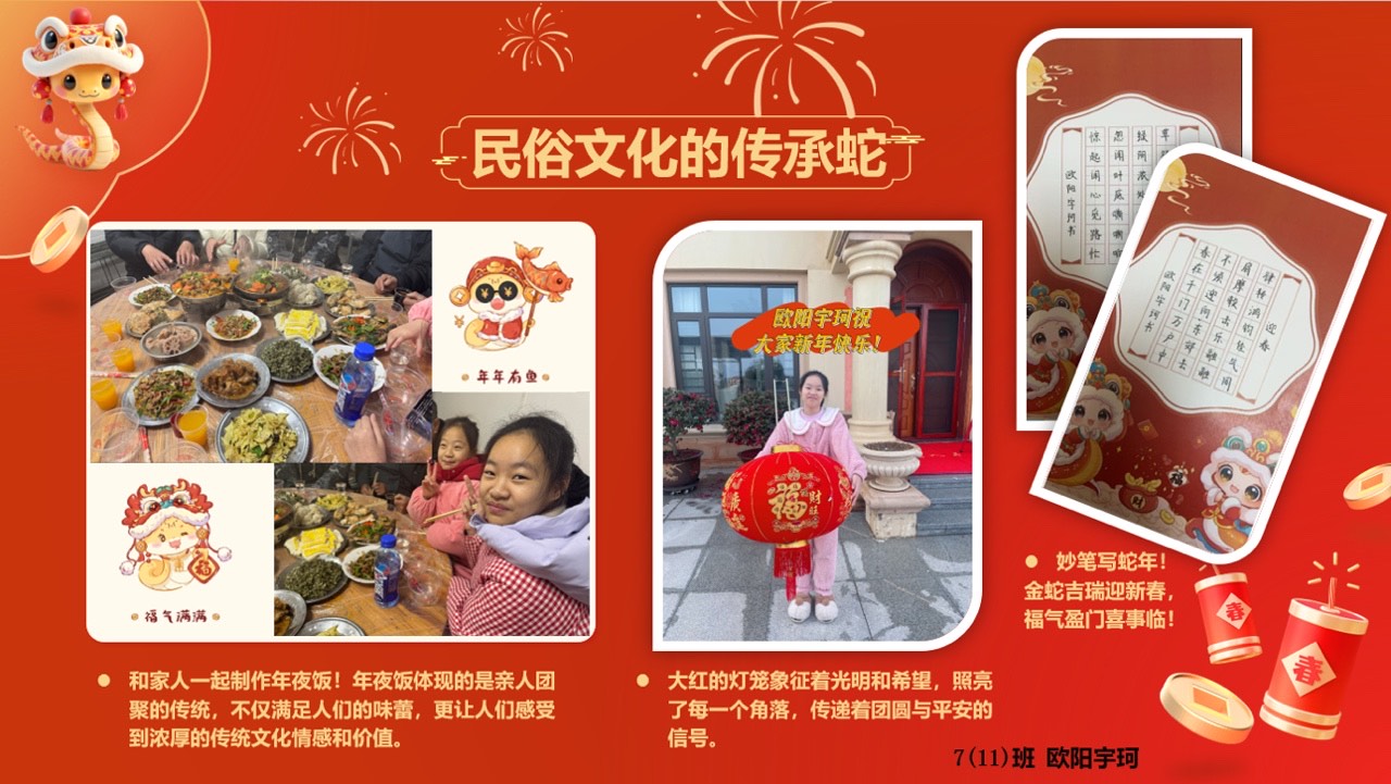 春节,不仅是时间的礼赞,更是家的盛宴。在这个充满喜悦与希望的节日里,同学们用一系列精彩纷呈的家庭活动,共同庆祝这一年的辛勤与收获。