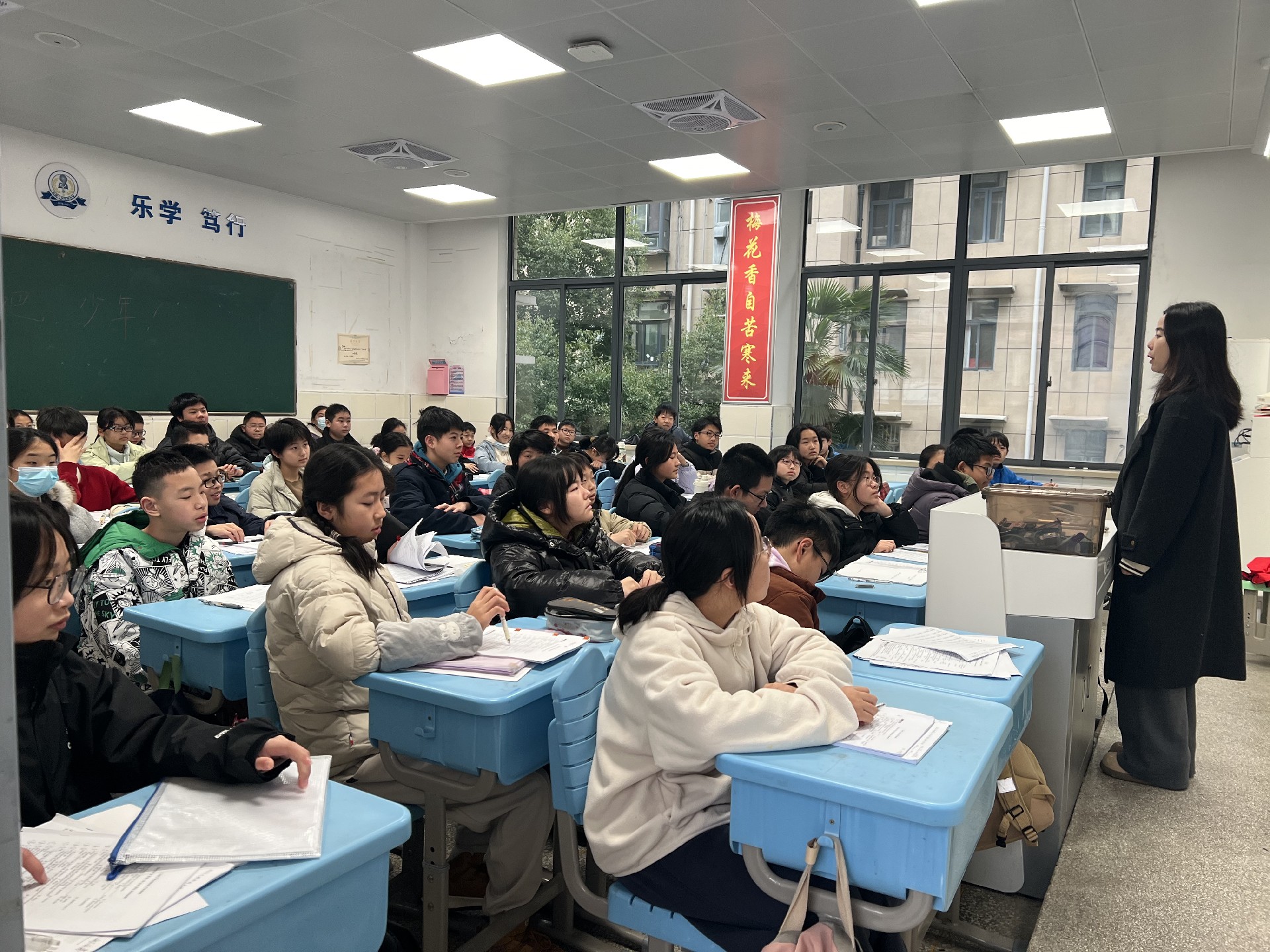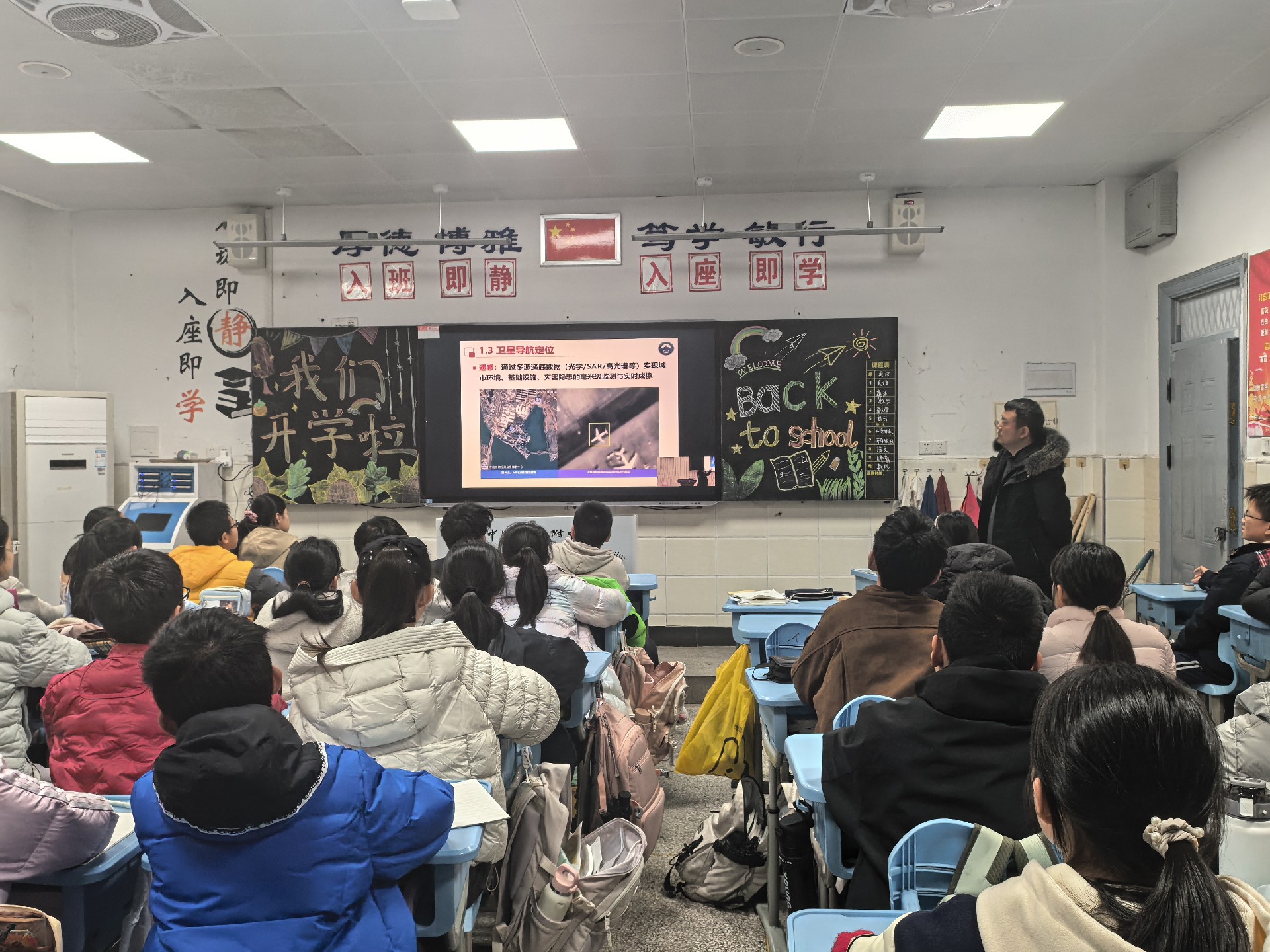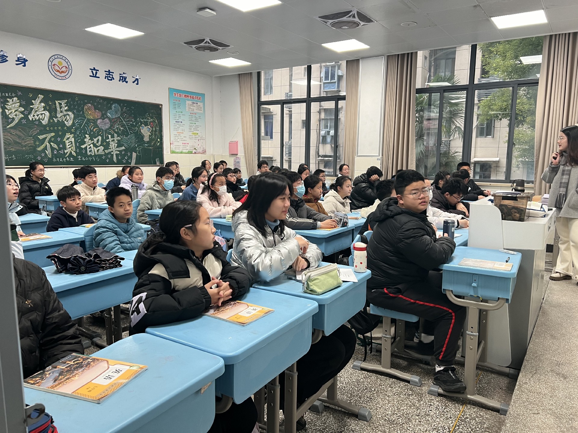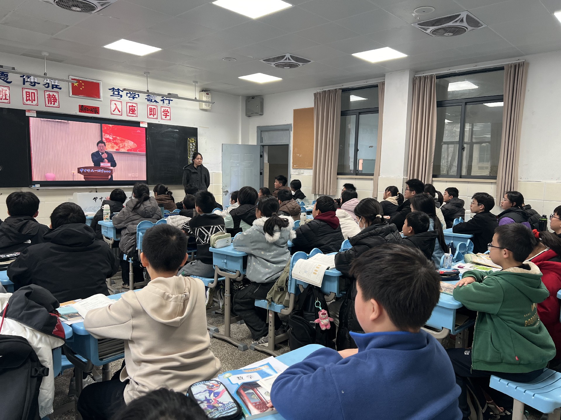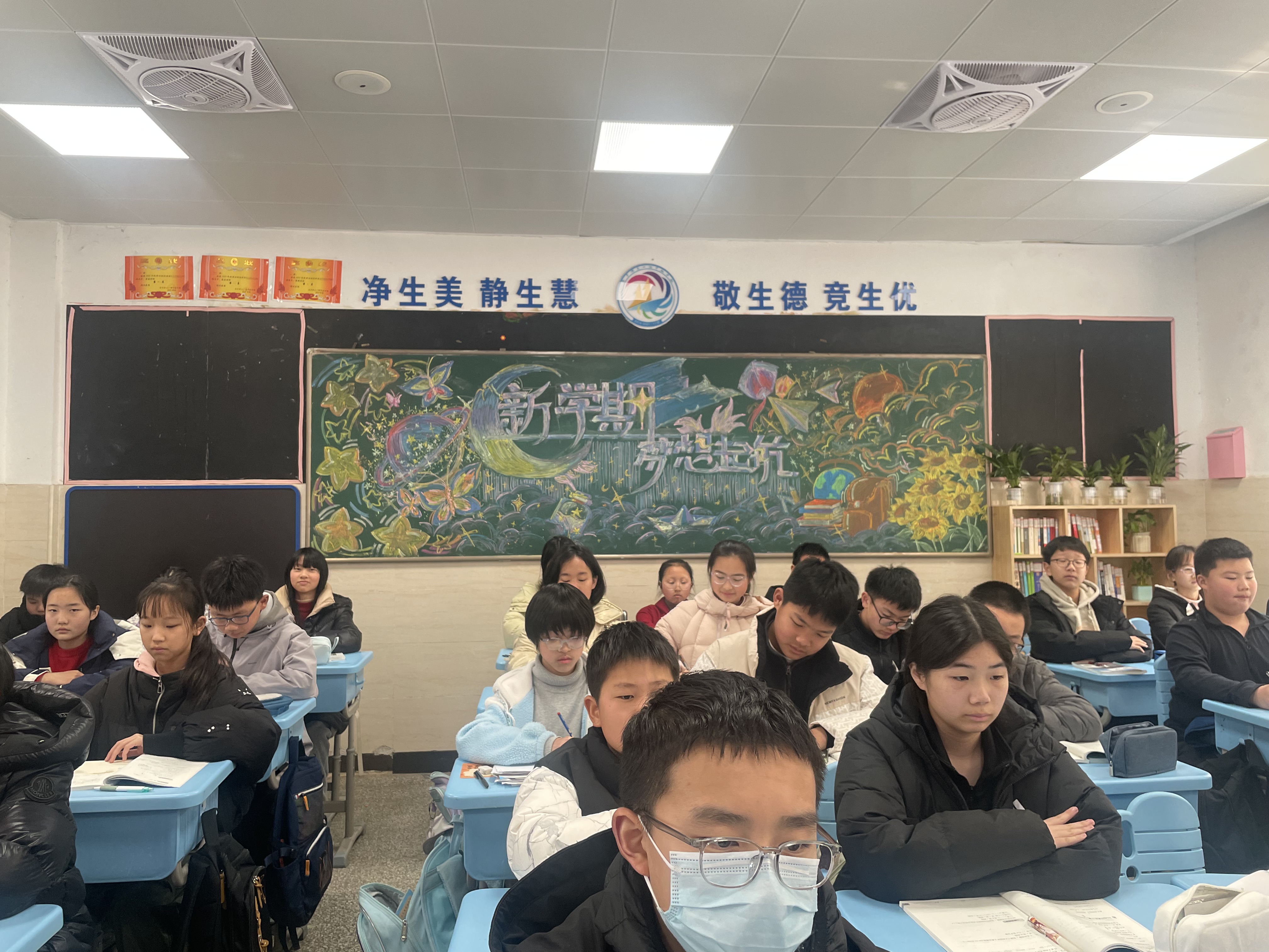 清晨,七年级班主任们早早来到教室,迎接同学们的归来。各班班主任立足新学期、新起点,细致讲解校纪班规,强调安全注意事项,鼓励同学们调整状态、明确目标,以积极心态拥抱新学期的挑战。讲台下,同学们端坐静听,目光专注,神情坚定,展现出良好的精神风貌。